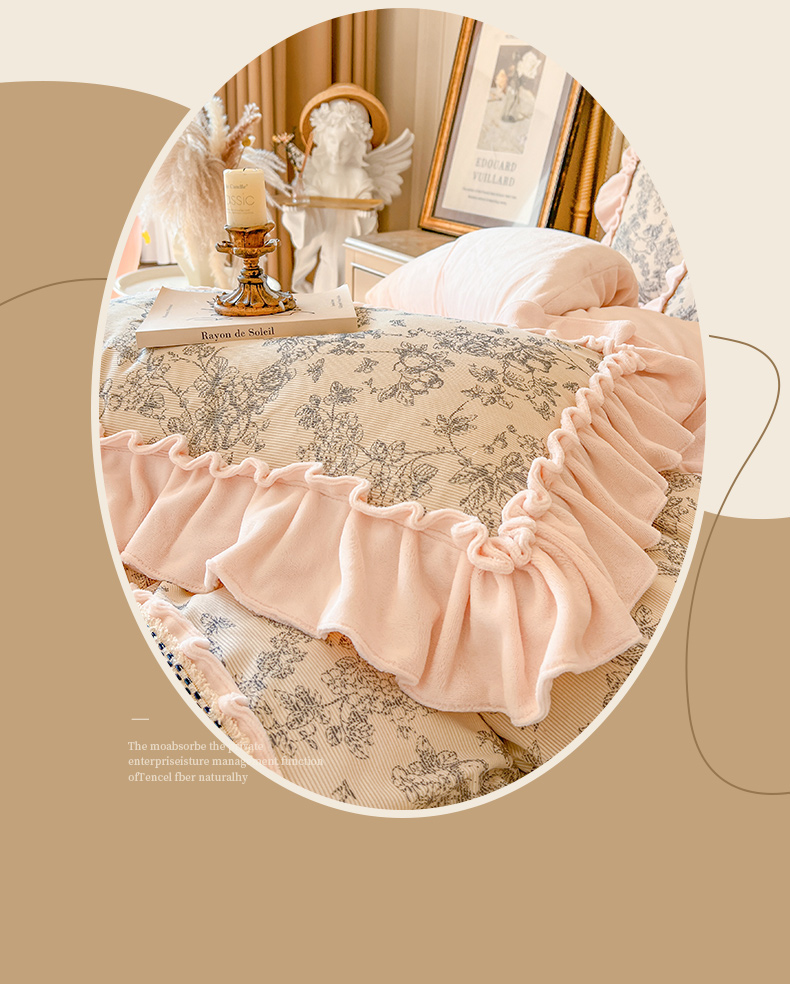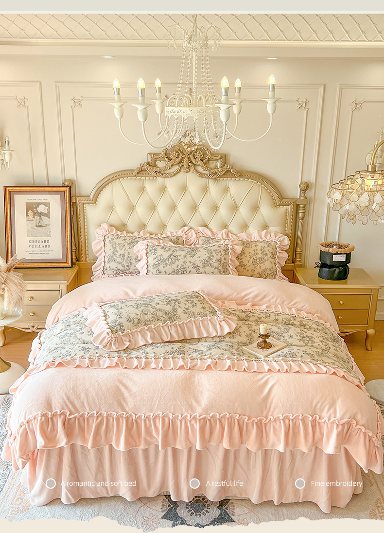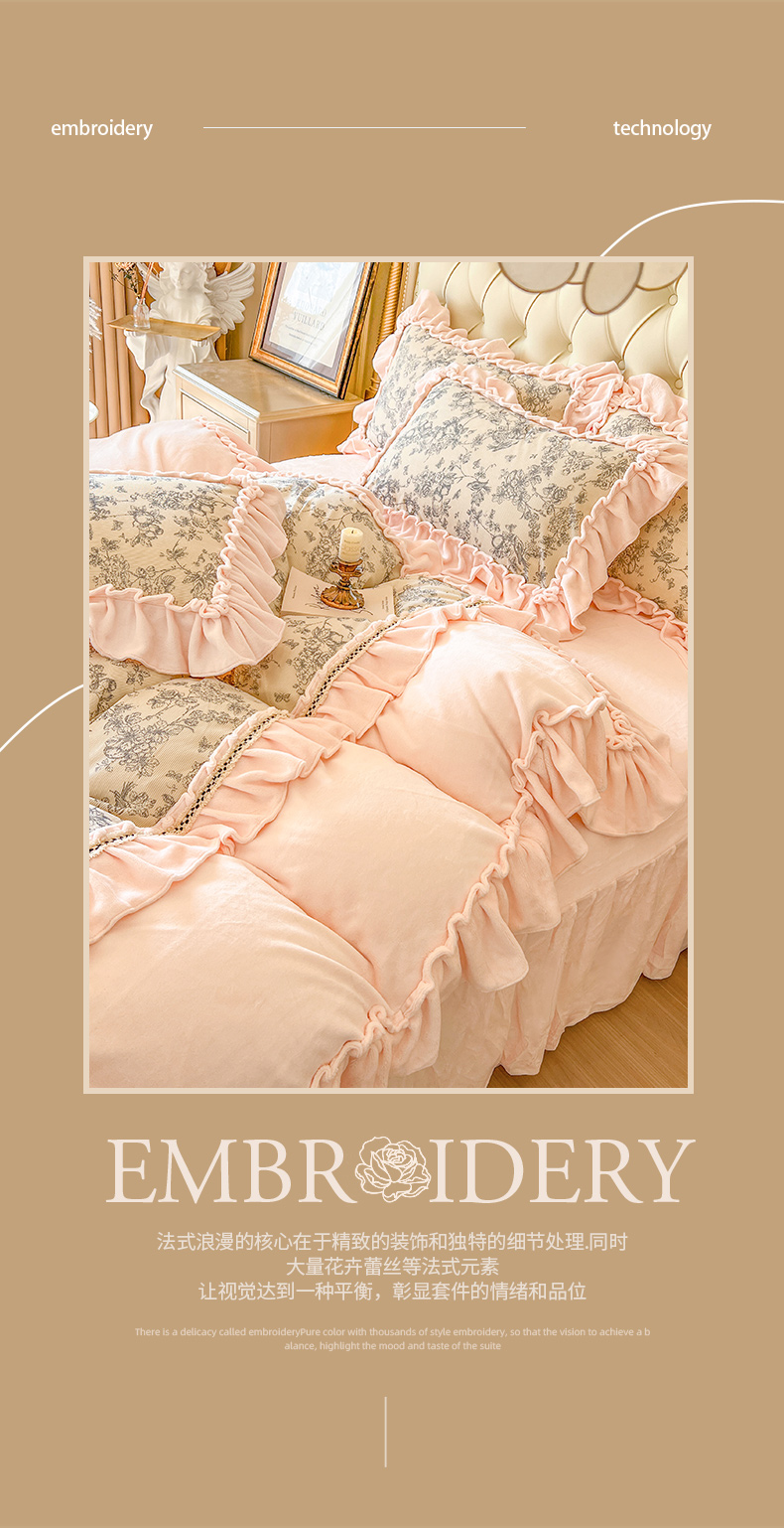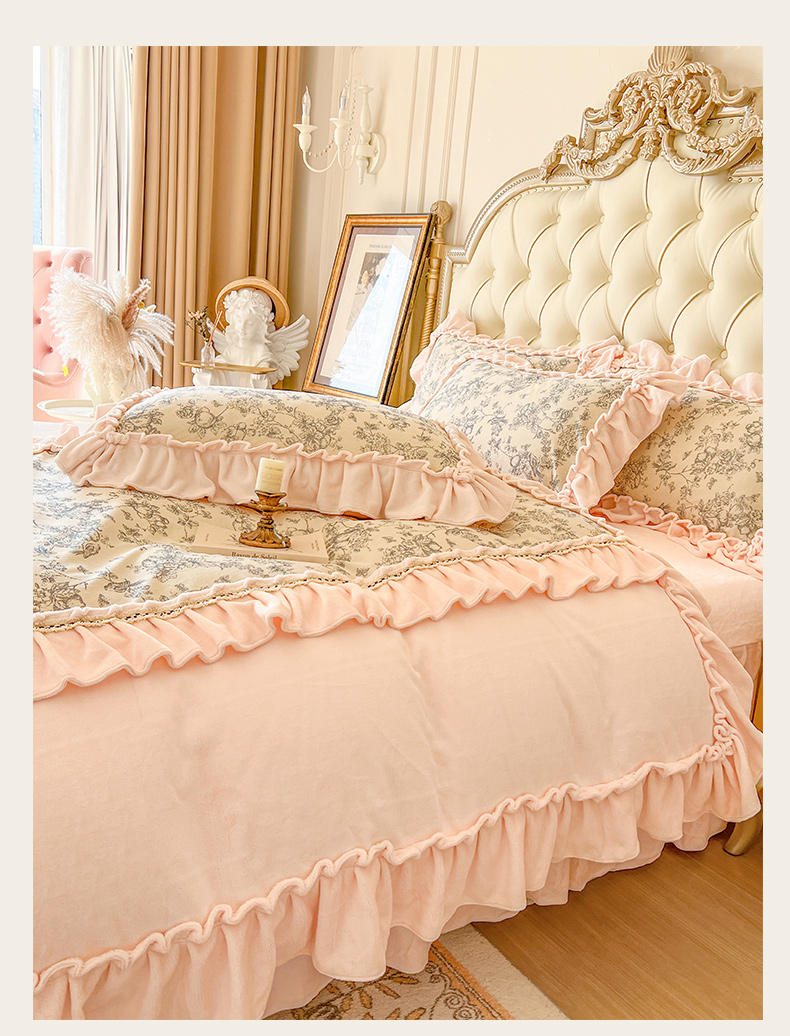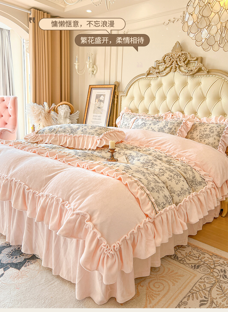 当前位置: 91家纺网 > 商品网购 > 床品套件 > 四件套 > 牛奶绒四件套 > 亲亲公主 2025新款高克重牛奶绒花边四件套-法式情怀 奶油粉
