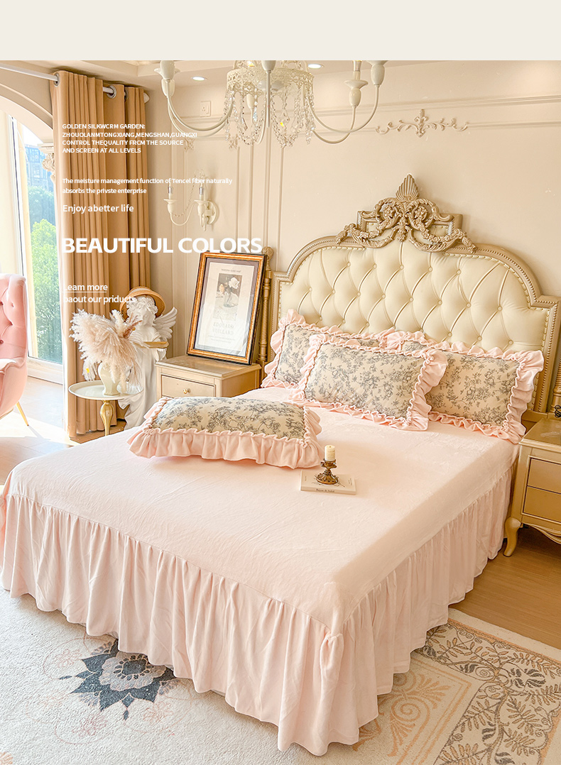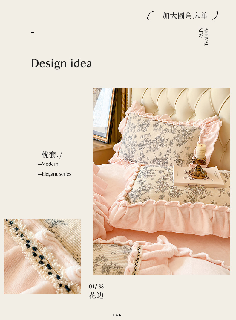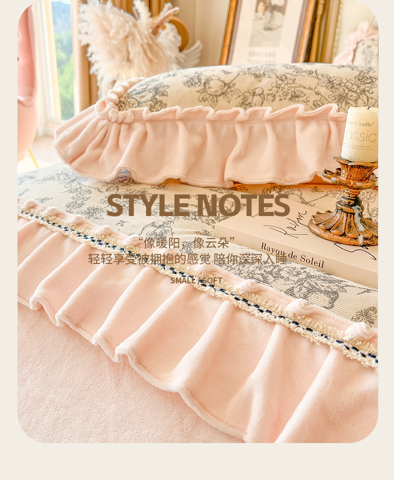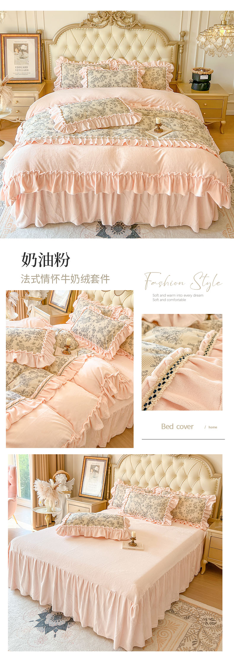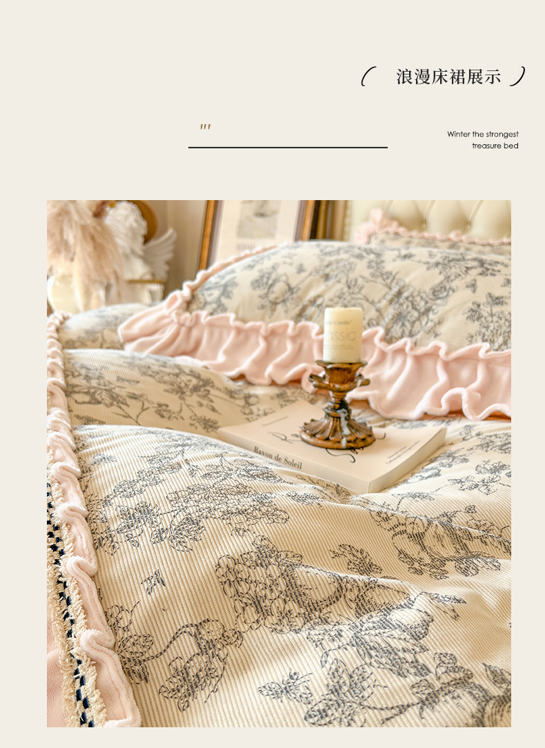 当前位置: 91家纺网 > 商品网购 > 床品套件 > 四件套 > 牛奶绒四件套 > 亲亲公主 2025新款高克重牛奶绒花边四件套-法式情怀 奶油粉