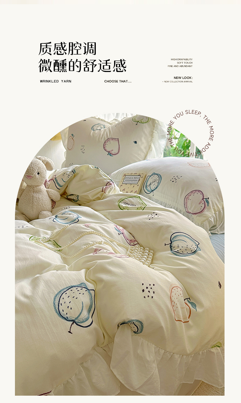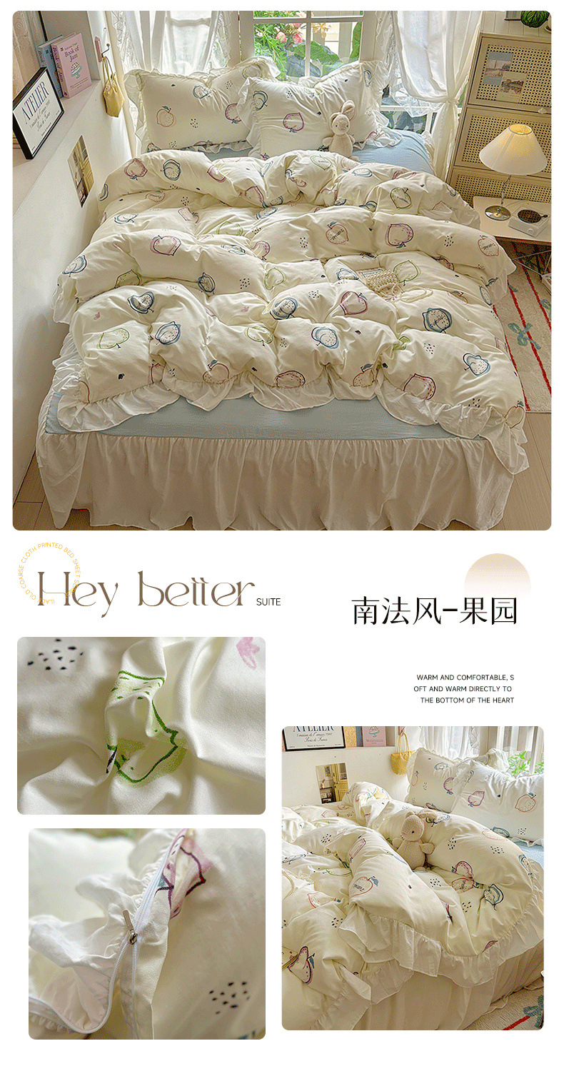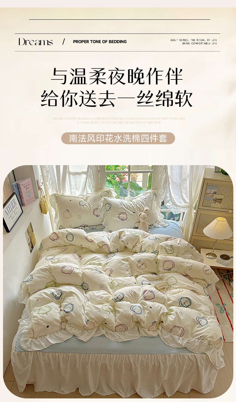 当前位置: 91家纺网 > 商品网购 > 床品套件 > 四件套 > 水洗棉四件套 > 阿曼达 2024新款ins博主风法式南法风浪漫系列花边款印花水洗m四件套 南法风-果园
