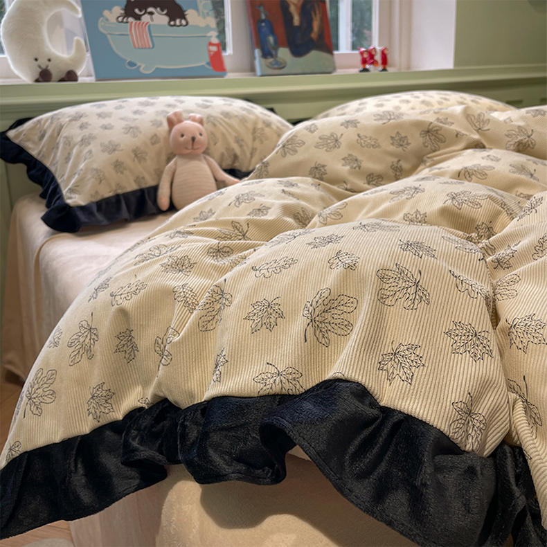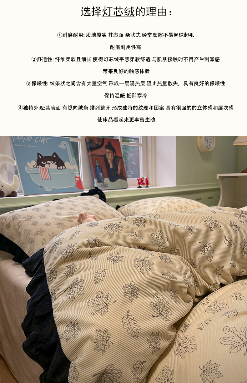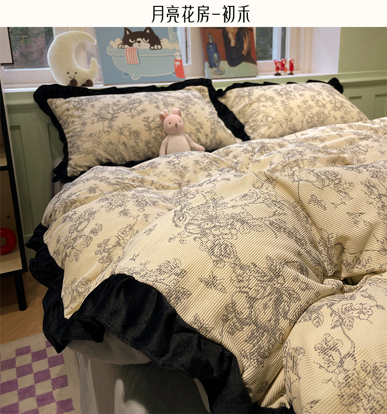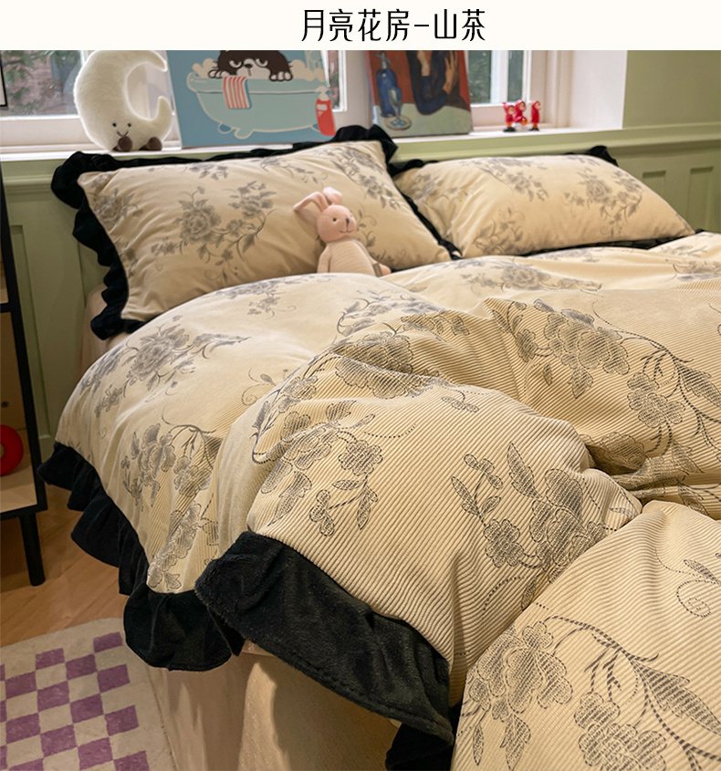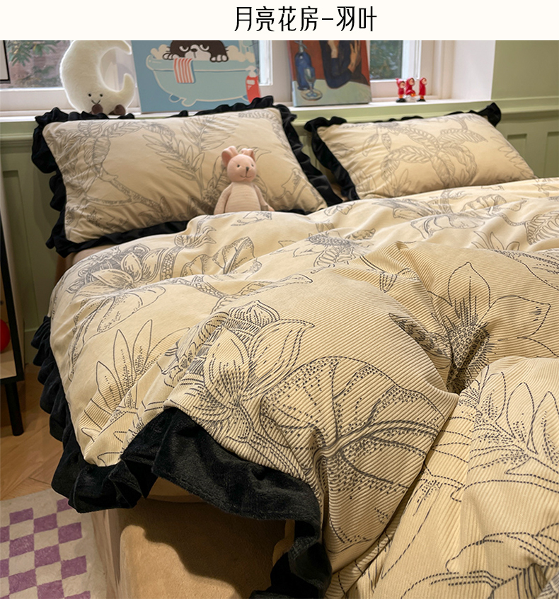 当前位置: 91家纺网 > 商品网购 > 床品套件 > 四件套 > 牛奶绒四件套 > 羚羊语家纺 爆款2024轻法式赫本风灯芯绒四件套小香风提花立体韩版花边牛奶绒三件套珊瑚法莱绒灯芯绒单被套-实拍风 月亮花房-繁花(爆款)