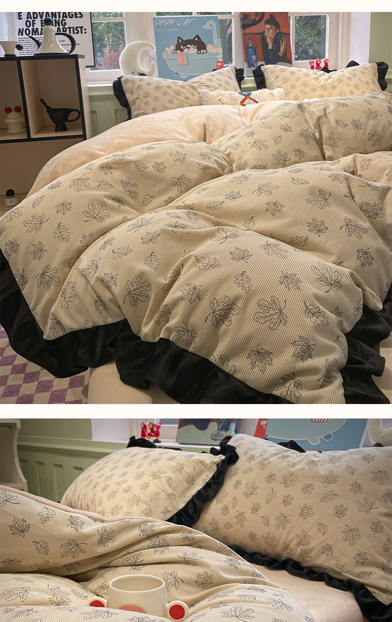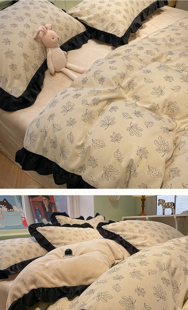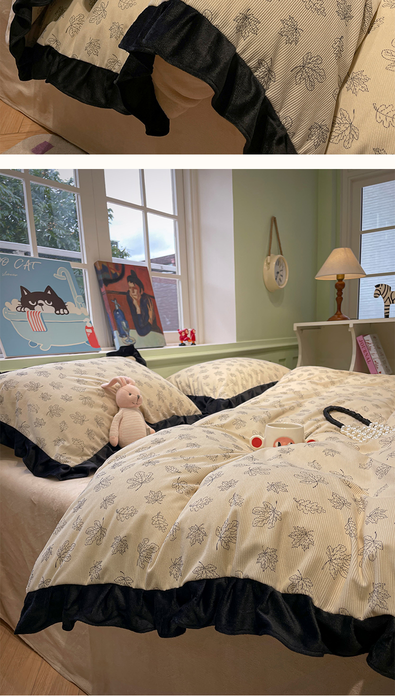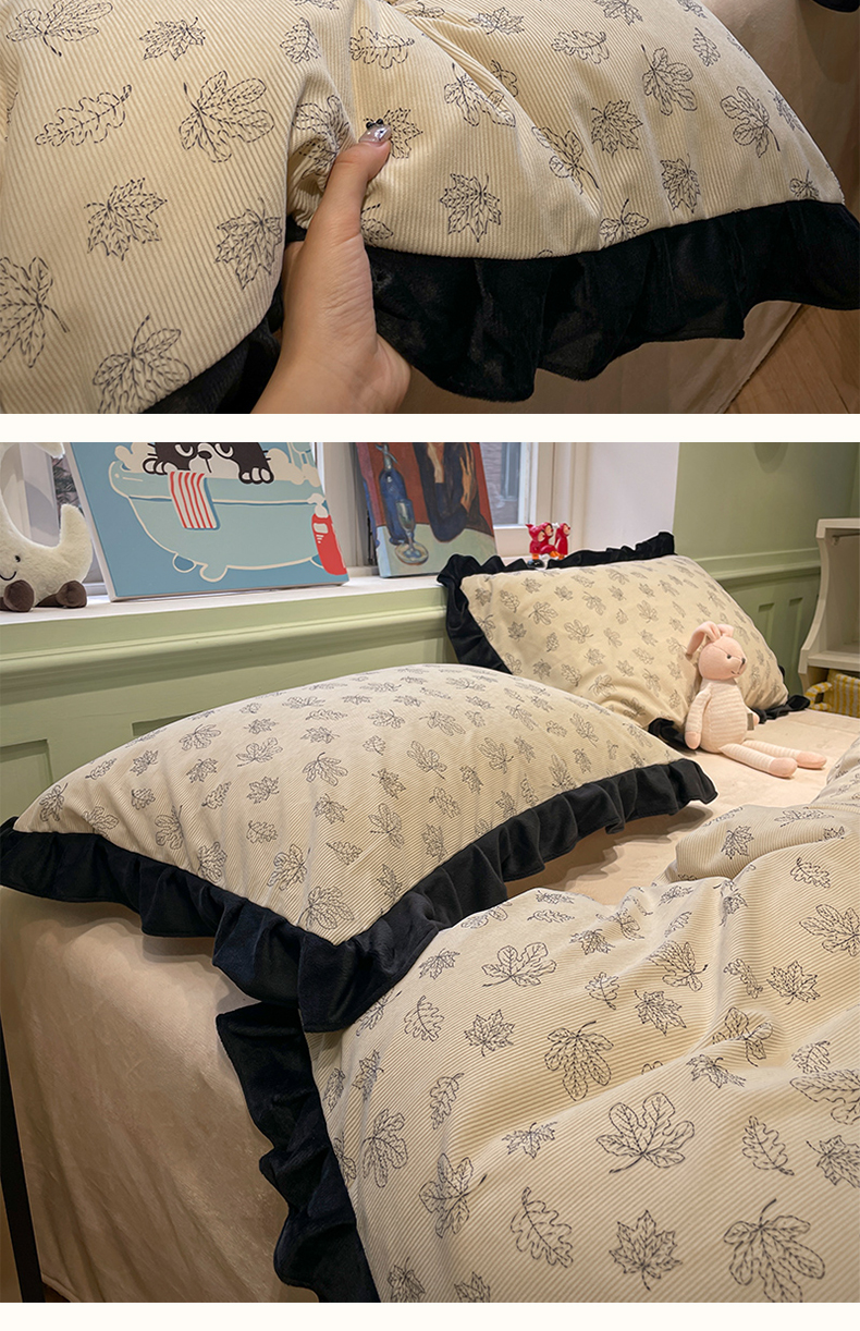 当前位置: 91家纺网 > 商品网购 > 床品套件 > 四件套 > 牛奶绒四件套 > 羚羊语家纺 爆款2024轻法式赫本风灯芯绒四件套小香风提花立体韩版花边牛奶绒三件套珊瑚法莱绒灯芯绒单被套-实拍风 月亮花房-繁花(爆款)