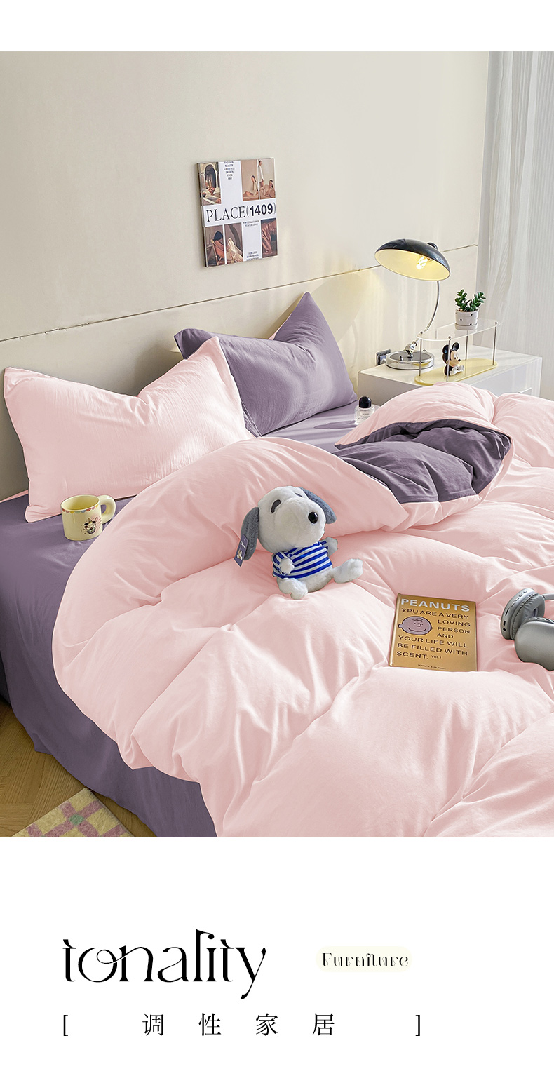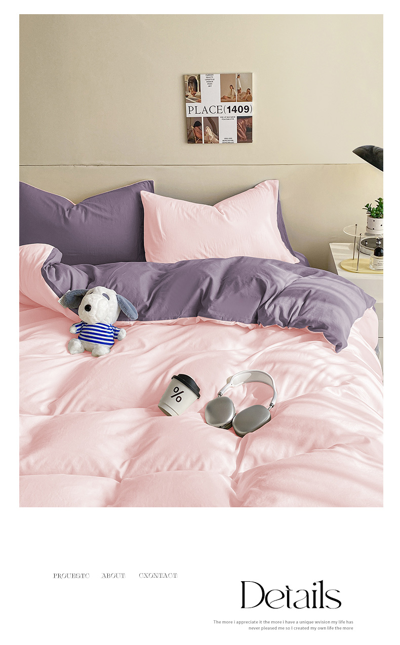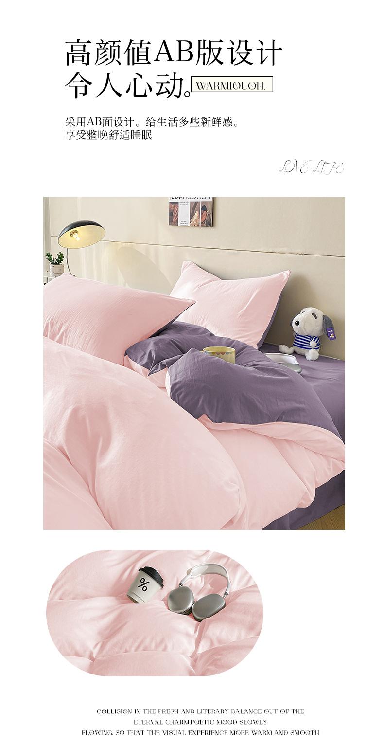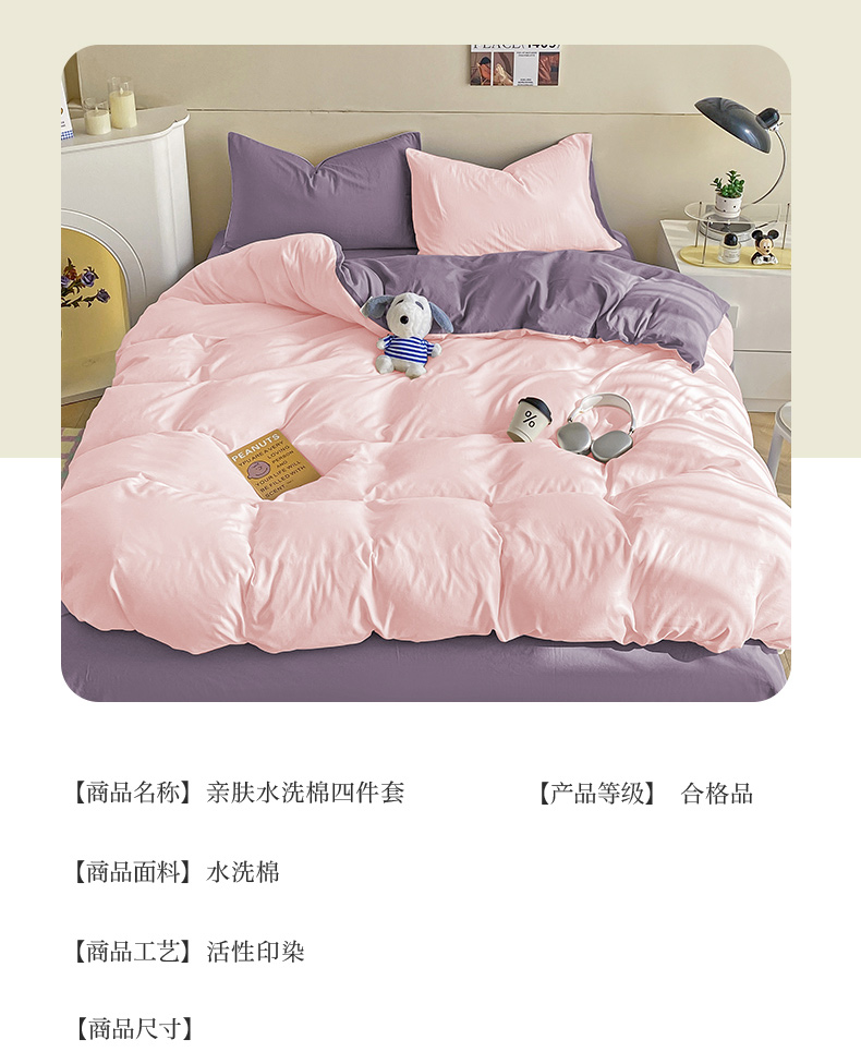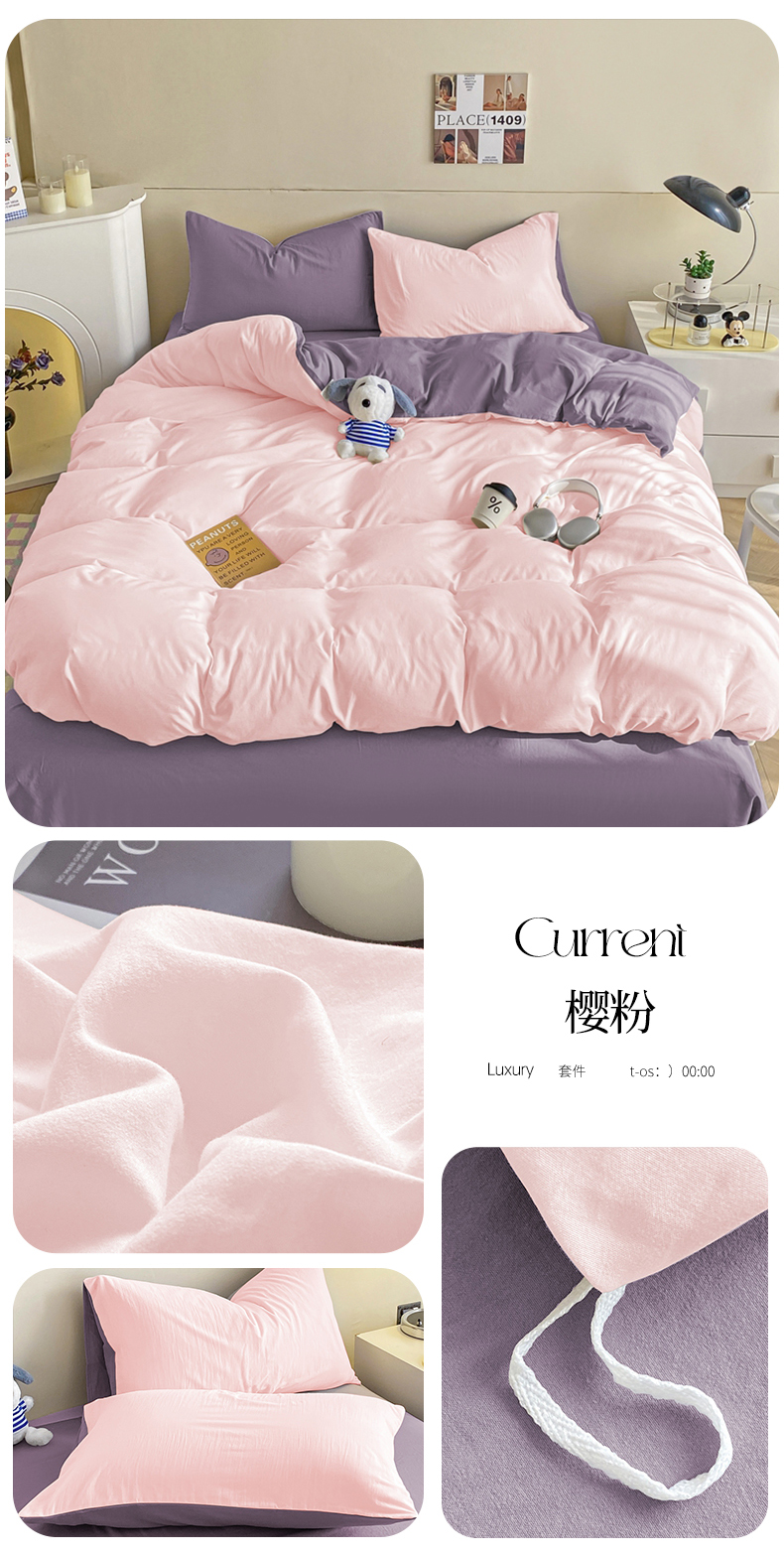 当前位置: 91家纺网 > 商品网购 > 床品套件 > 四件套 > 水洗棉四件套 > 沃朴家居 2024新款亲肤双拼水洗棉四件套学生三件套 樱粉