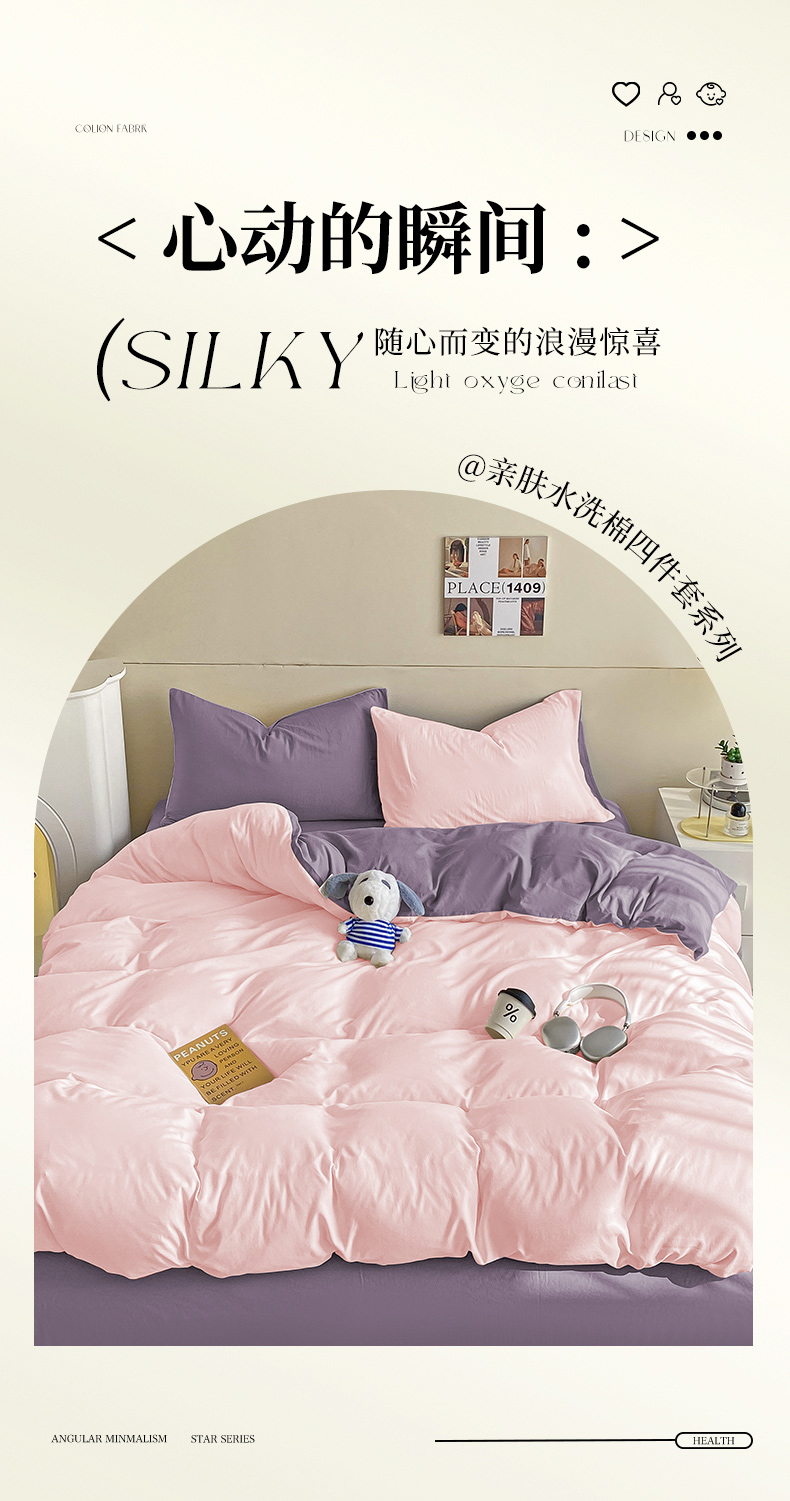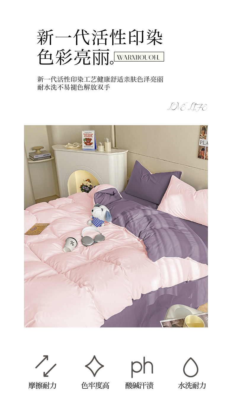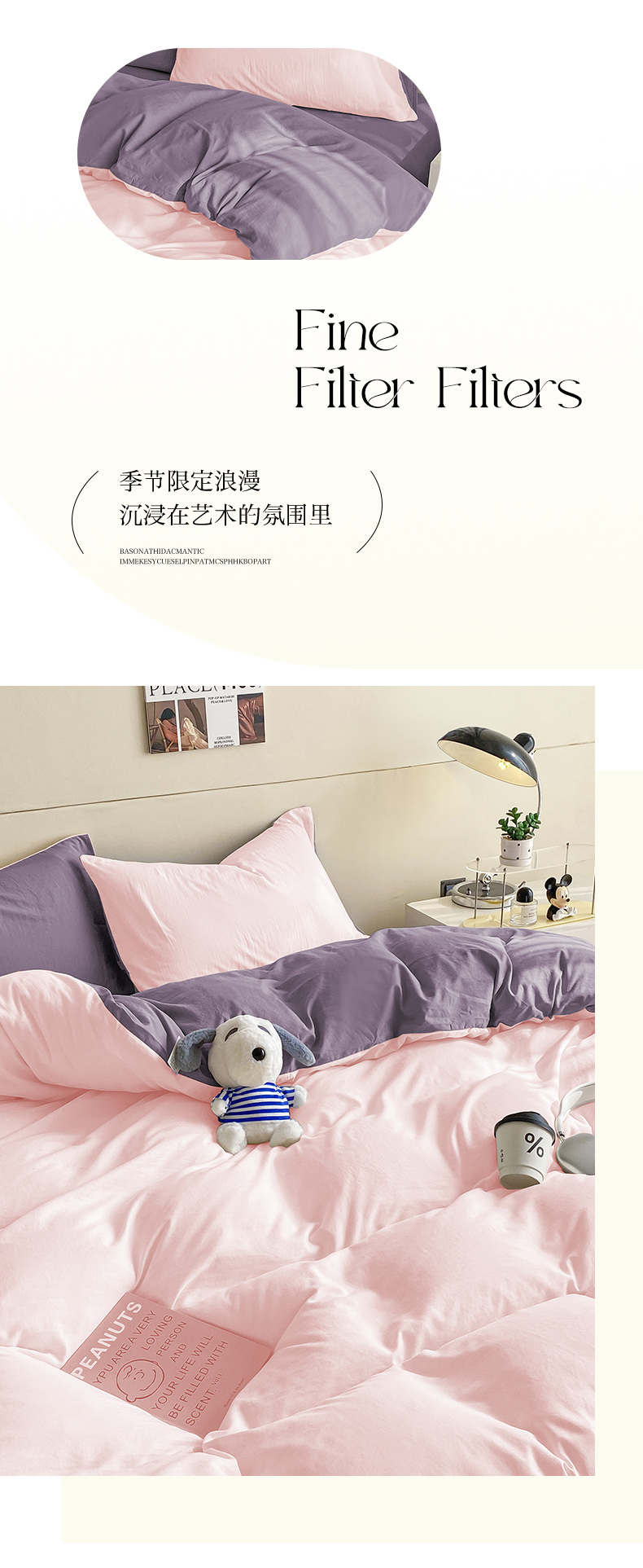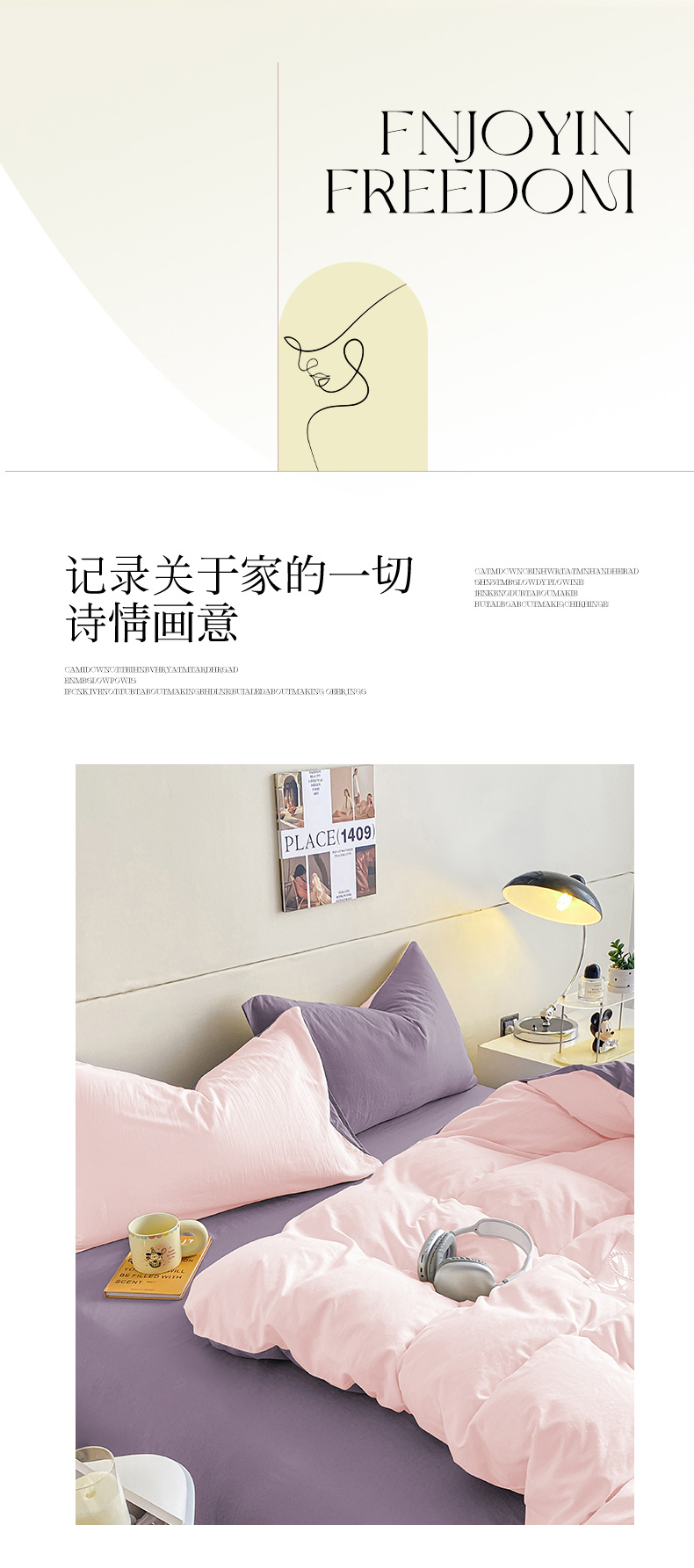 当前位置: 91家纺网 > 商品网购 > 床品套件 > 四件套 > 水洗棉四件套 > 沃朴家居 2024新款亲肤双拼水洗棉四件套学生三件套 樱粉