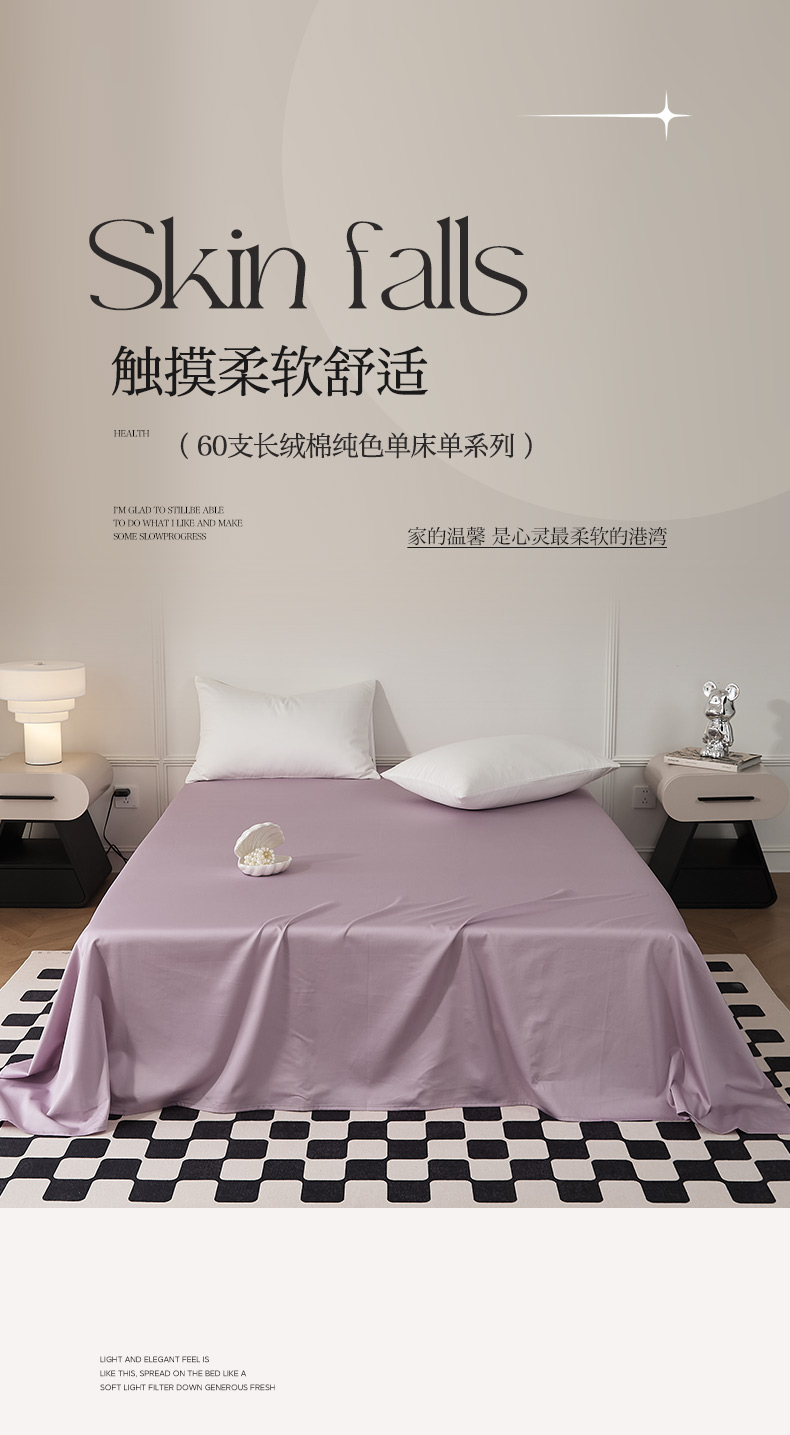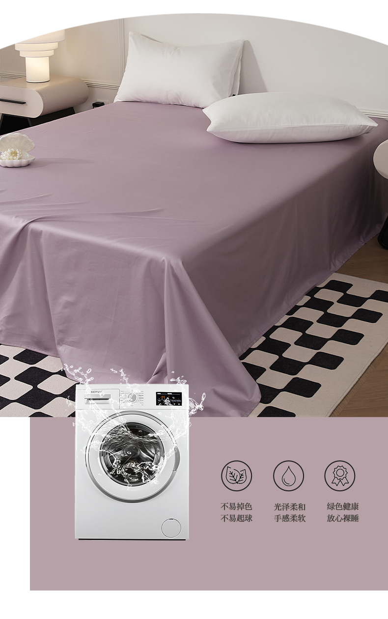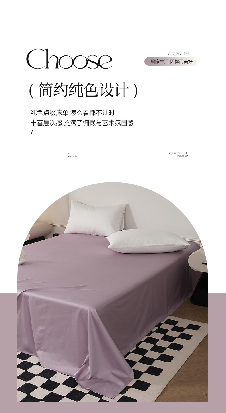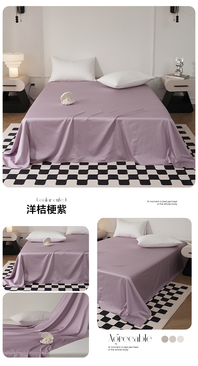 • 91家纺网 家纺一手货源 找家纺 EH家居 2024新款60支长绒棉纯色单床单 洋桔梗紫