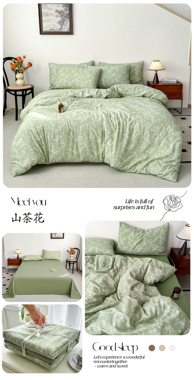 漫仙阁家纺 2025年爆款新品有氧双层纱四件套-碎花 山茶花