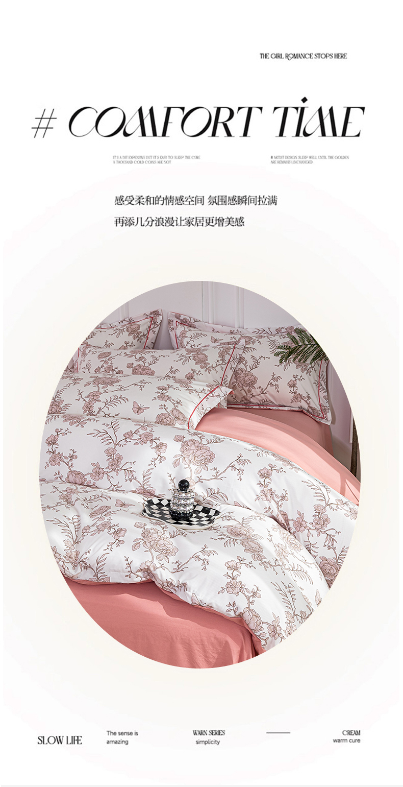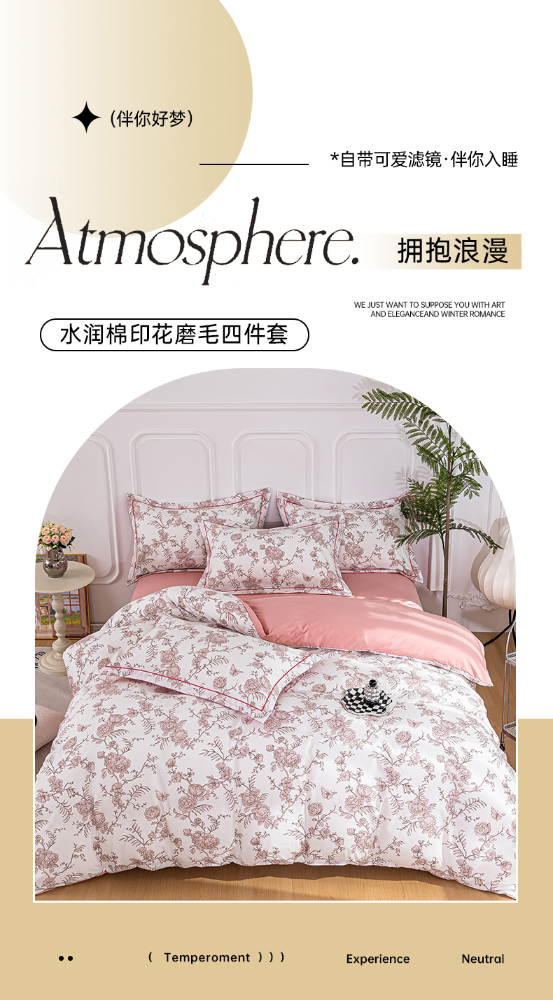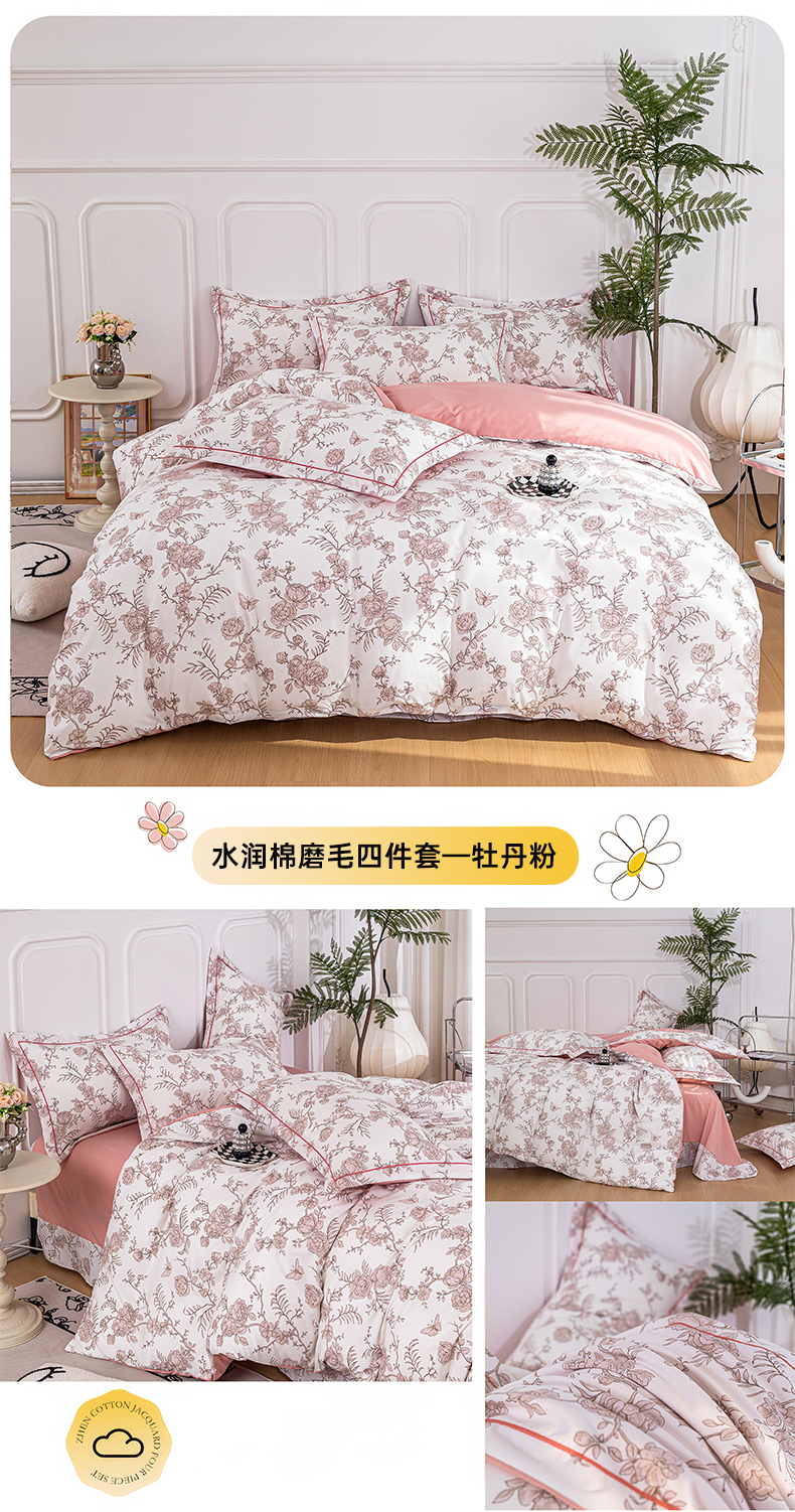 雅慕家居 2025新款A类碎花水润棉磨毛四件套 国色玉香