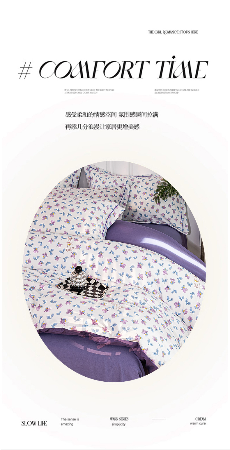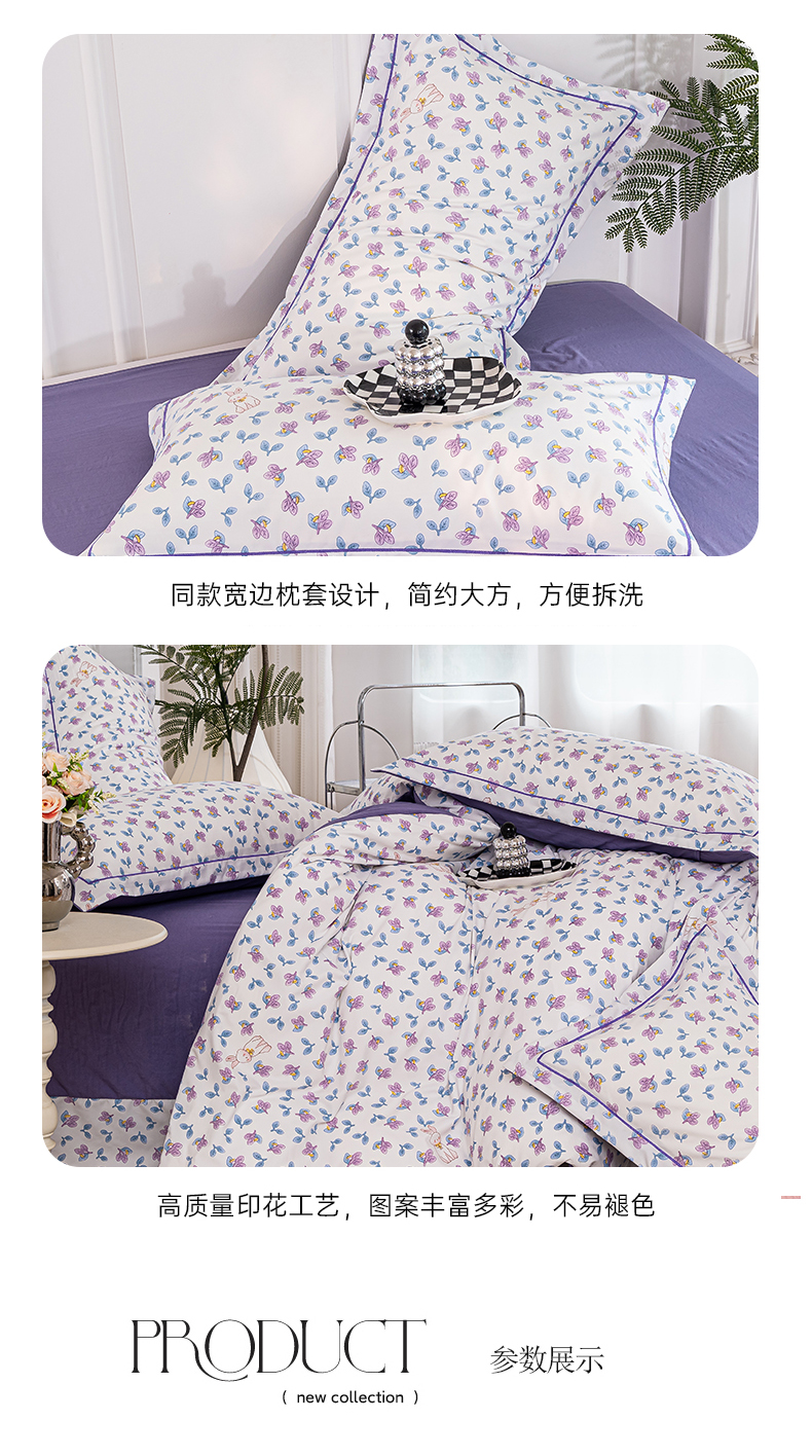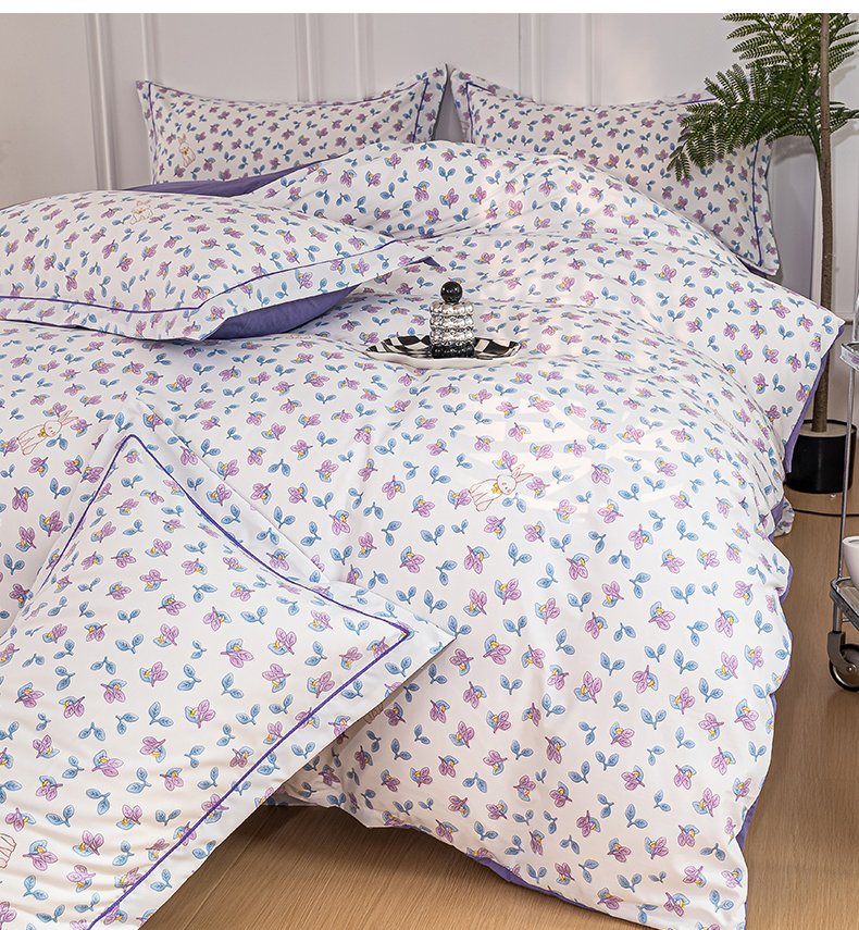 商品名称:雅慕家居 2025新款A类碎花水润棉磨毛四件套 紫梦