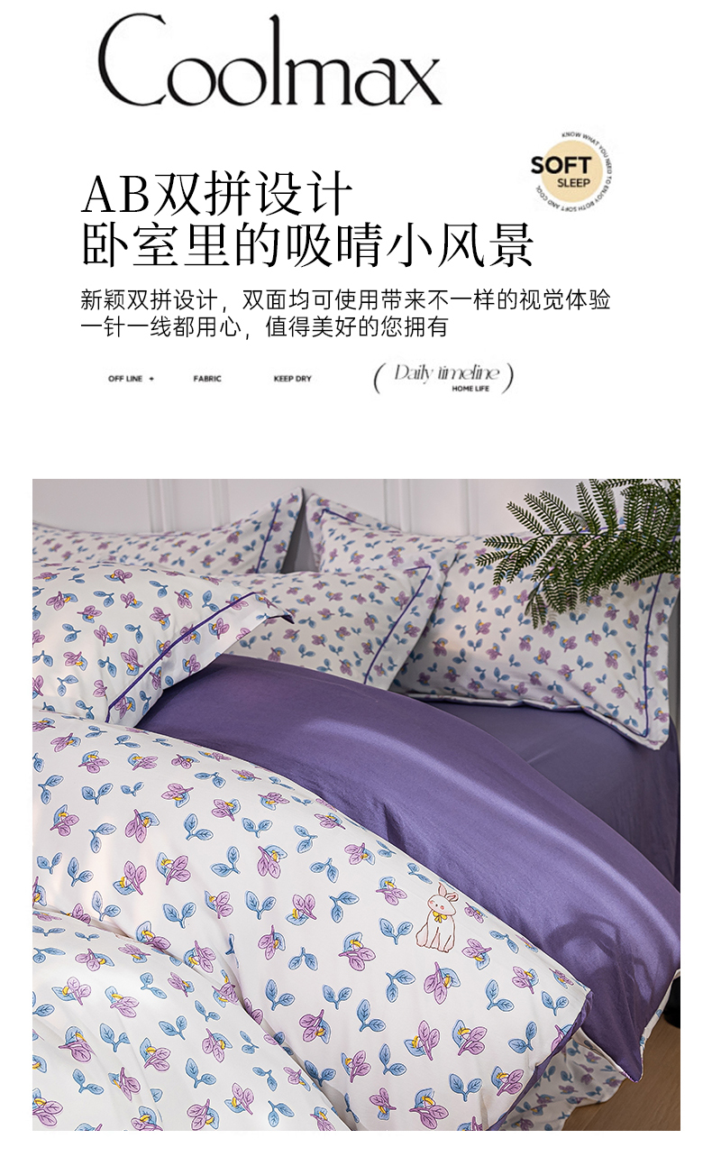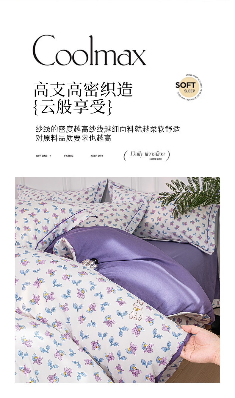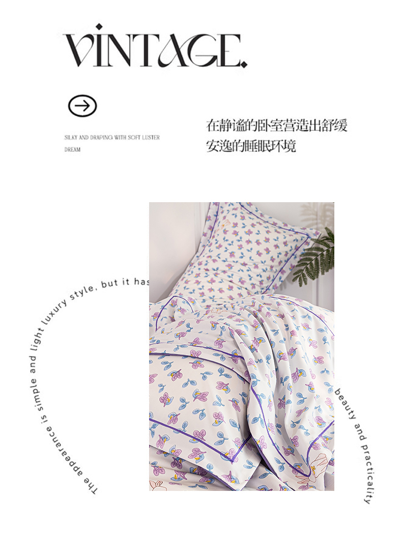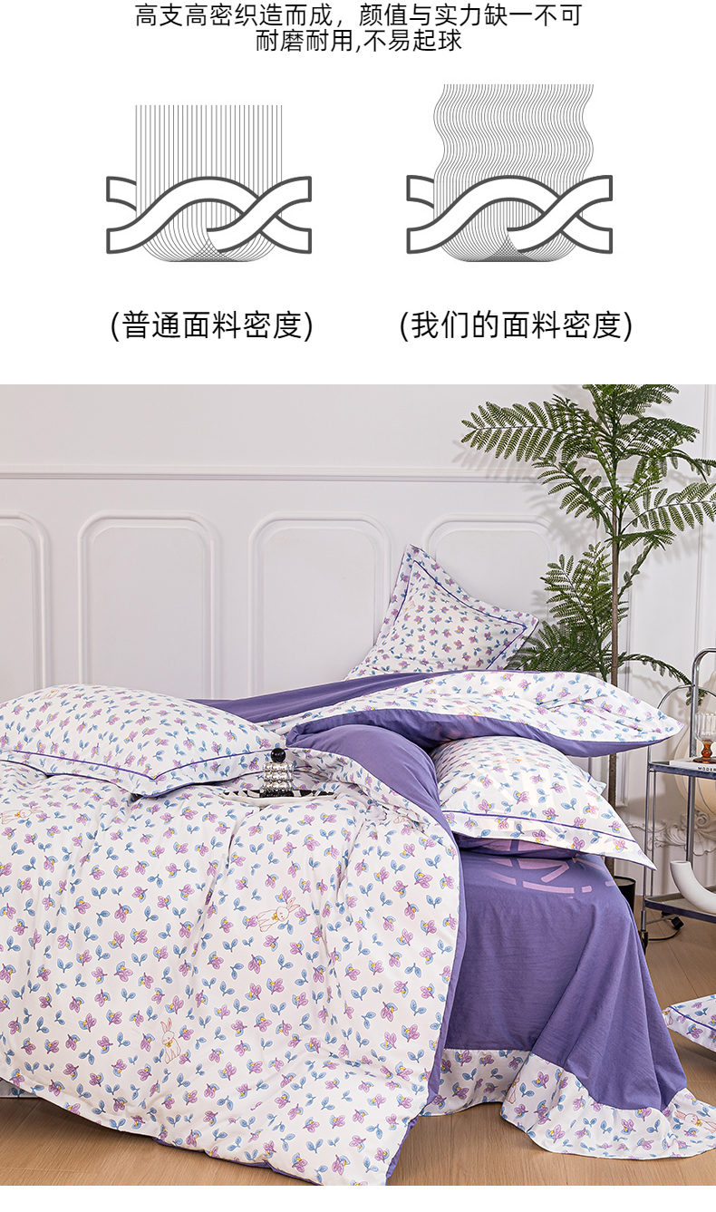 商品名称:雅慕家居 2025新款A类碎花水润棉磨毛四件套 紫梦