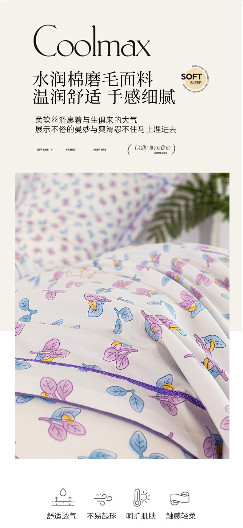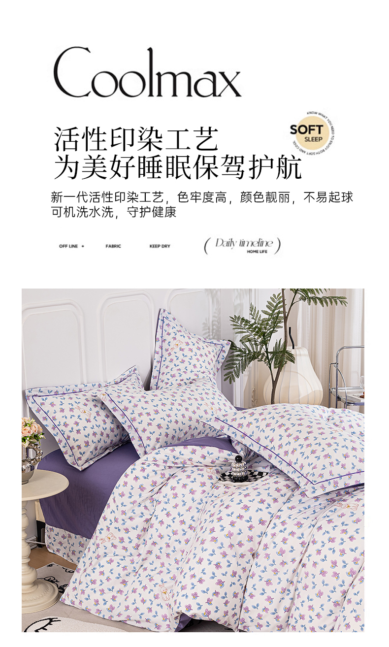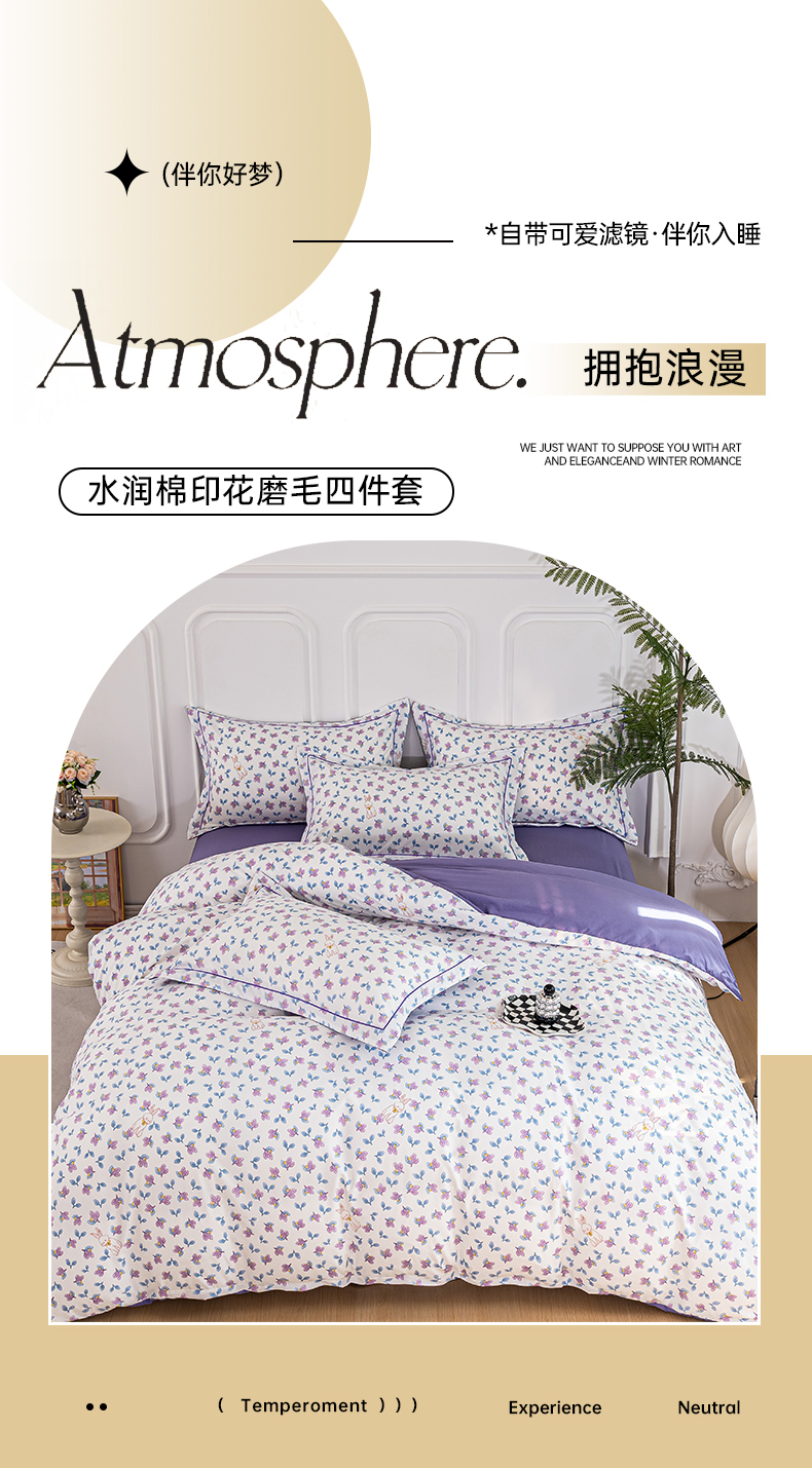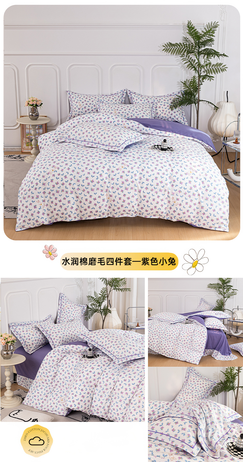 雅慕家居 2025新款A类碎花水润棉磨毛四件套 紫梦