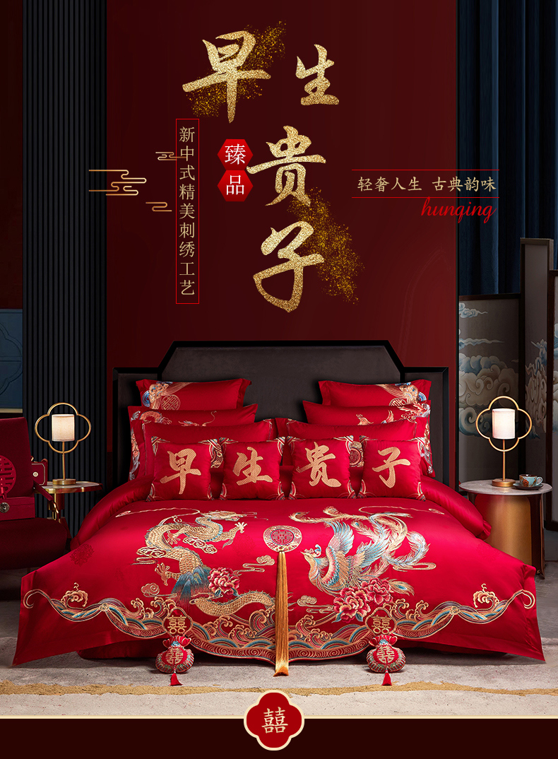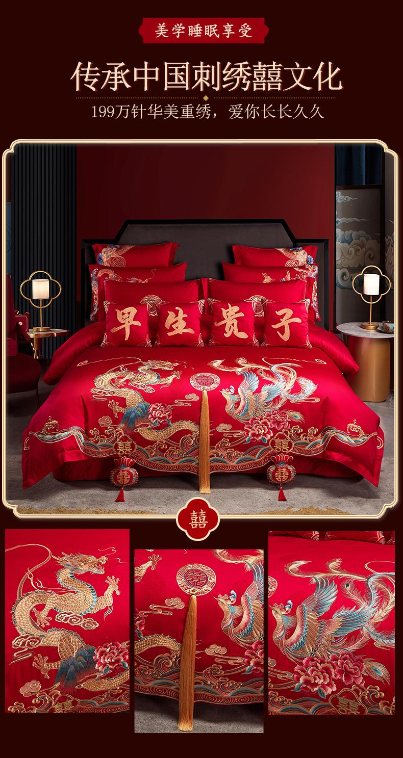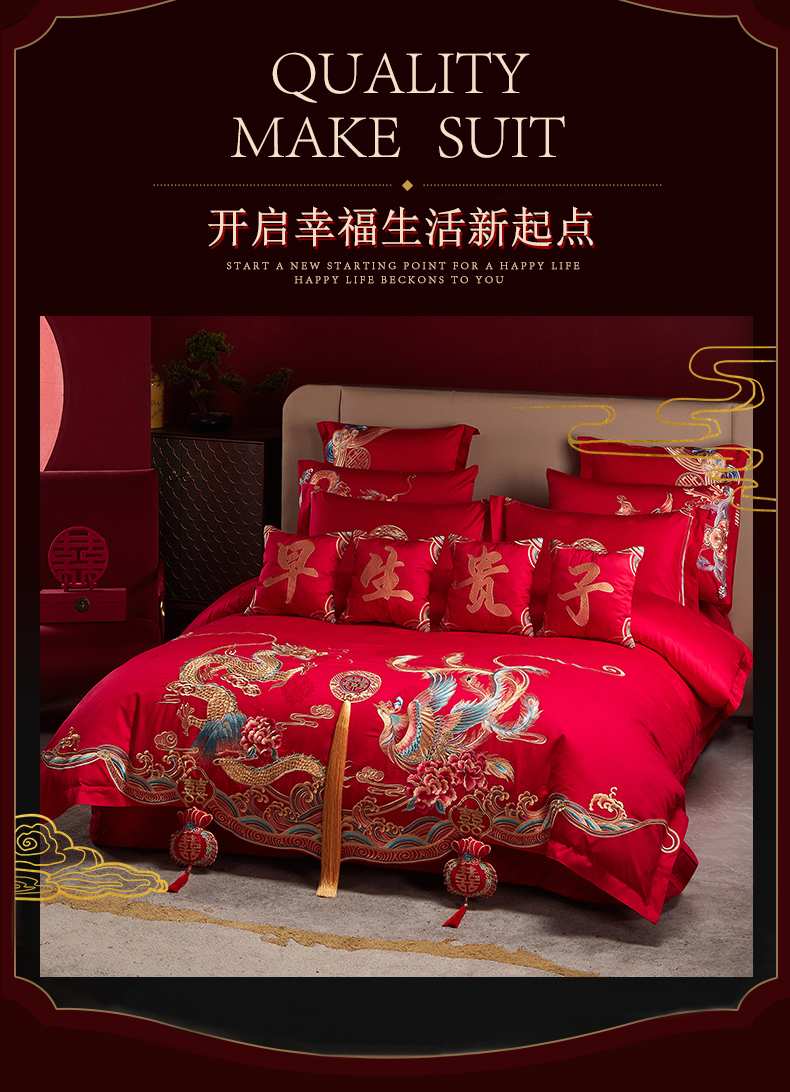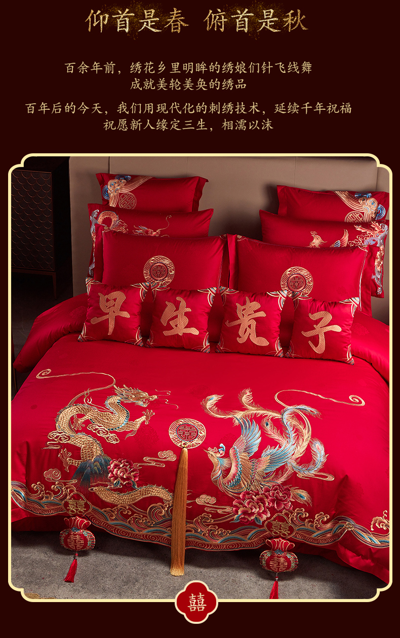 当前位置: 91家纺网 > 商品网购 > 床品套件 > 四件套 > 婚庆四件套 > 2023新款120s提花长绒棉婚庆多件套系列 早生贵子