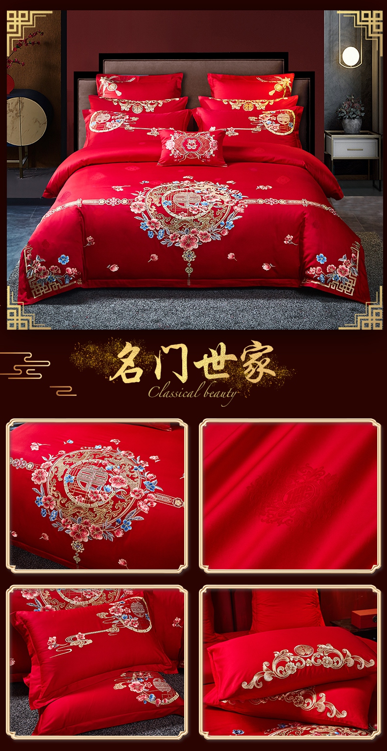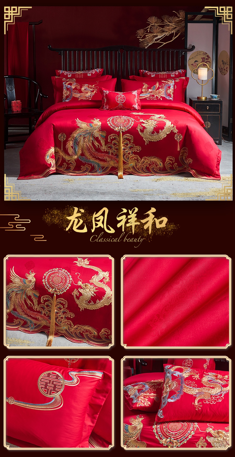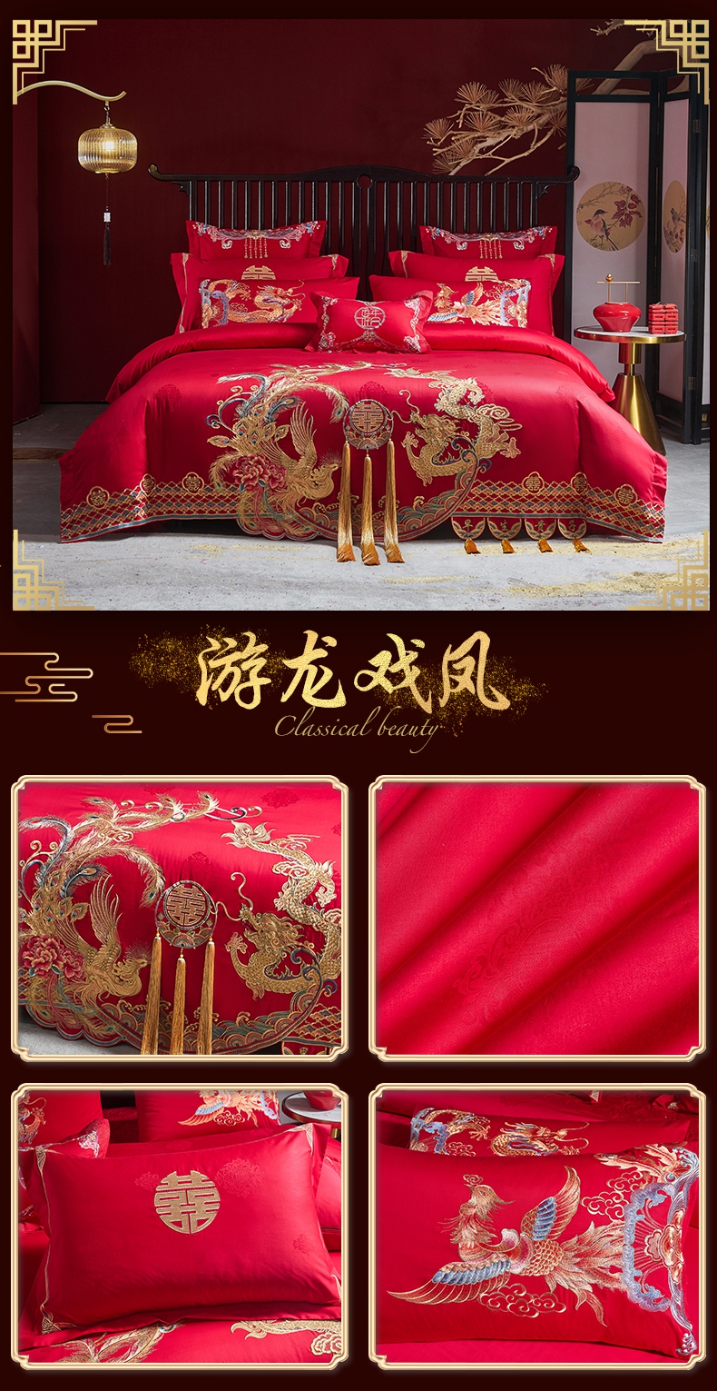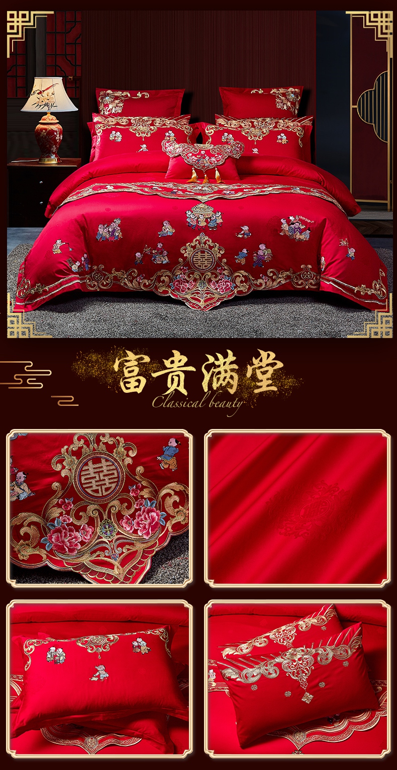 当前位置: 91家纺网 > 商品网购 > 床品套件 > 四件套 > 婚庆四件套 > 2023新款120s提花长绒棉婚庆多件套系列 早生贵子
