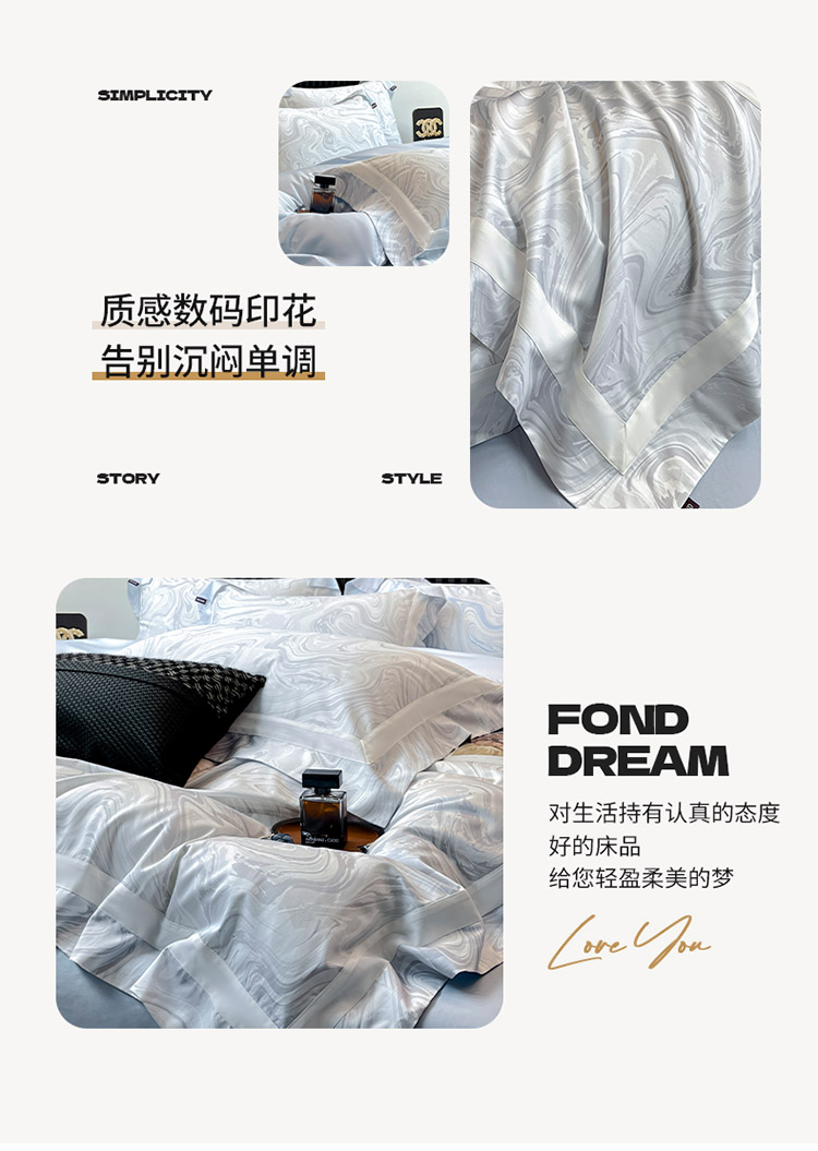 (总)春夏爆款全棉数码印花四件套纯棉轻奢风长绒棉床单被套时尚床上用品浮影