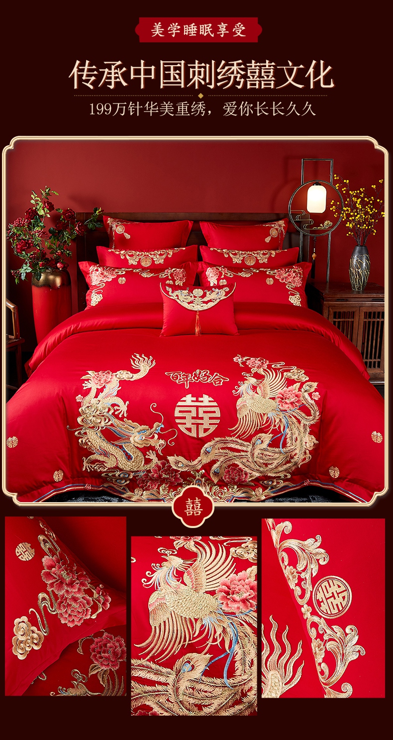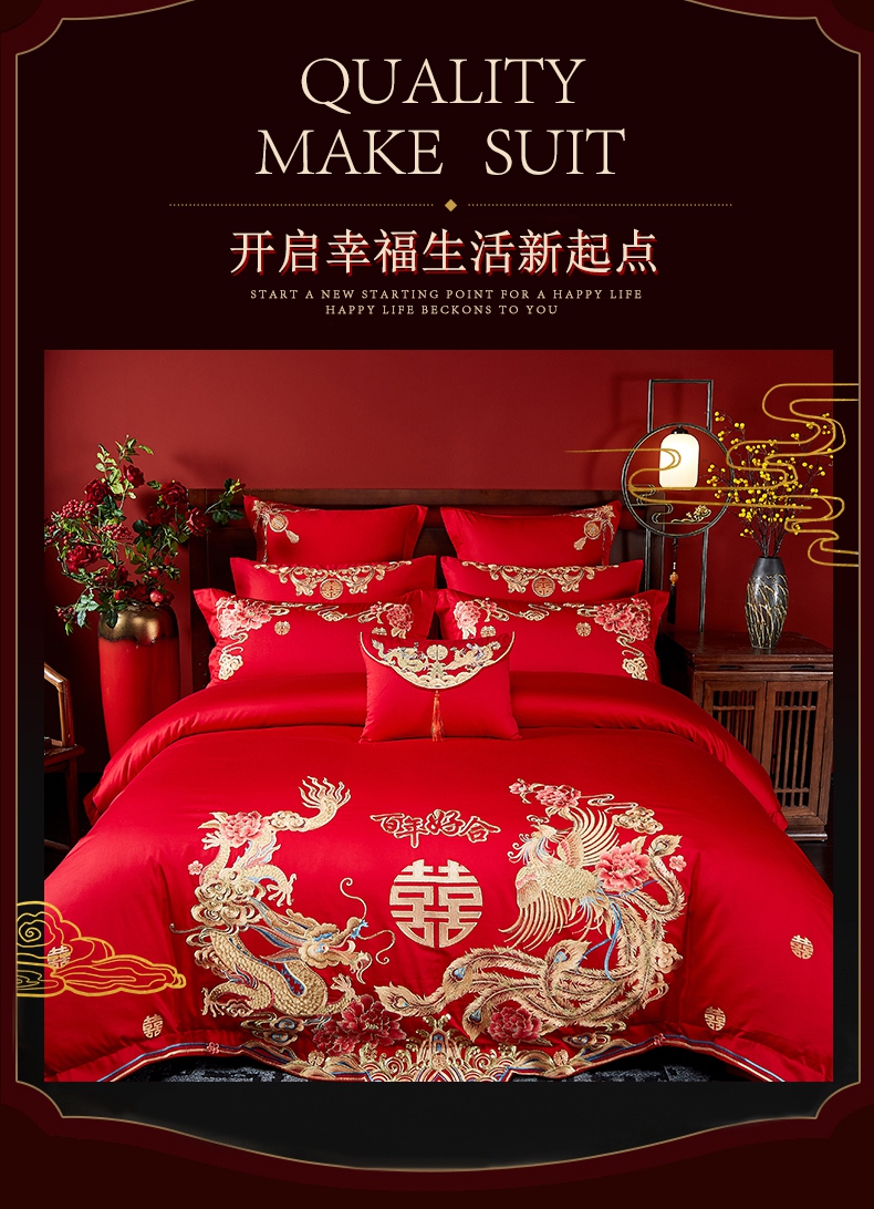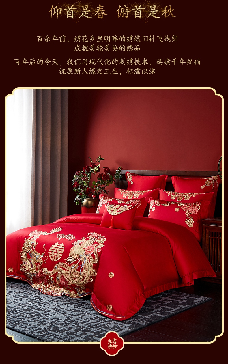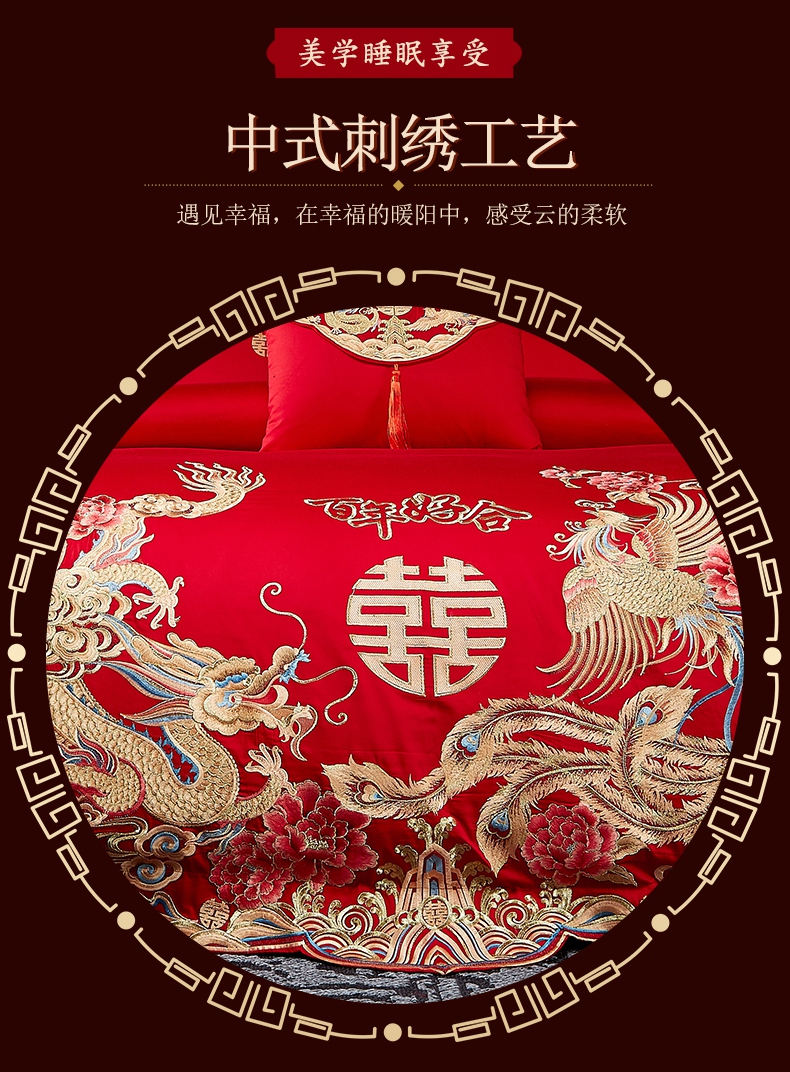 当前位置: 91家纺网 > 商品网购 > 床品套件 > 四件套 > 婚庆四件套 > 东方合美(原:皇家传奇) 2023新款40s全工艺喷气刺绣纯棉婚庆多件套-系列三 百年好合