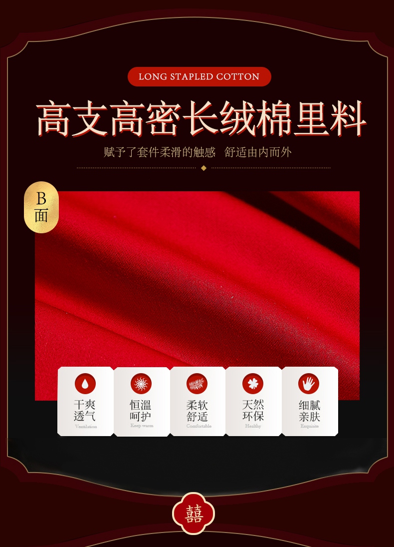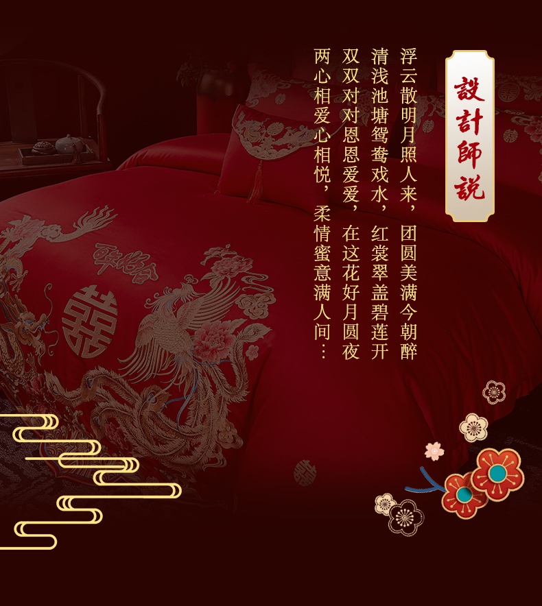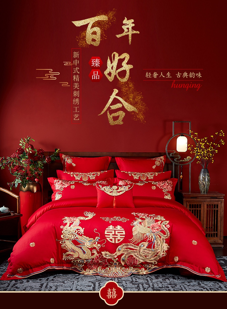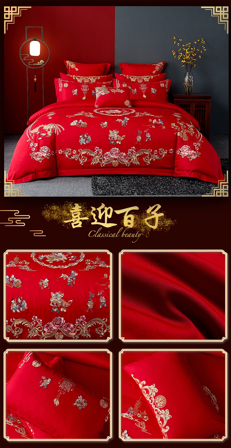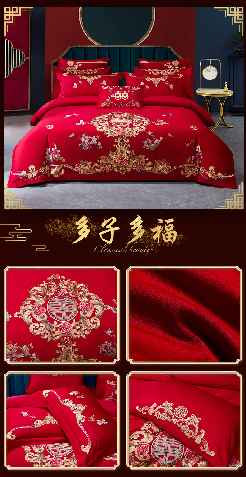 当前位置: 91家纺网 > 商品网购 > 床品套件 > 四件套 > 婚庆四件套 > 东方合美(原:皇家传奇) 2023新款40s全工艺喷气刺绣纯棉婚庆多件套-系列三 百年好合