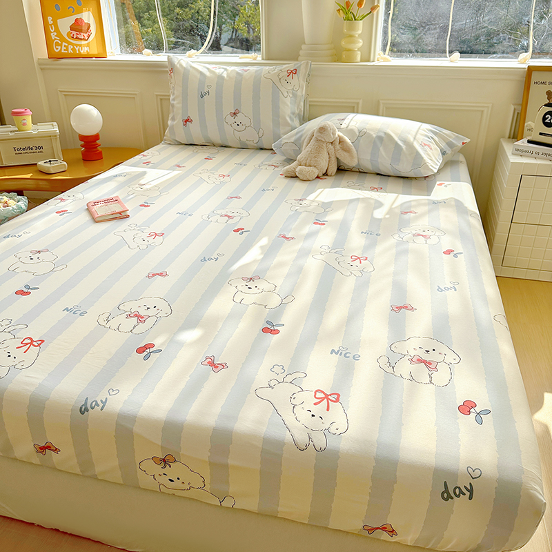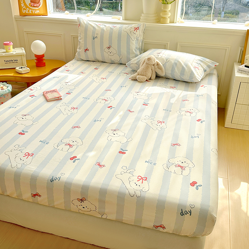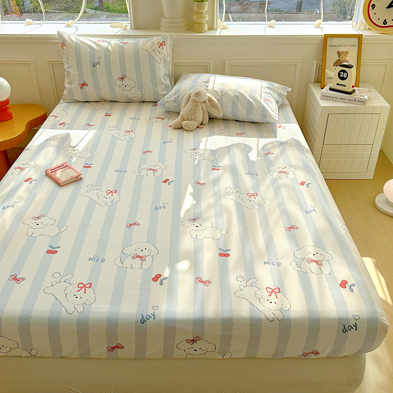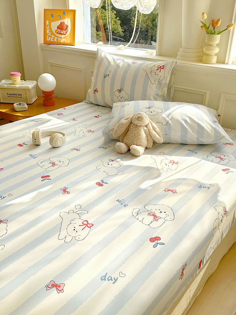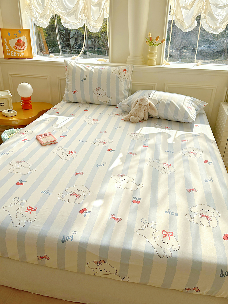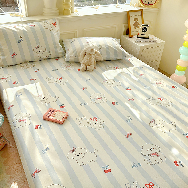 希诺家居 2025新款全棉纯棉卡通小清新床笠 樱桃小奶狗