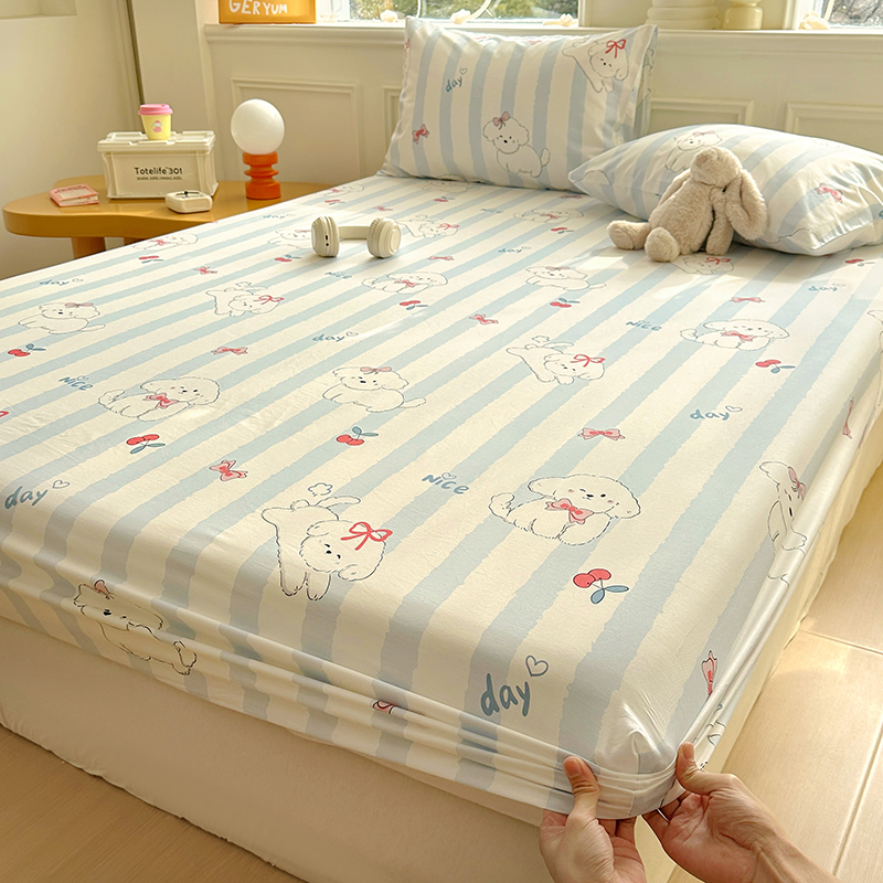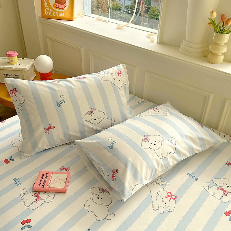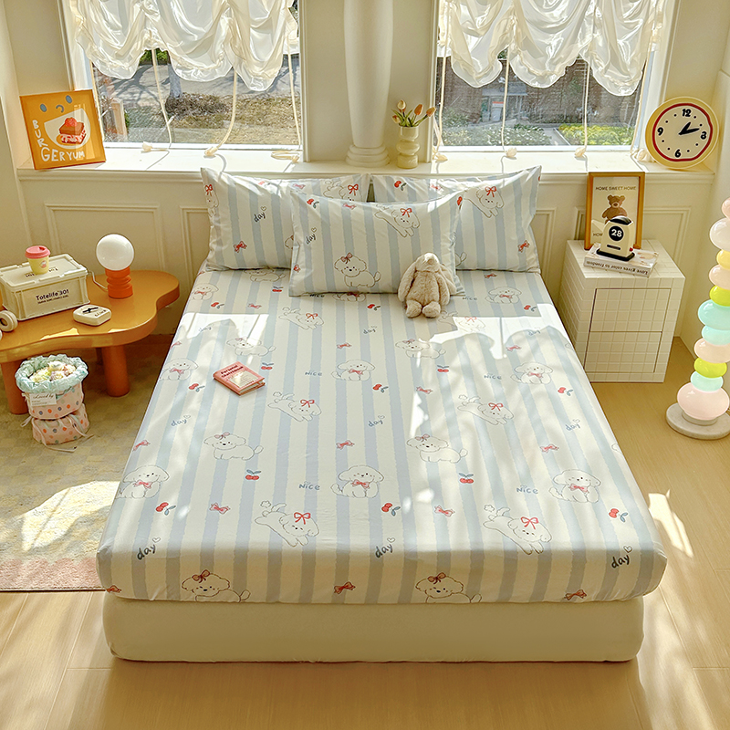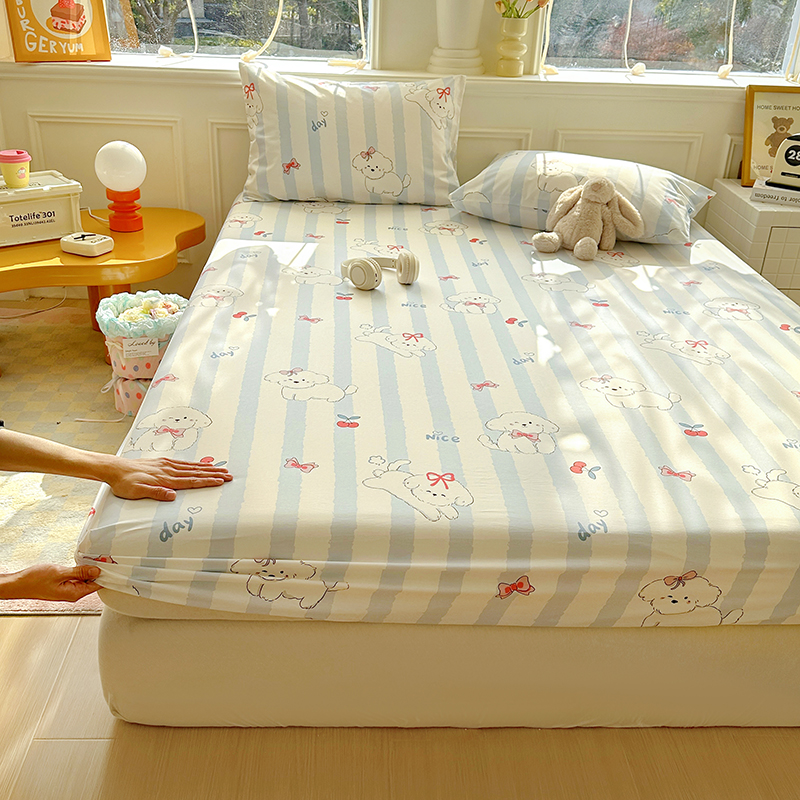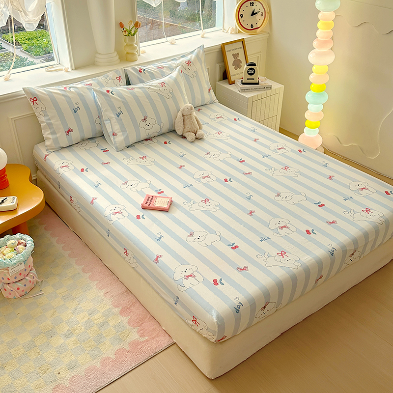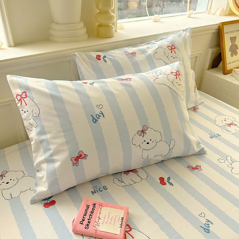 希诺家居 2025新款全棉纯棉卡通小清新床笠 樱桃小奶狗