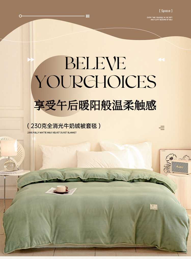 商品名称:法芙娜 2025新款牛奶绒被套毯 苔藓绿