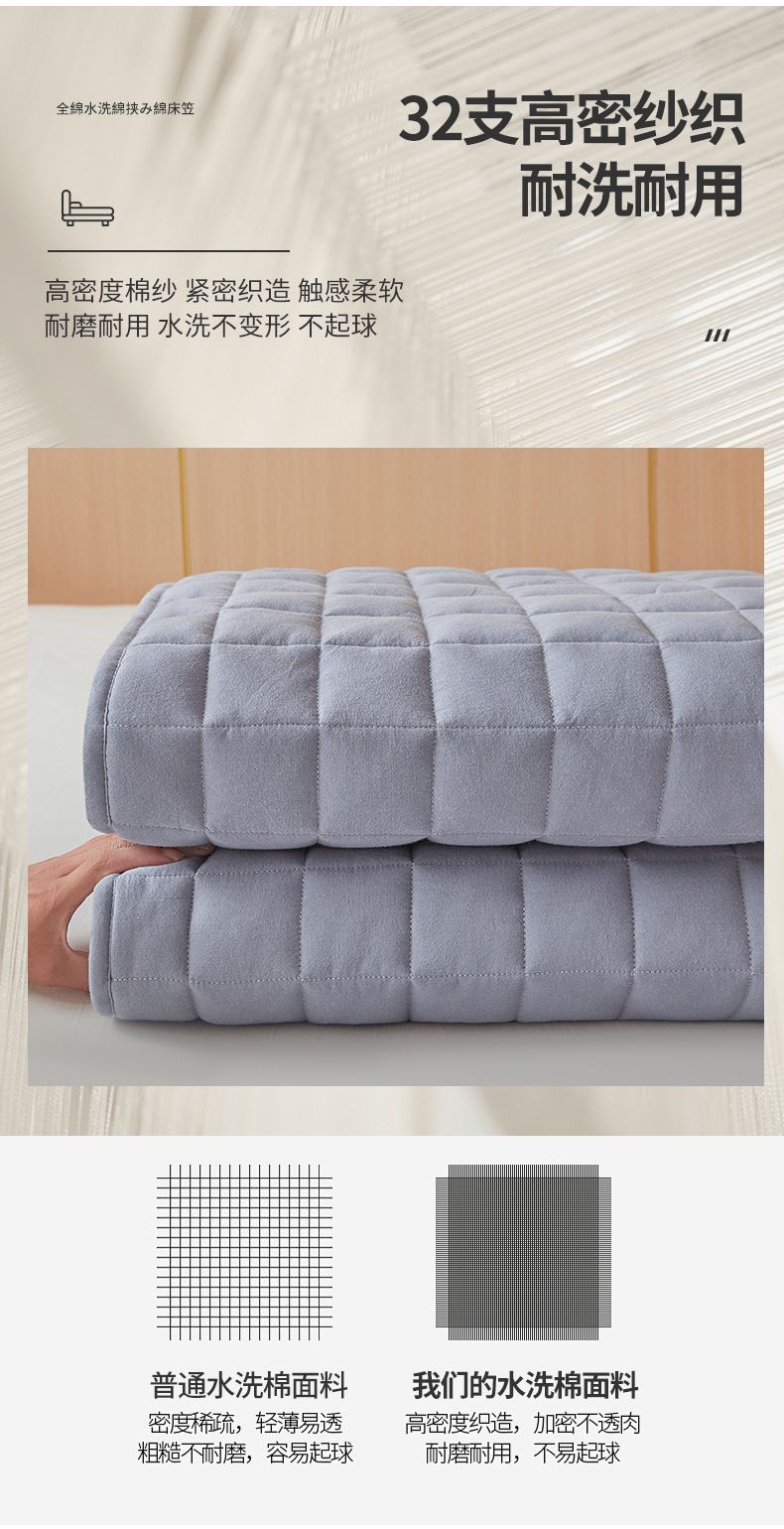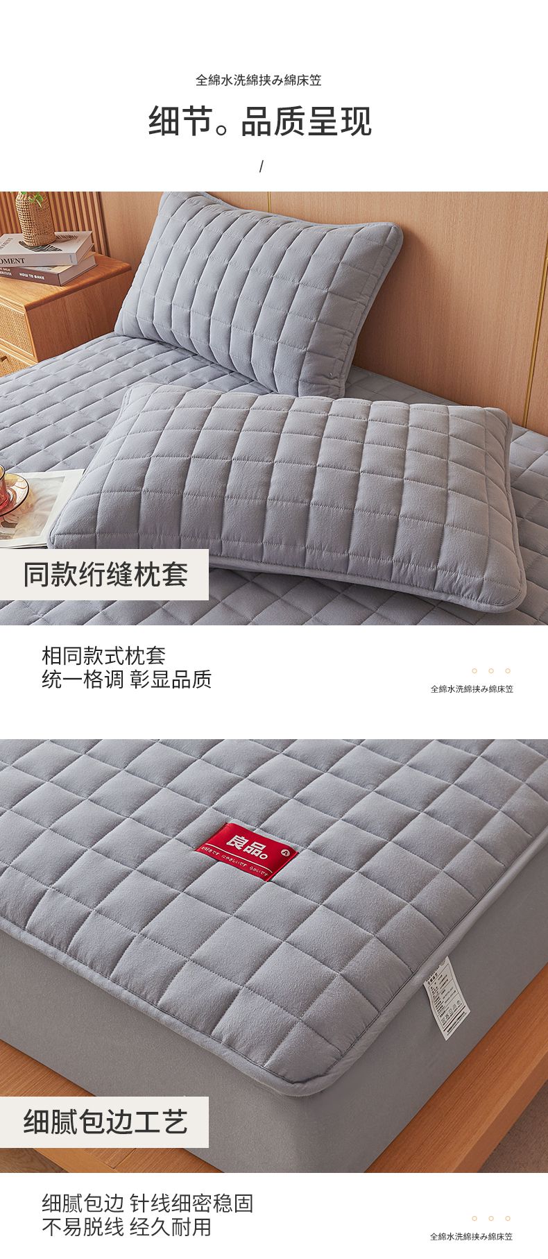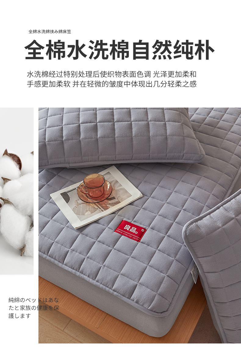 商品名称:3C 2025新款全棉水洗棉夹棉床笠-良品 良品 蓝灰