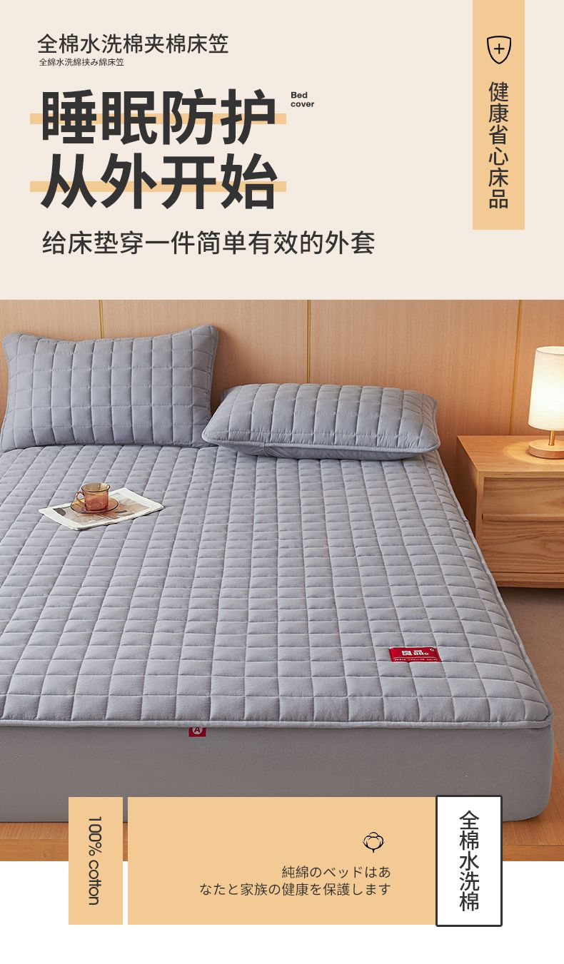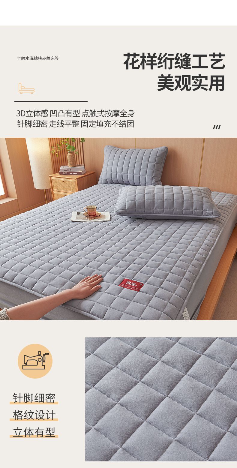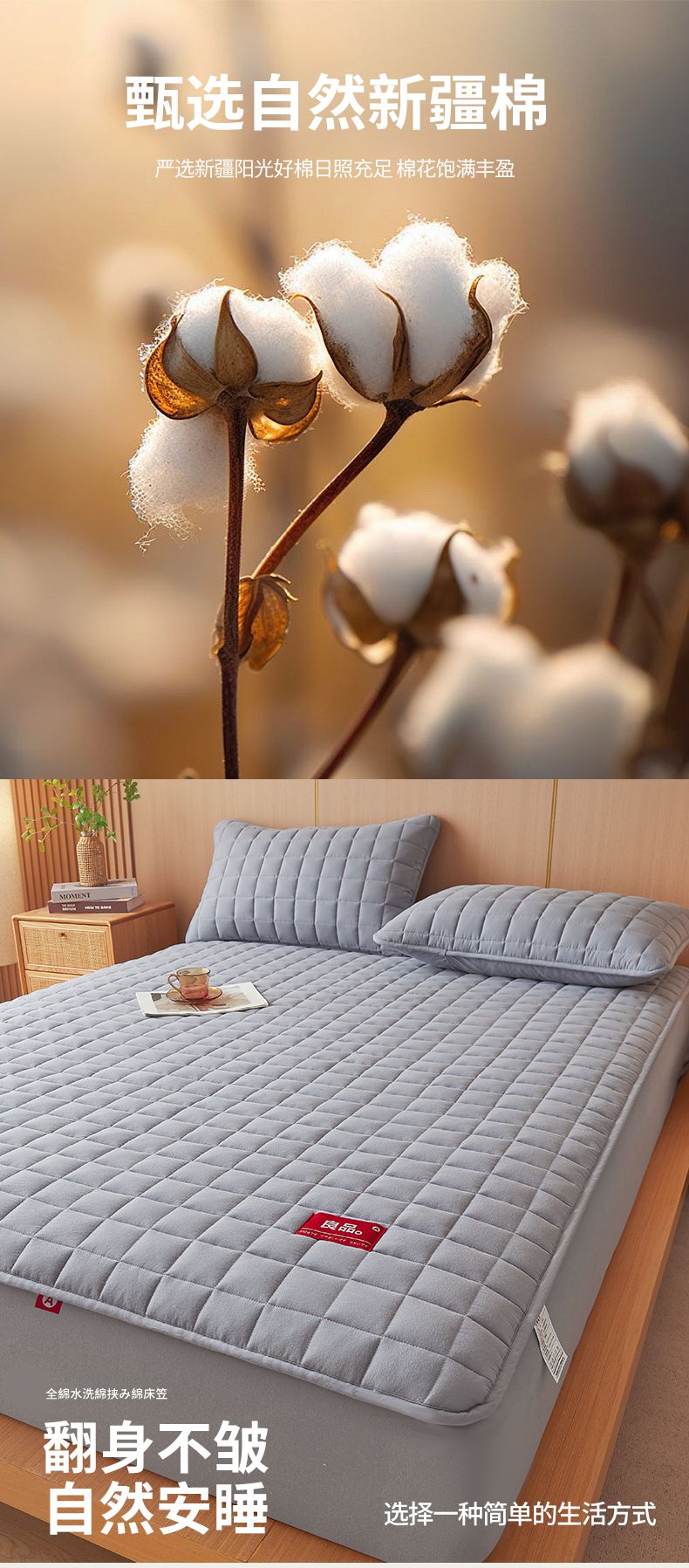 商品名称:3C 2025新款全棉水洗棉夹棉床笠-良品 良品 蓝灰