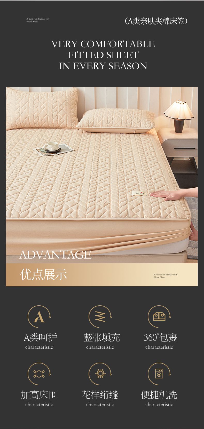 • 91家纺网 家纺一手货源 找家纺 3C 2025新款A类亲肤夹棉床笠-麦穗格 麦穗格 浅卡其
