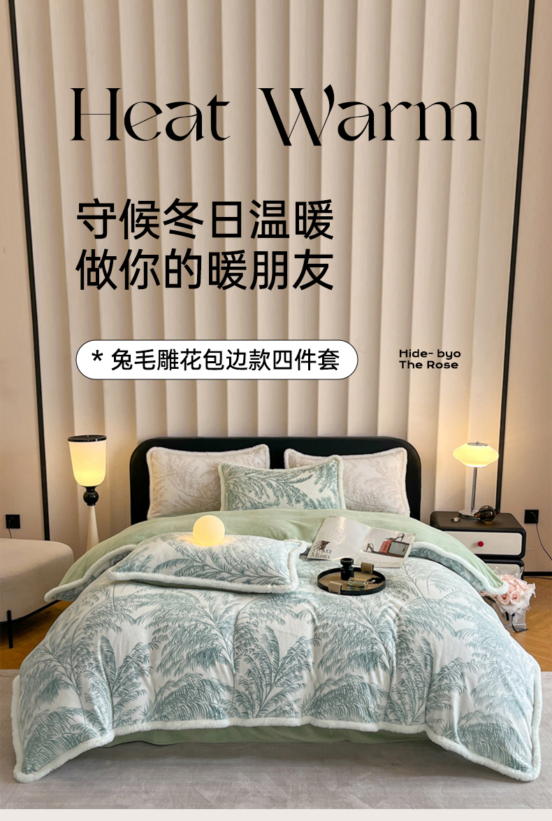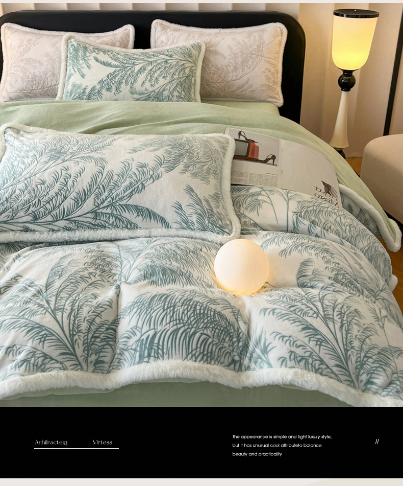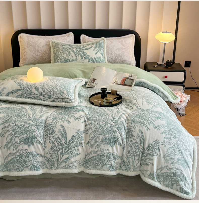 畅畅家纺 2025新款兔毛绒大包边雕花牛奶绒绒四件套 森林奇境-绿