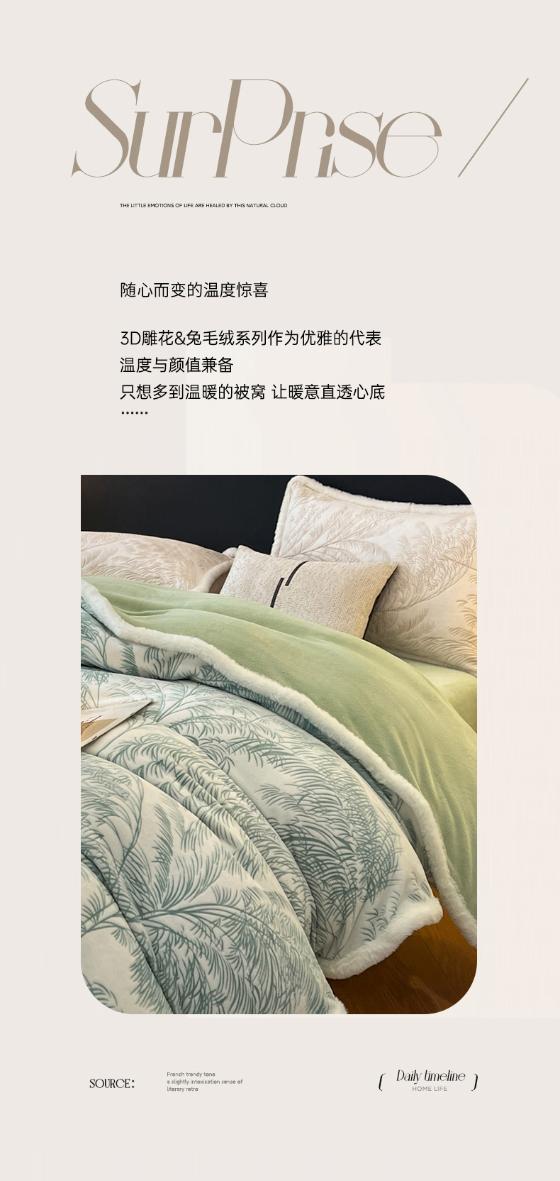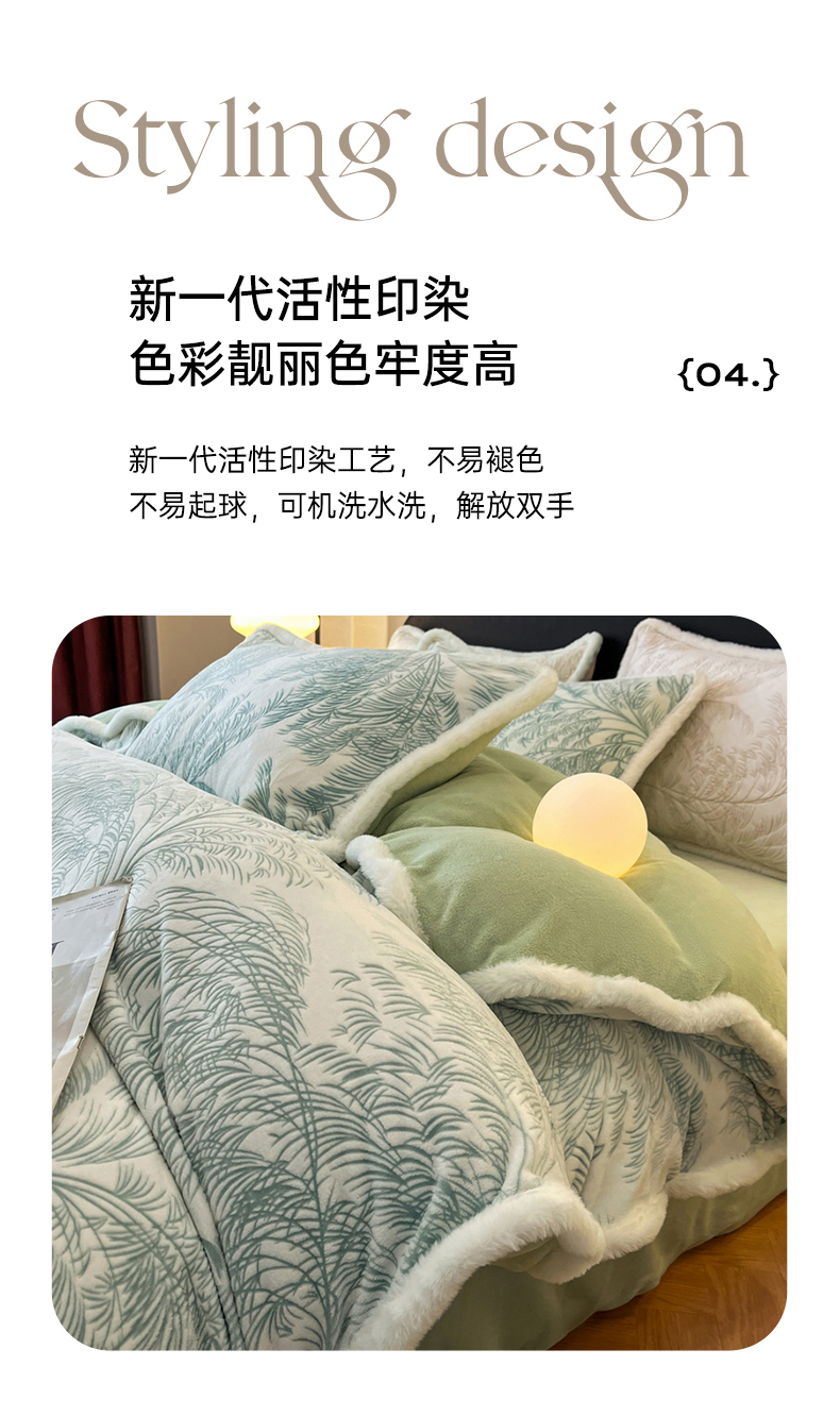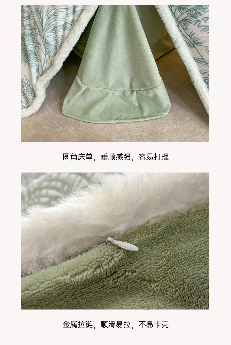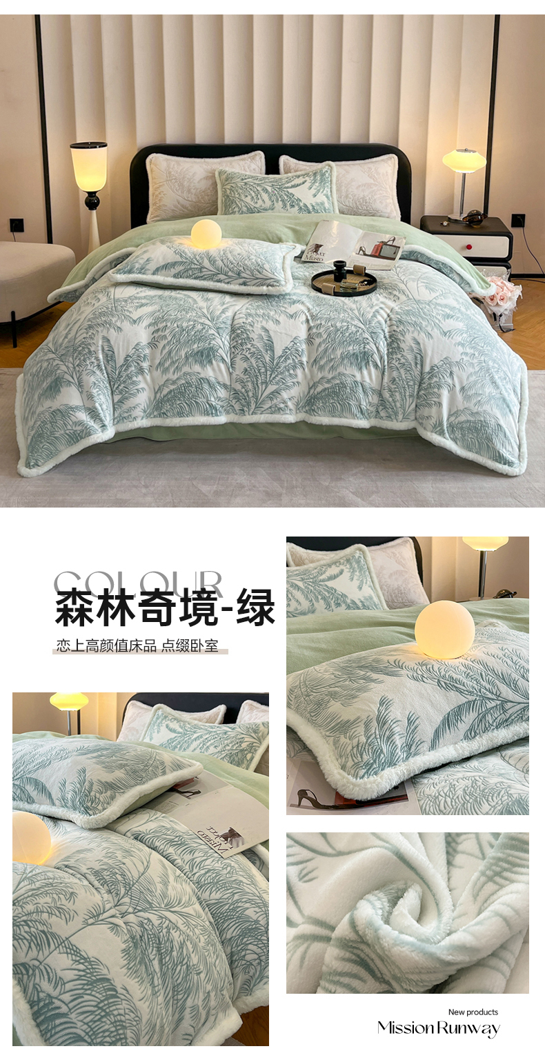 商品名称:畅畅家纺 2025新款兔毛绒大包边雕花牛奶绒绒四件套 森林奇境-绿