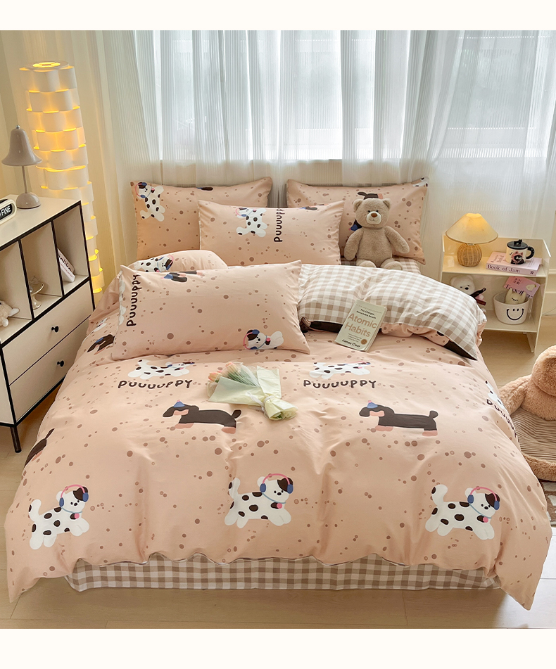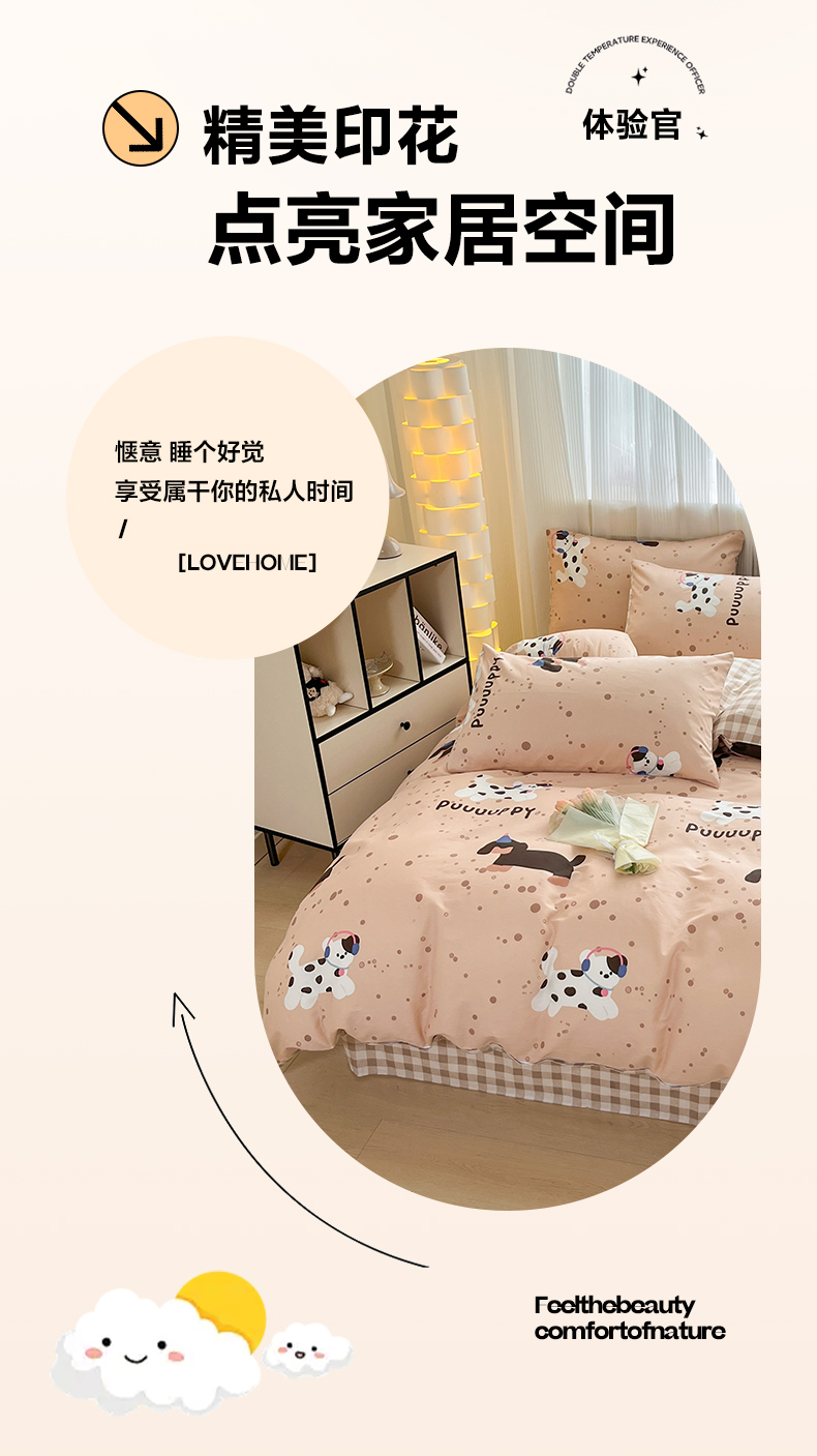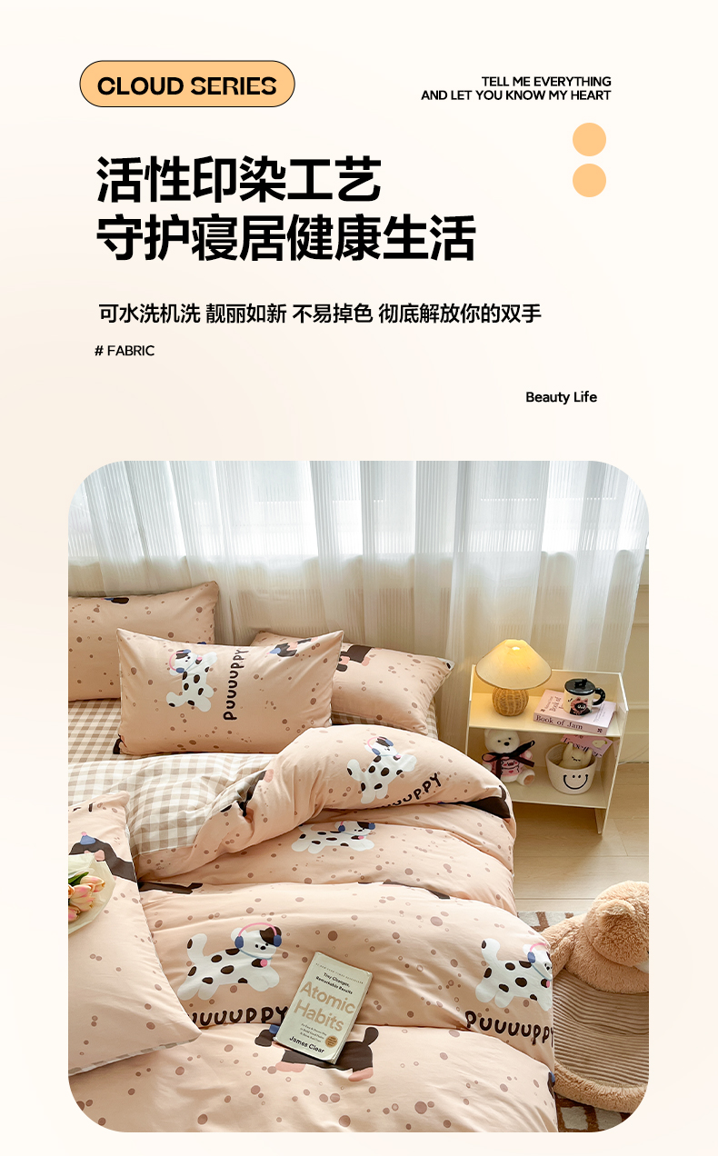雅居纺家纺 2025新款全棉小清新四件套 斑点狗