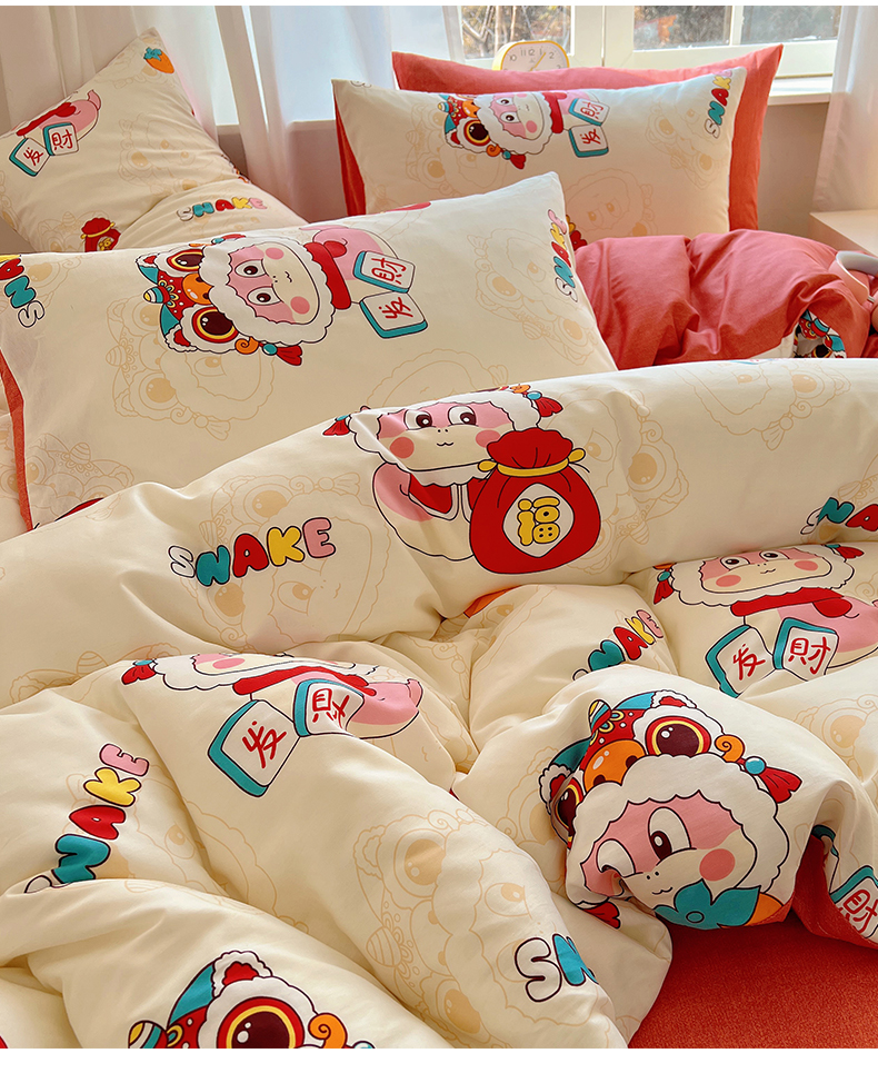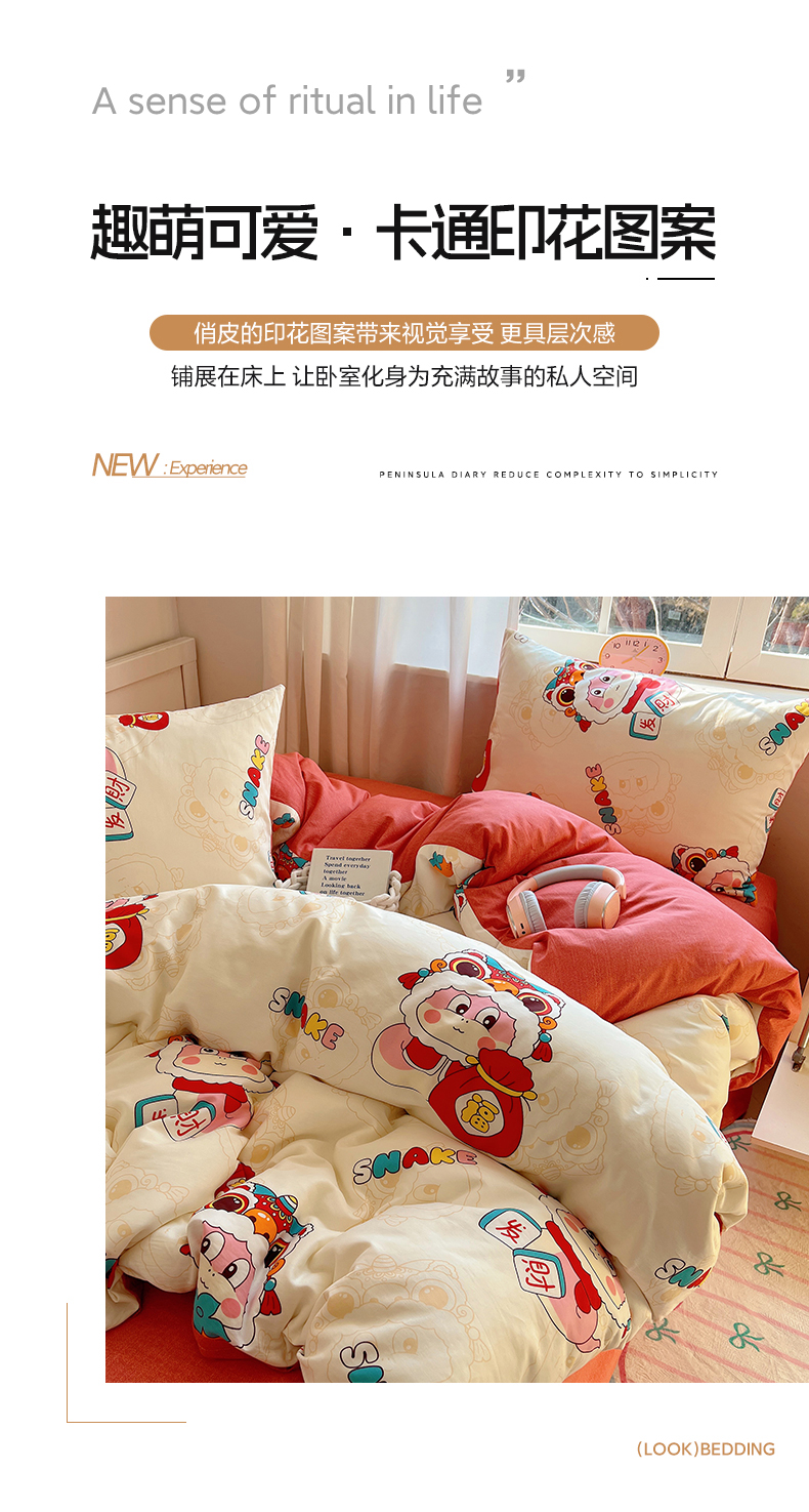 (总)雅居纺家纺 2022新款13070全棉印花四件套,波纹,多彩,简笔画,莓关系,奶油绿豹纹,倾心,数字