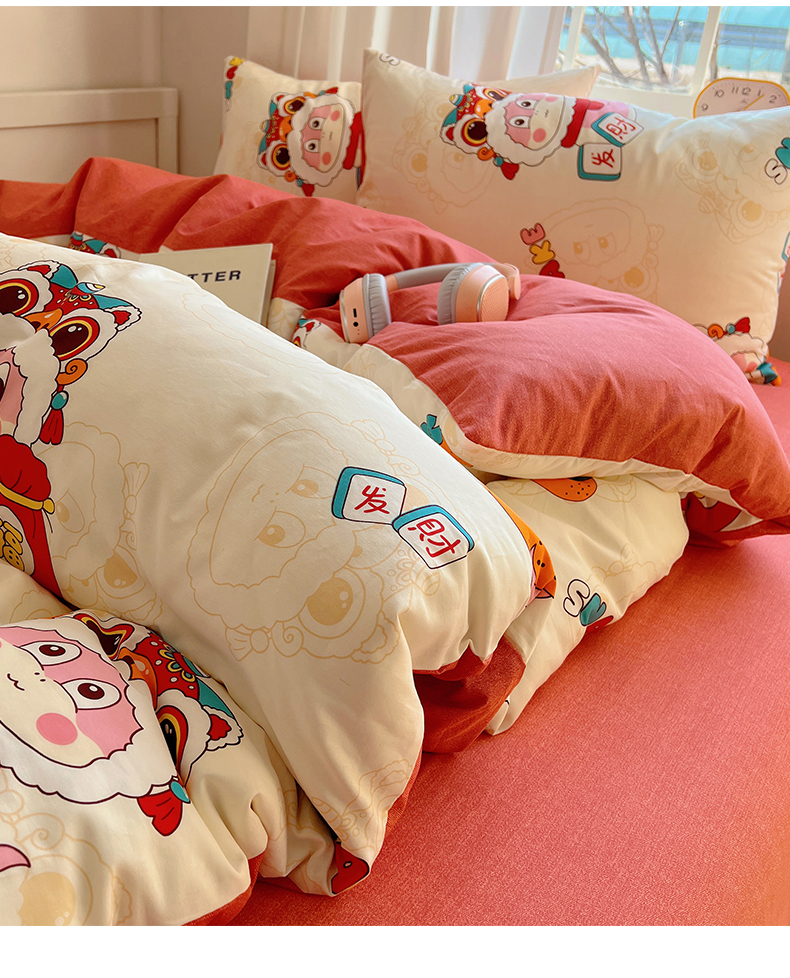(总)雅居纺家纺 2022新款13070全棉印花四件套,草莓蝴蝶结,俄罗斯方块,黑白蝴蝶结,很嗨兔,可爱小兔,快乐花海,牛奶纹,胖胖鸭,棋盘格,日月争辉,西部恐龙,小情调,小桃桃
