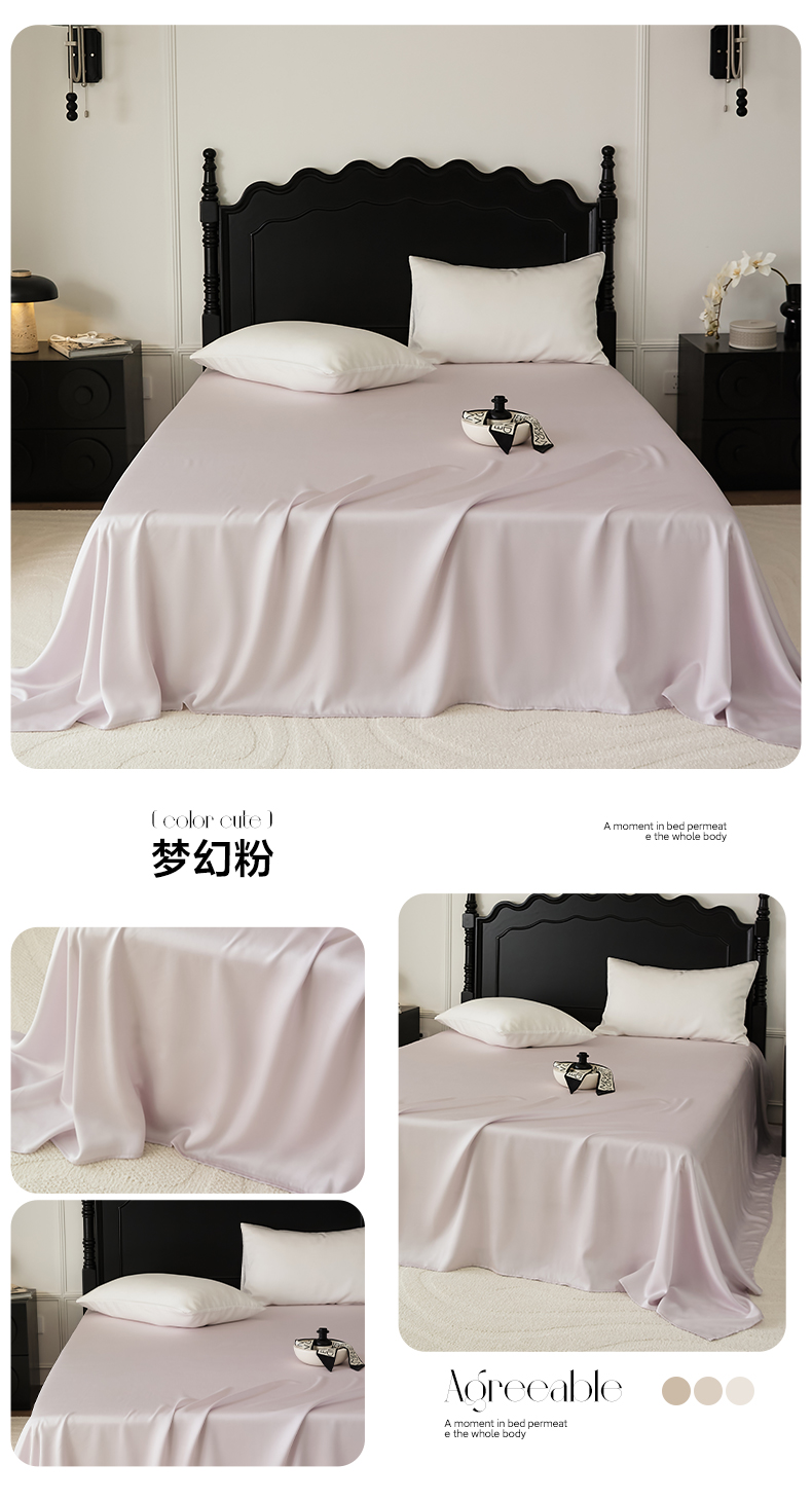 • 91家纺网 家纺一手货源 找家纺 EH家居 2025春夏天丝纯色单床单 梦幻粉