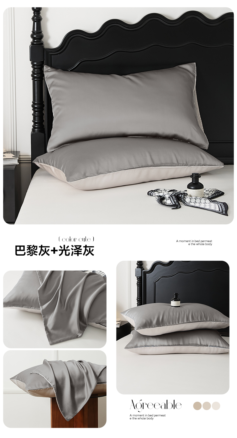 商品名称:EH家居 2025春夏天丝纯色单枕套 巴黎灰+光泽灰