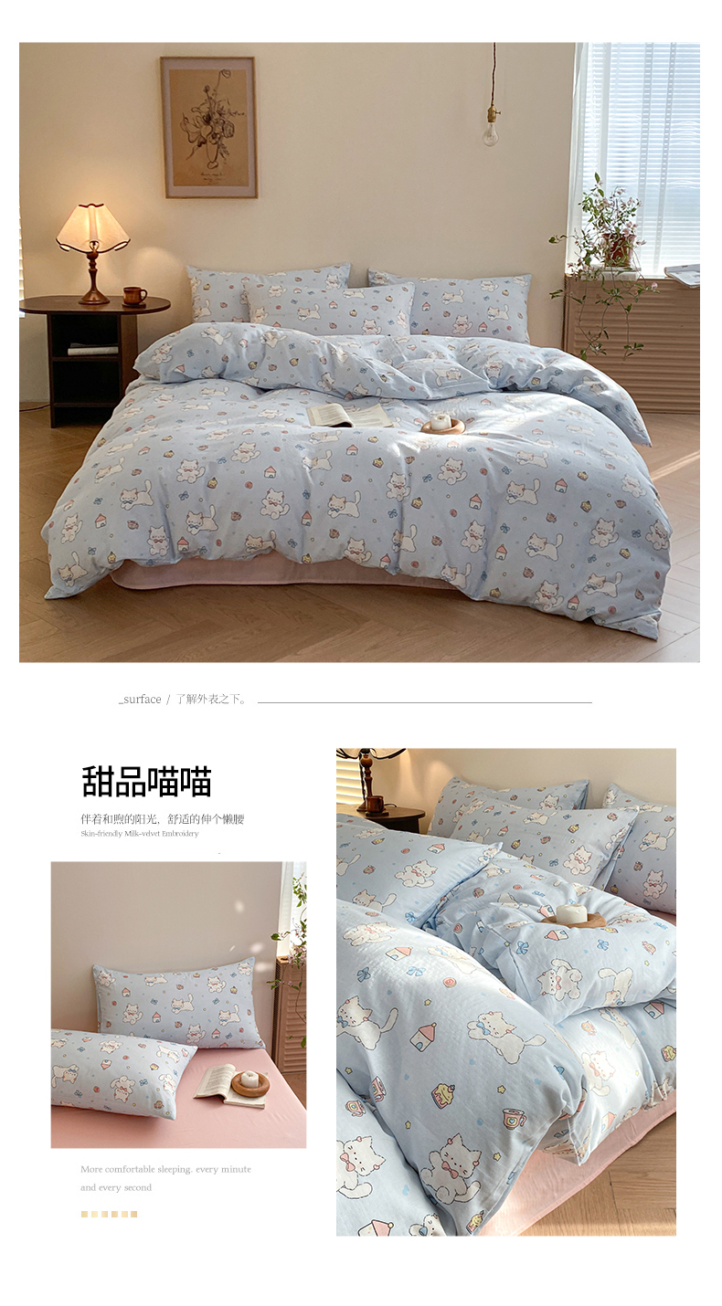 当前位置: 91家纺网 > 商品网购 > 床品套件 > 四件套 > 全棉普通四件套 > 2025新款A类母婴级有氧全棉纯棉双层纱纯棉印花四件套 场景一 甜品喵喵