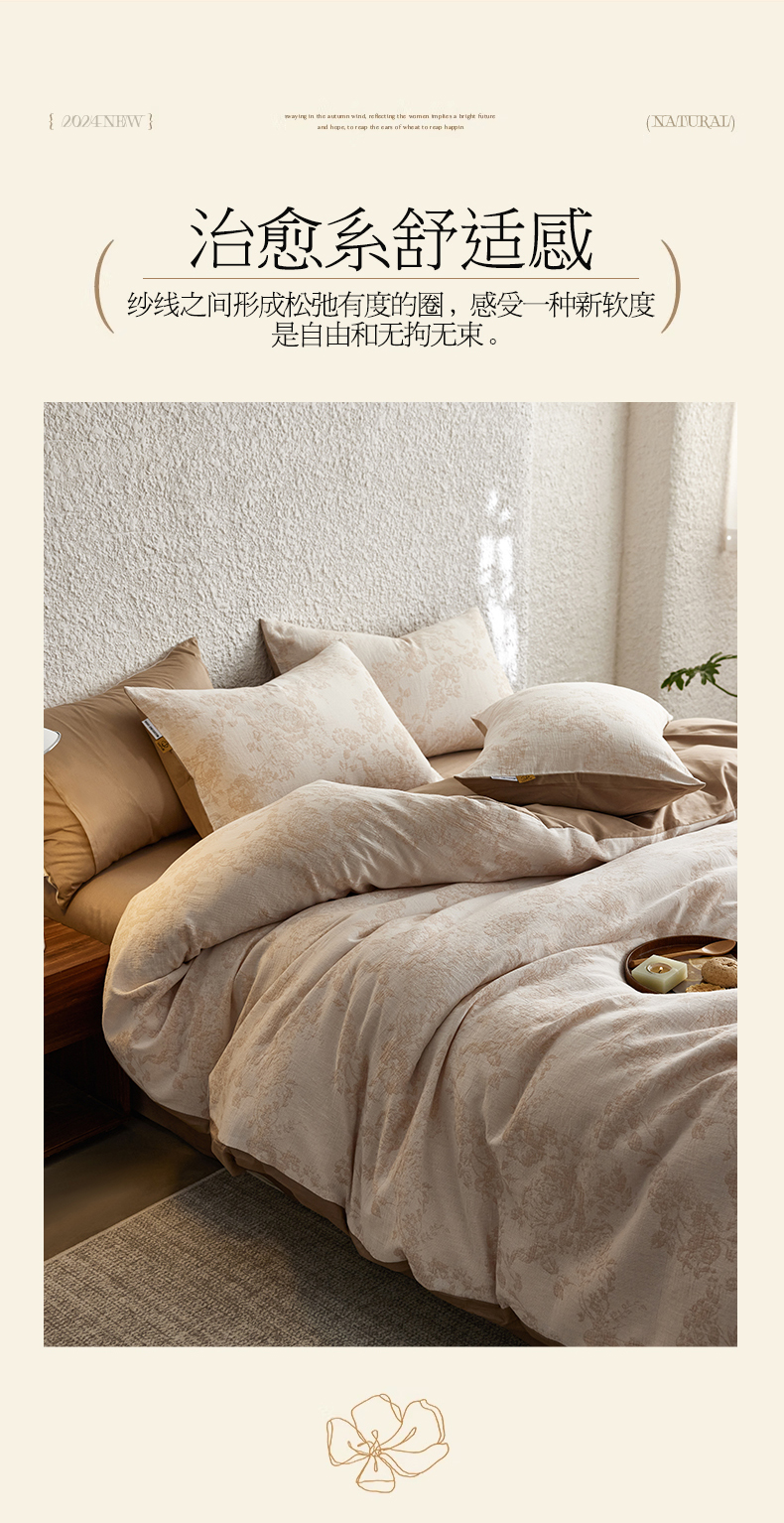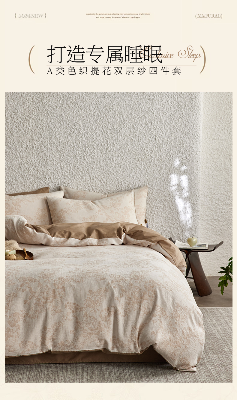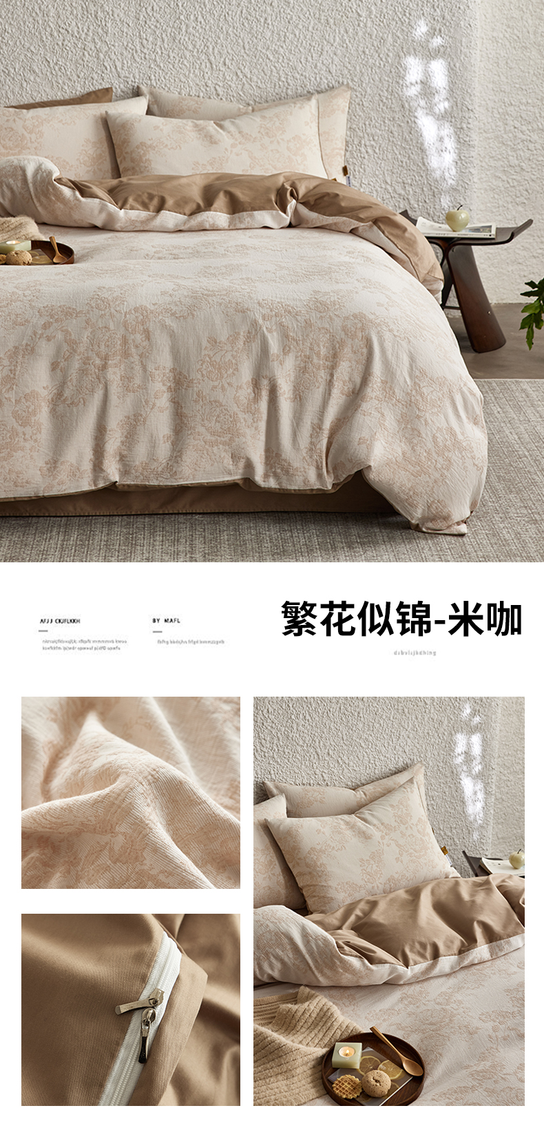 当前位置: 91家纺网 > 商品网购 > 床品套件 > 四件套 > 凯磊家纺 2025新款色织提花双层纱四件套 繁花似锦-米咖