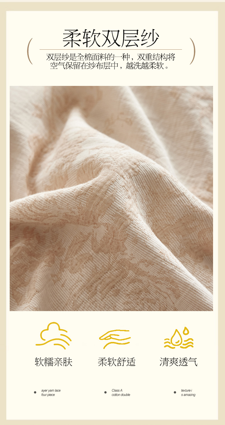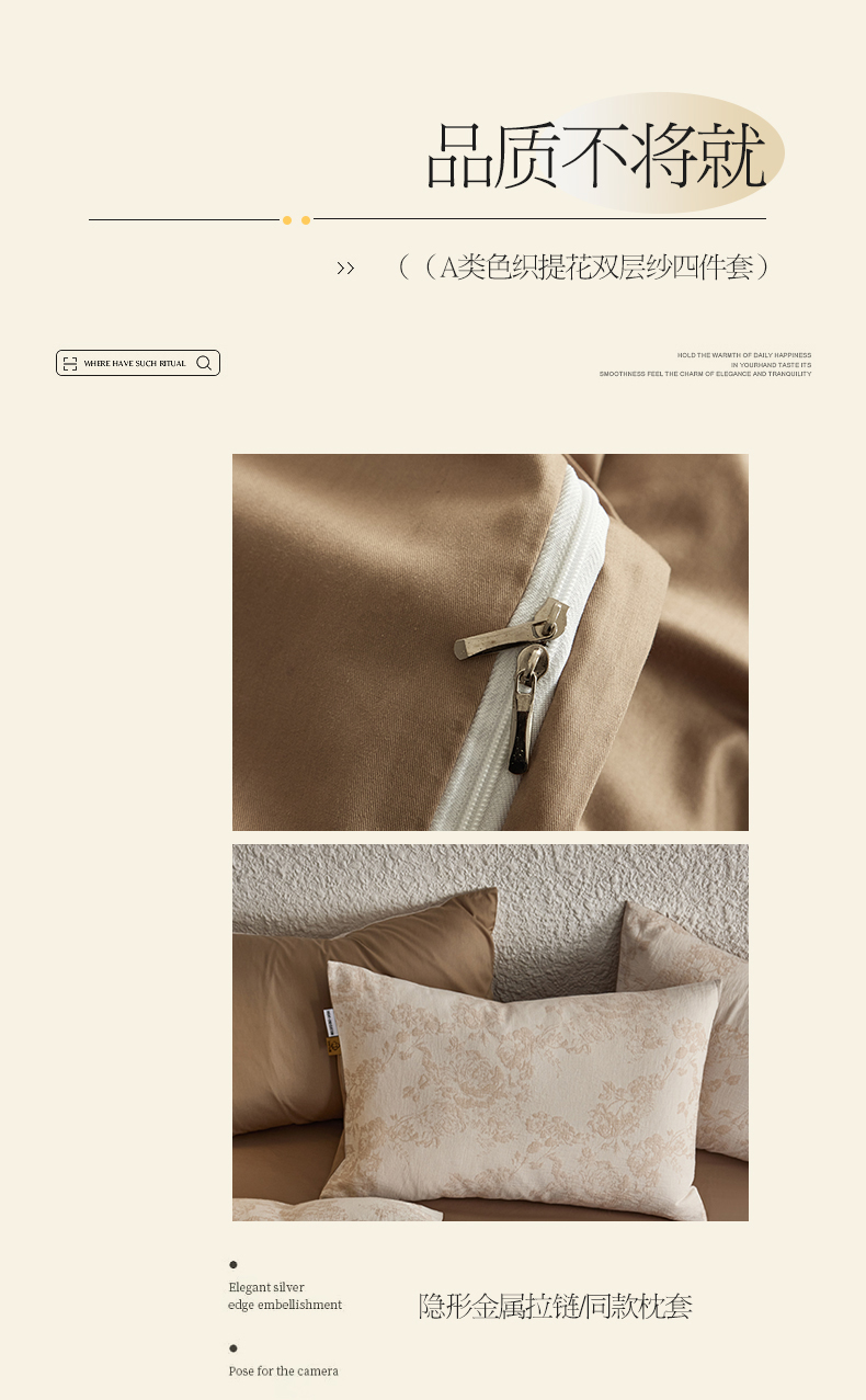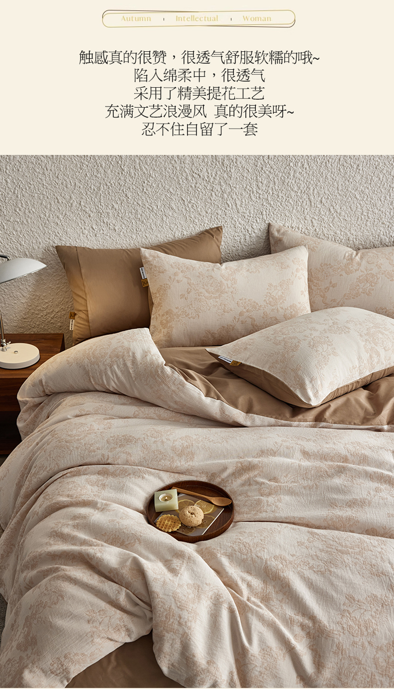 当前位置: 91家纺网 > 商品网购 > 床品套件 > 四件套 > 凯磊家纺 2025新款色织提花双层纱四件套 繁花似锦-米咖