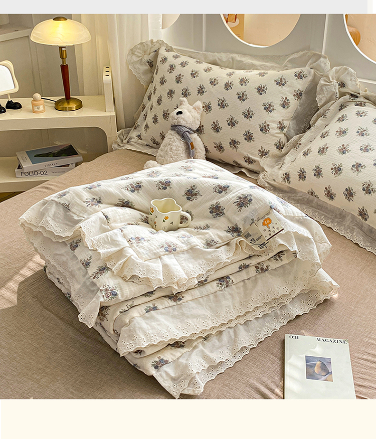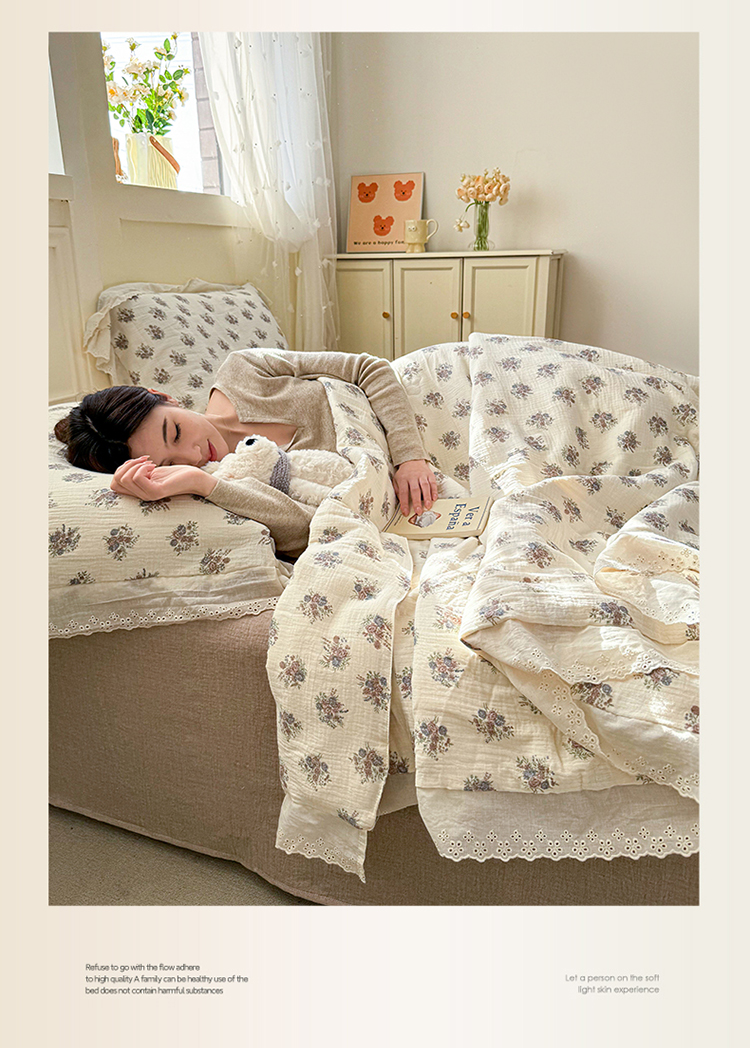 2025新款全棉双层皱皱沙印花花边30%大豆夏凉被纯棉夏被被子被芯 花梦