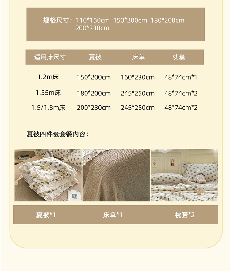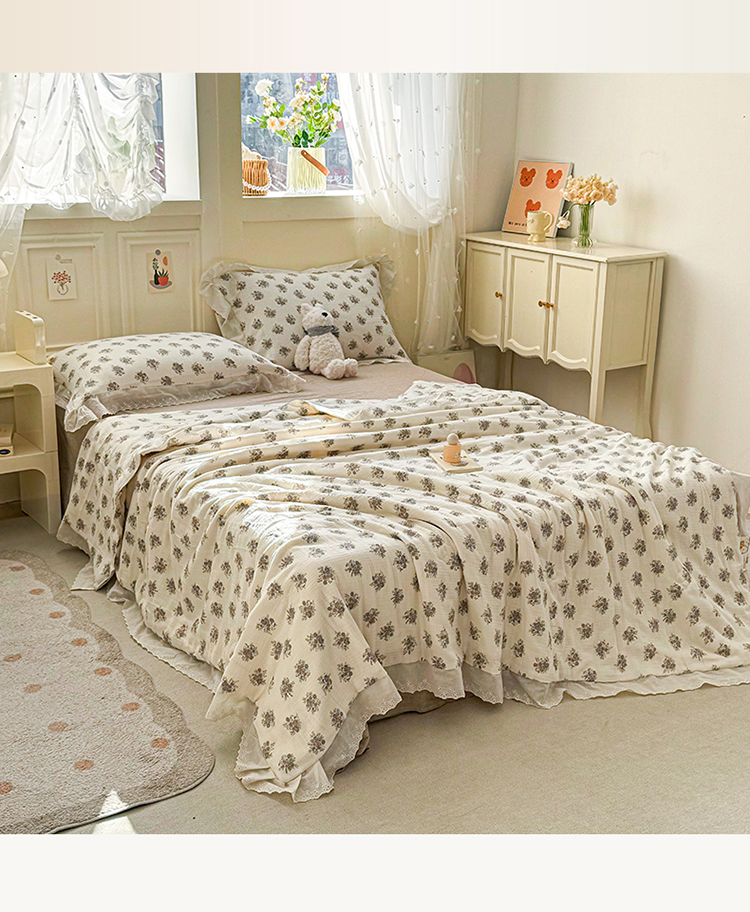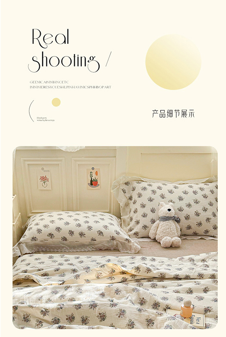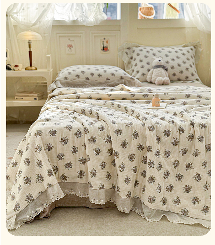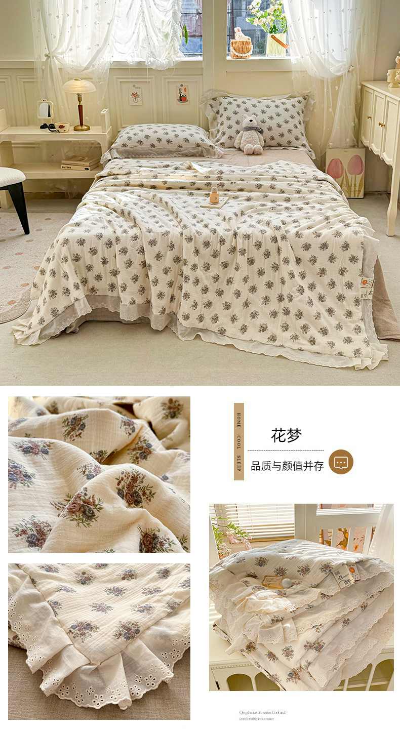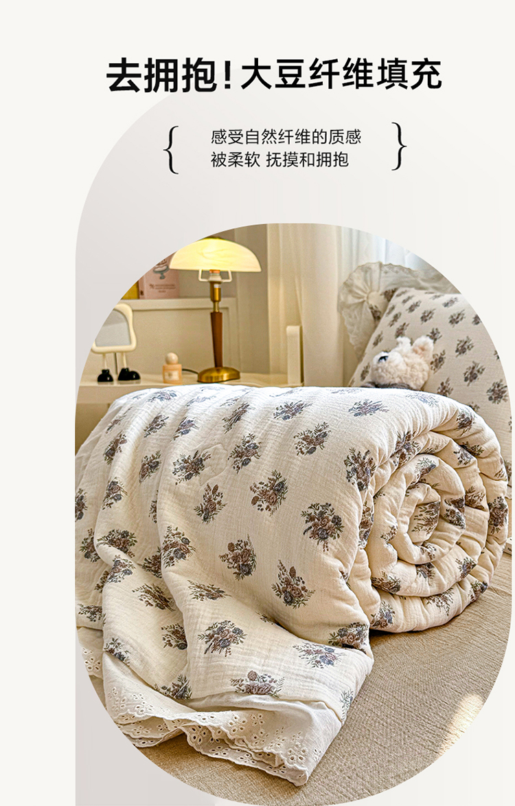 • 91家纺网 家纺一手货源 找家纺 2025新款全棉双层皱皱沙印花花边30%大豆夏凉被纯棉夏被被子被芯 花梦