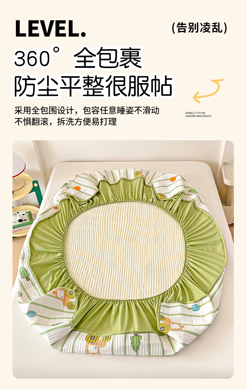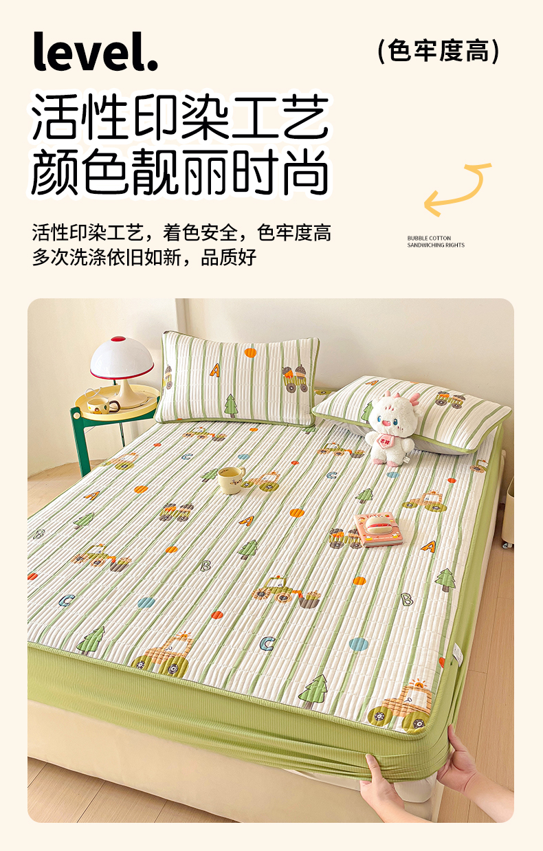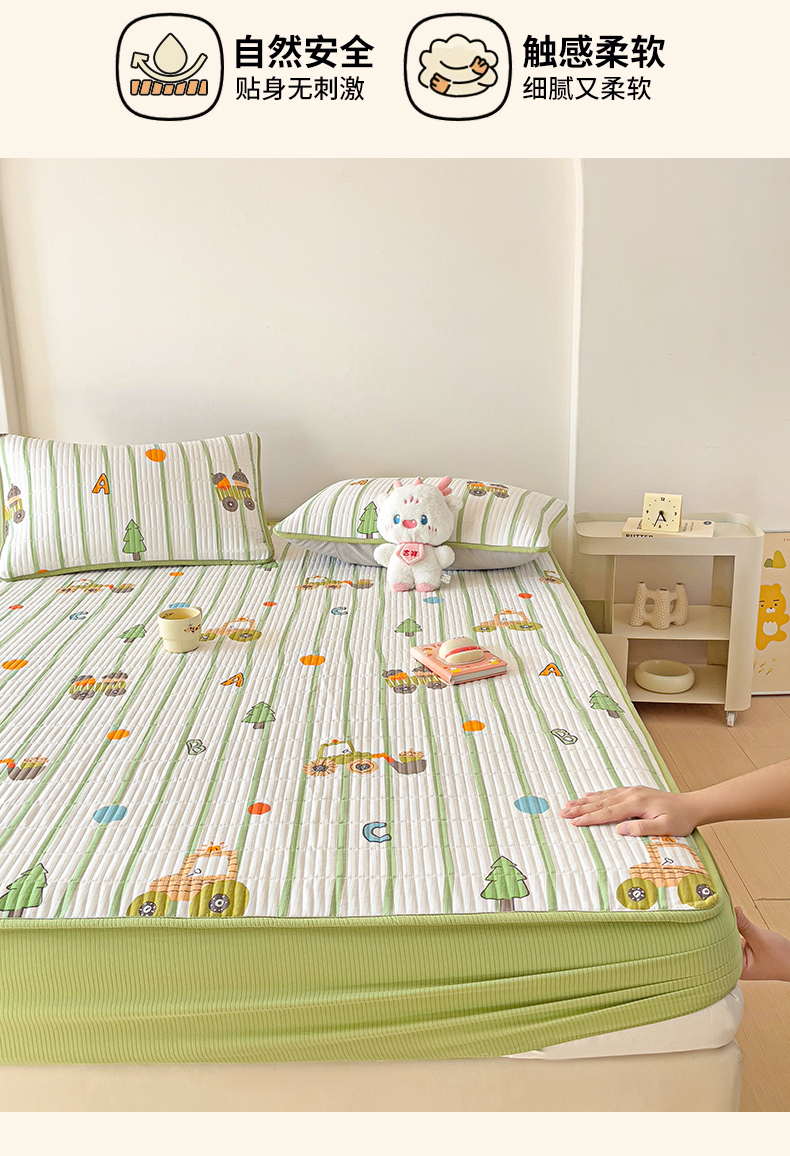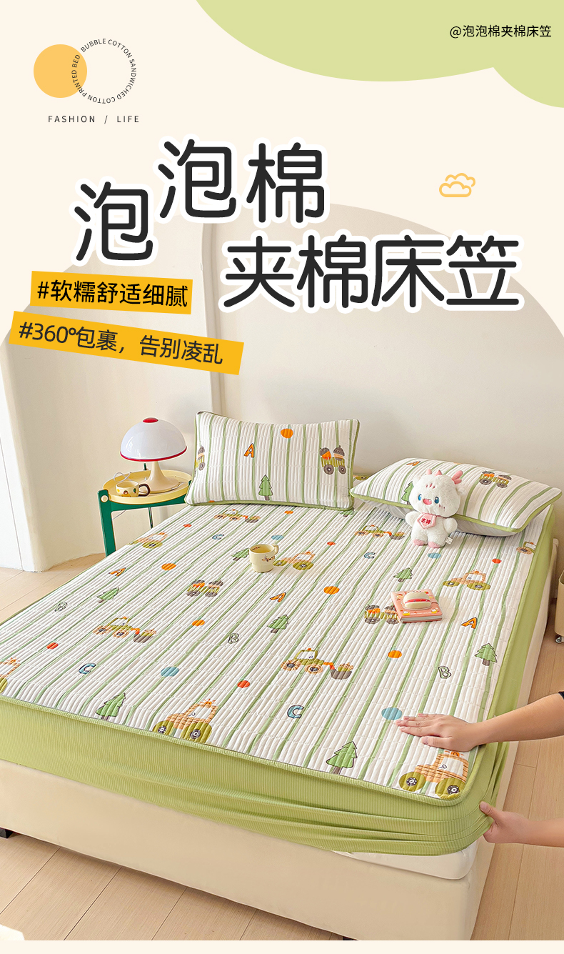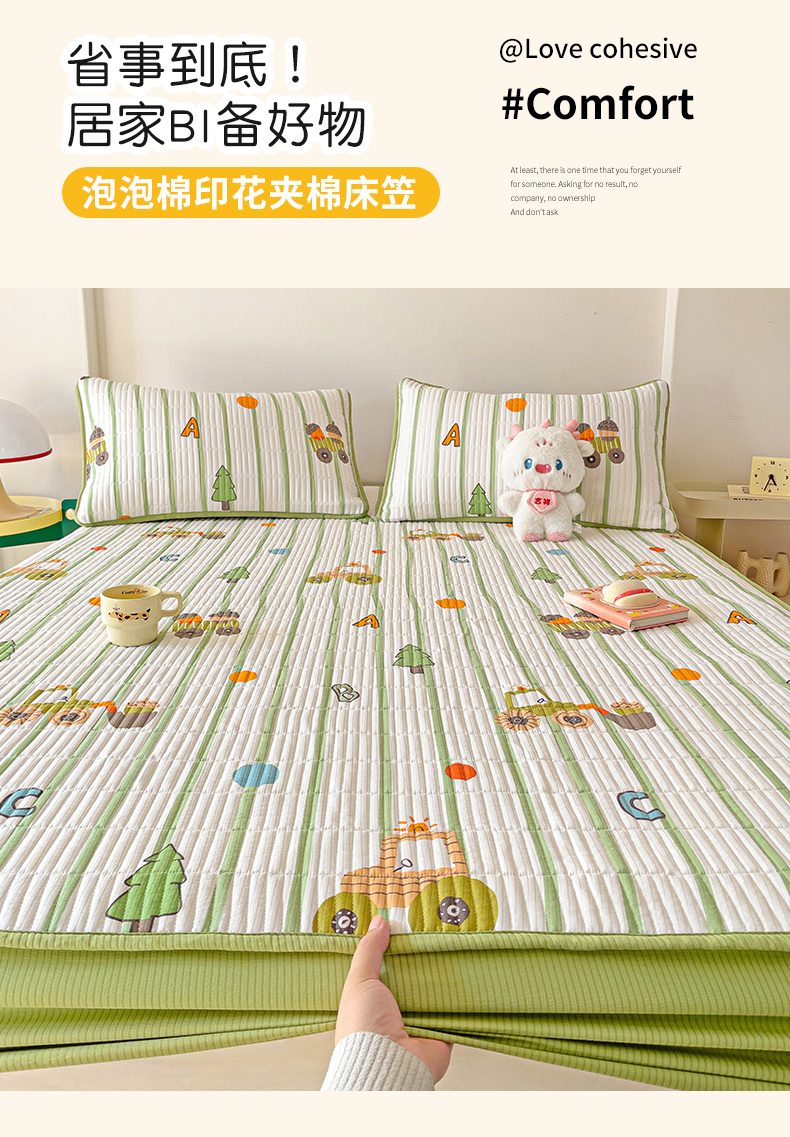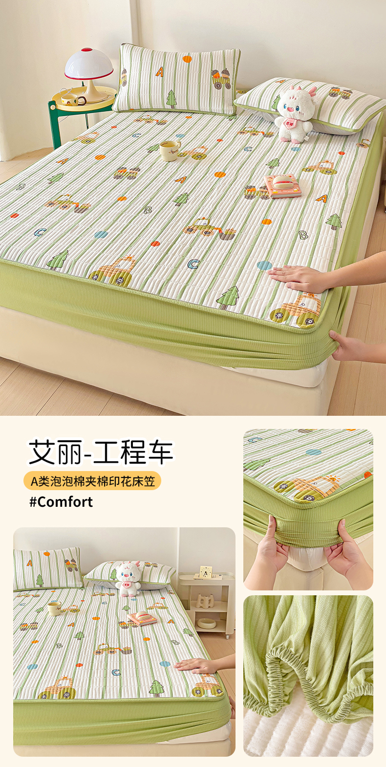 恬澳家纺 2025新款A类泡泡棉夹棉印花床笠 艾丽-工程车