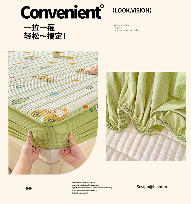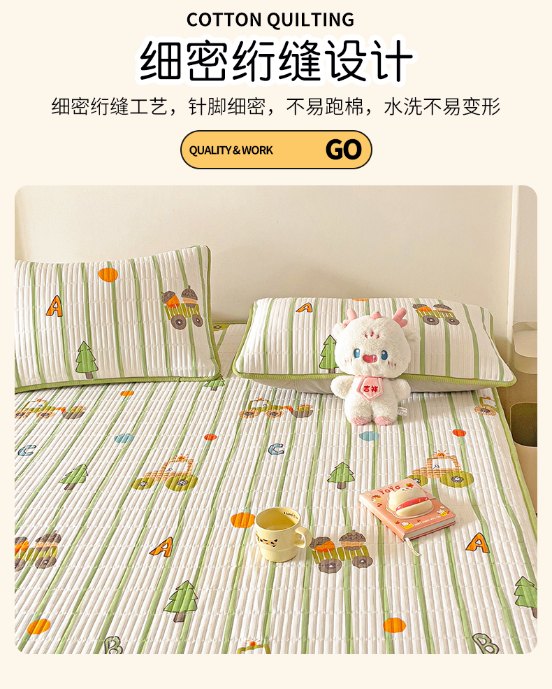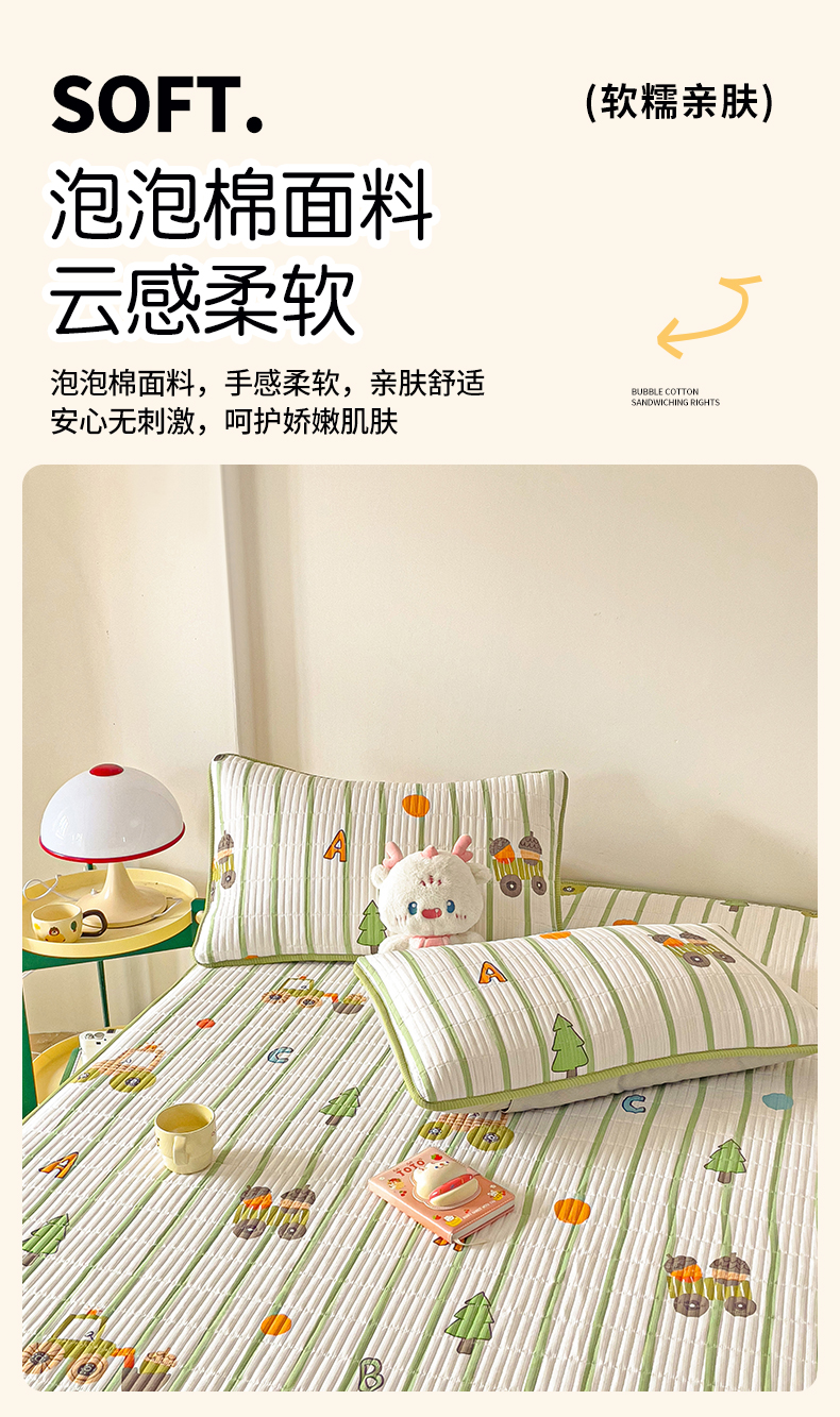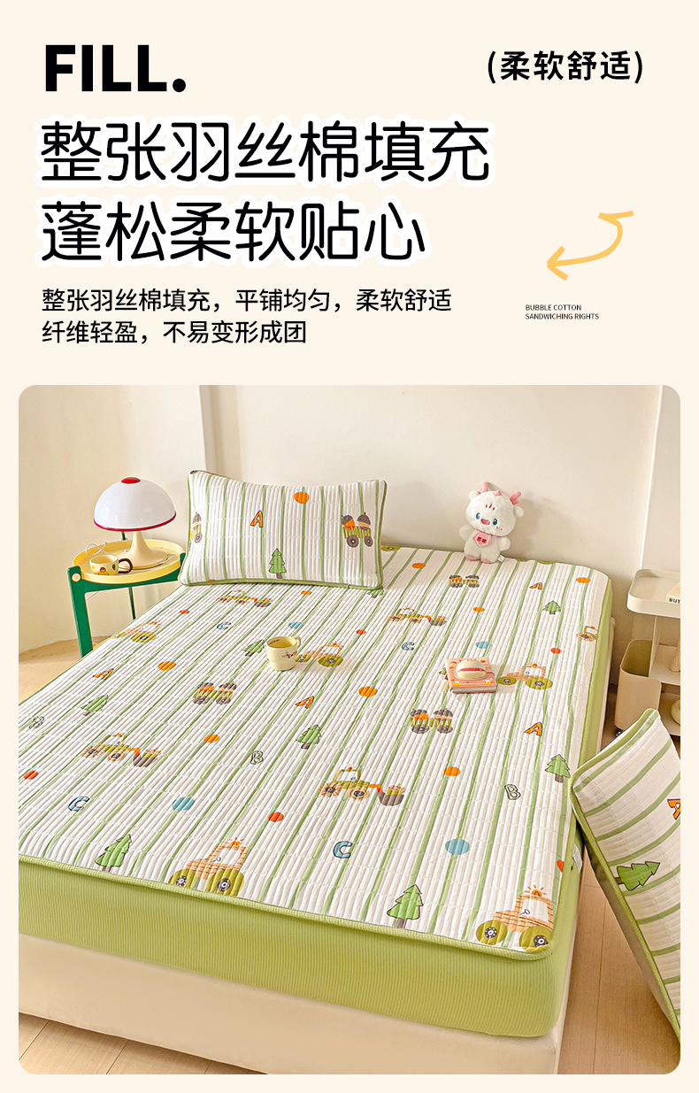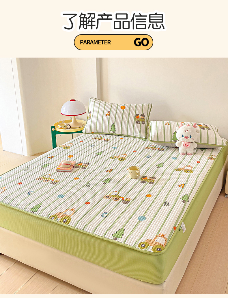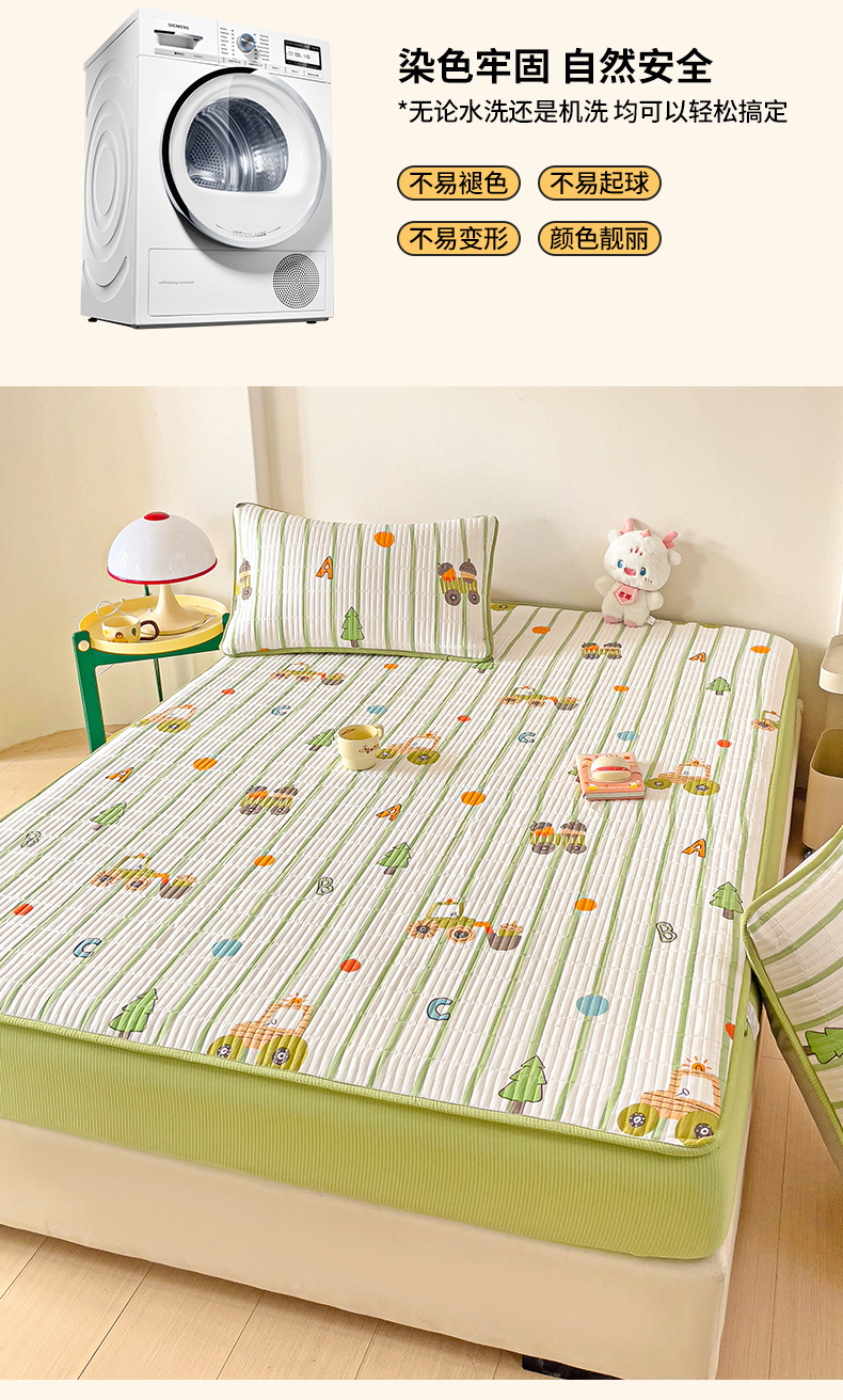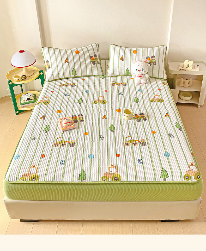恬澳家纺 2025新款A类泡泡棉夹棉印花床笠 艾丽-工程车