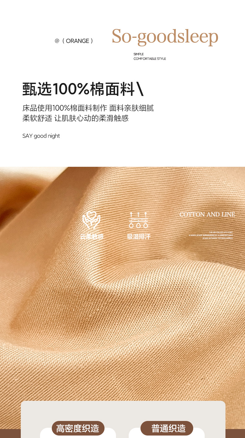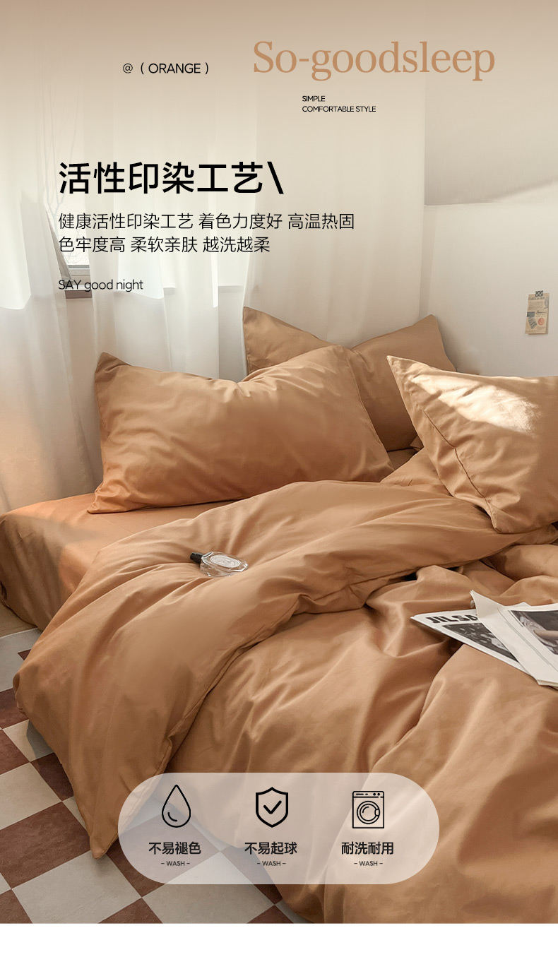 商品名称:2025新款40支长绒棉ins美拉德色系纯色全棉四件套床笠极简三件套纯棉四件套系列--四件套 琥珀色