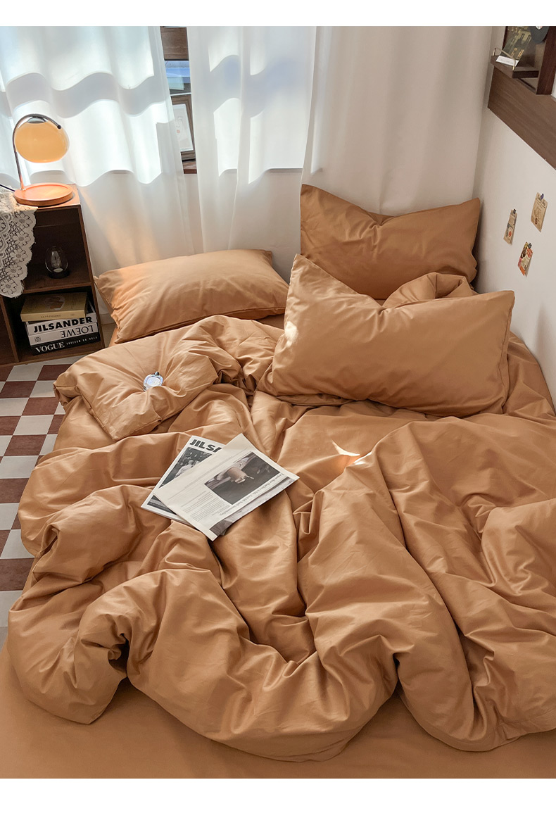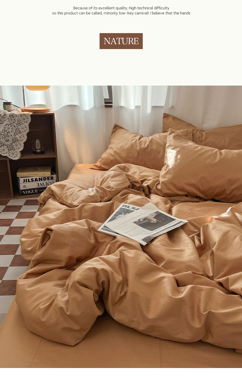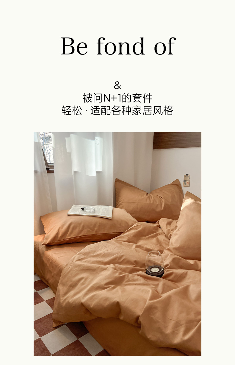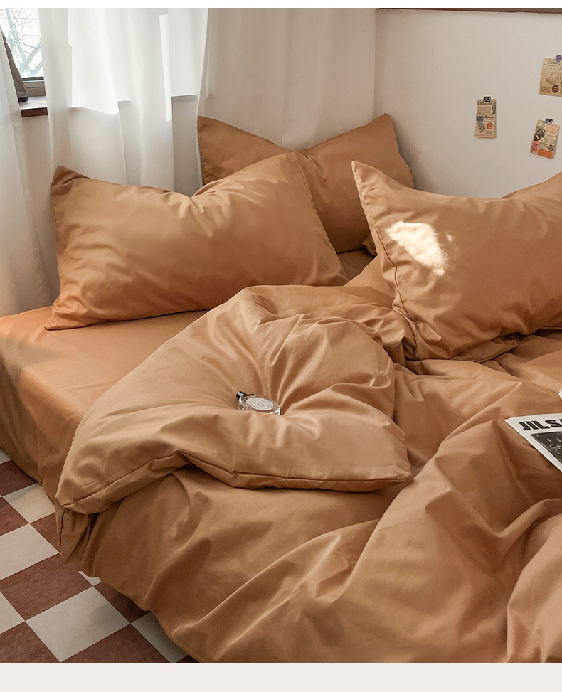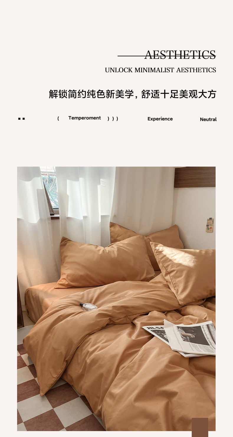 2025新款40支长绒棉ins美拉德色系纯色全棉四件套床笠极简三件套纯棉四件套系列--四件套 琥珀色