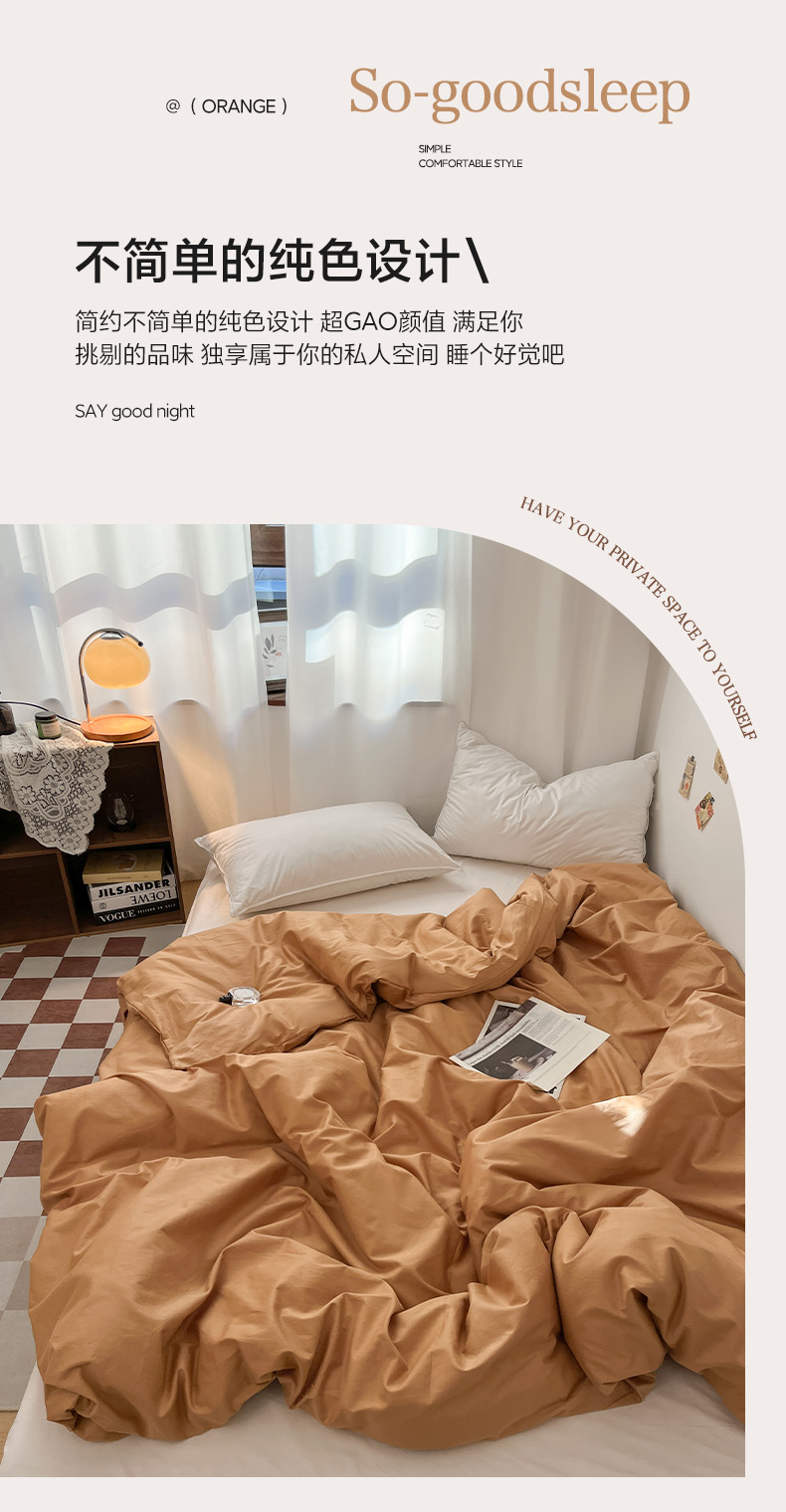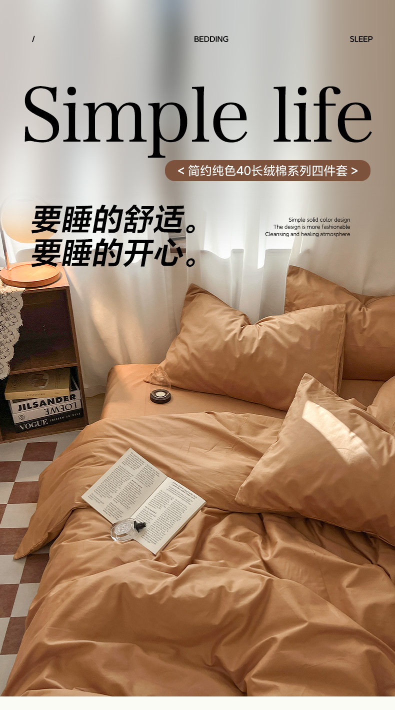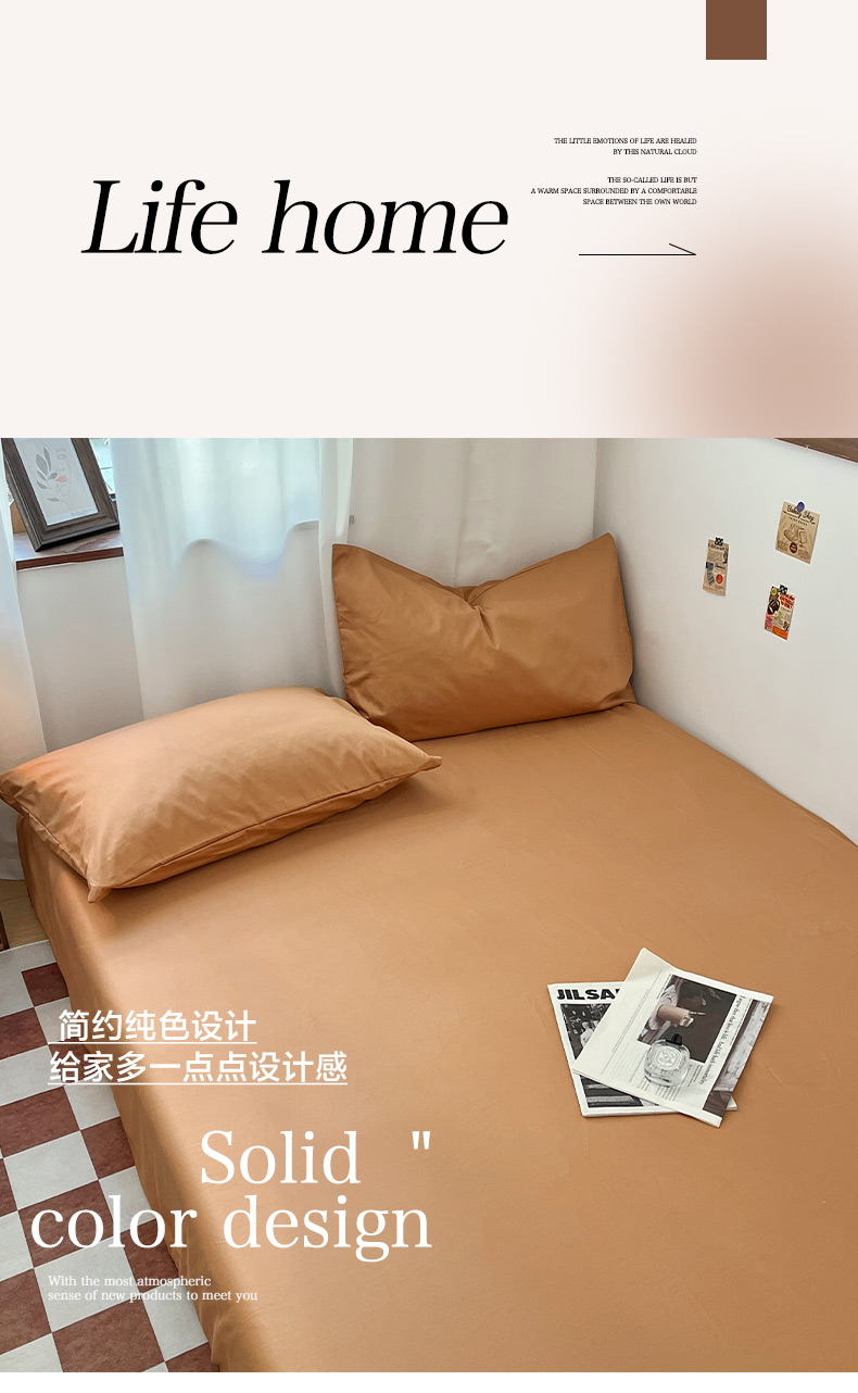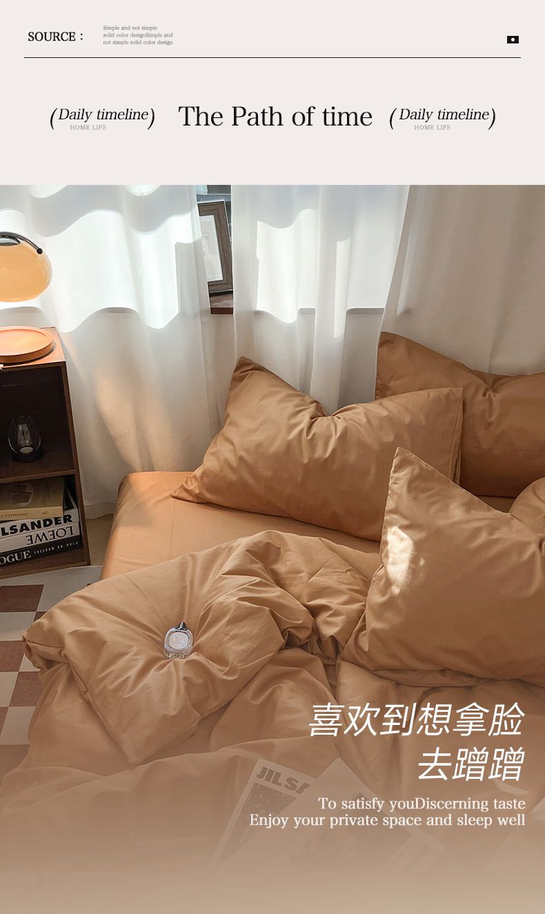 2025新款40支长绒棉ins美拉德色系纯色全棉四件套床笠极简三件套纯棉四件套系列--四件套 琥珀色
