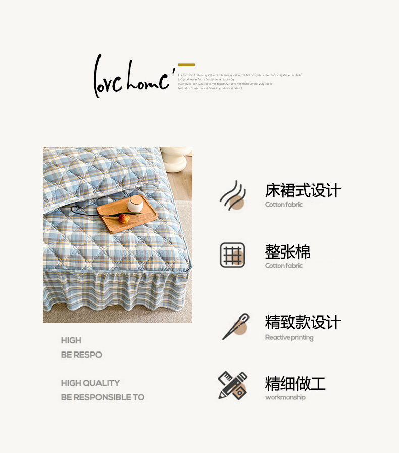 糯米猪家纺 2025新款全棉色织水洗棉床裙 简兮 兰