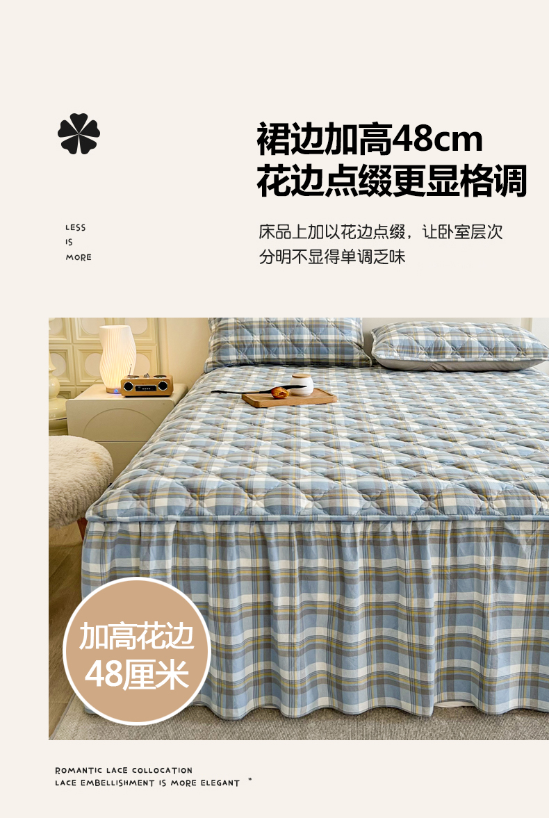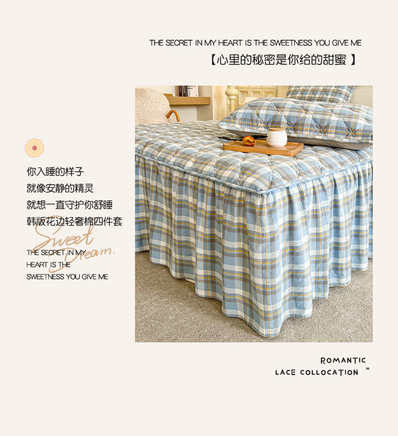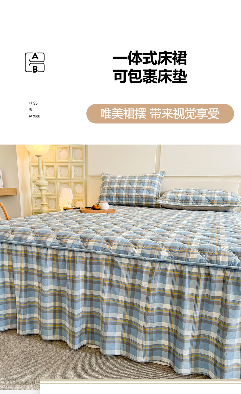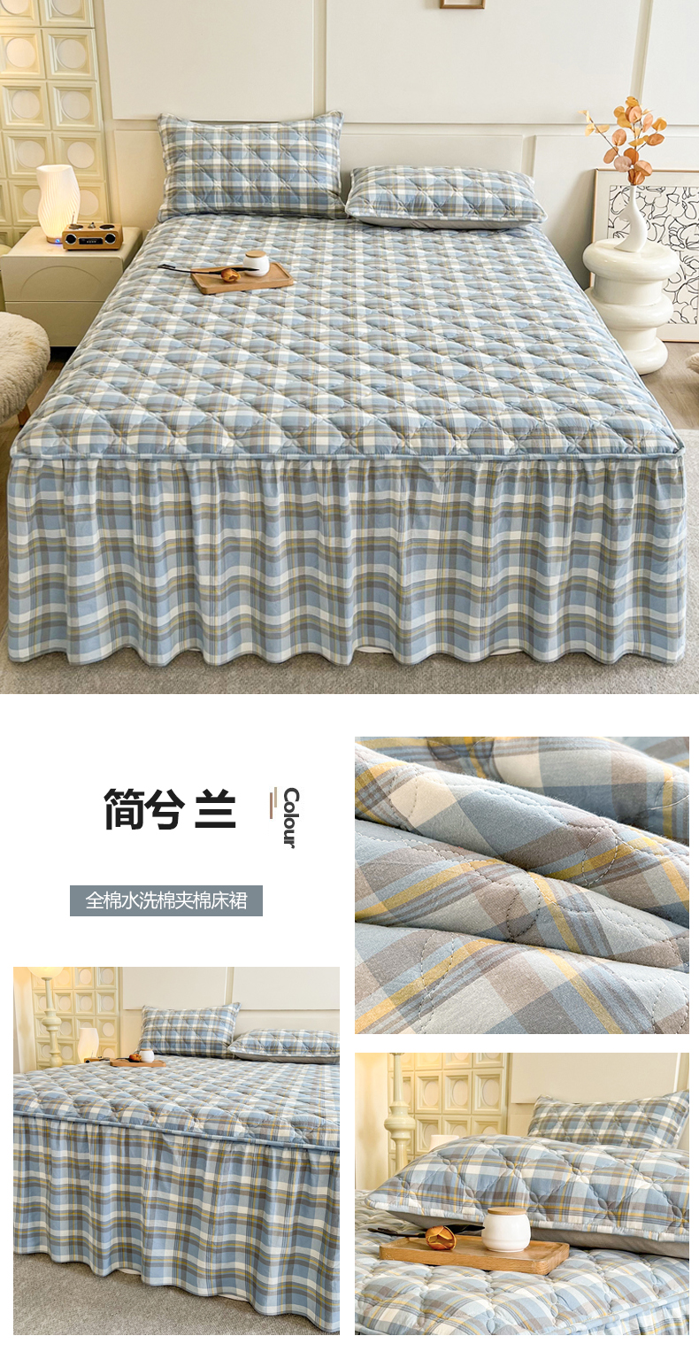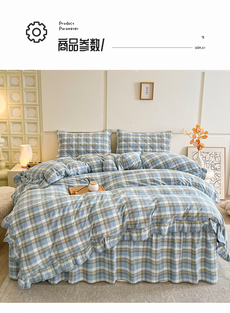 (总)糯米猪家纺 2025新款全棉色织水洗棉床裙,格纹 灰,简兮 兰,兰黄大格,晴空 灰,时尚 灰,雅致 兰