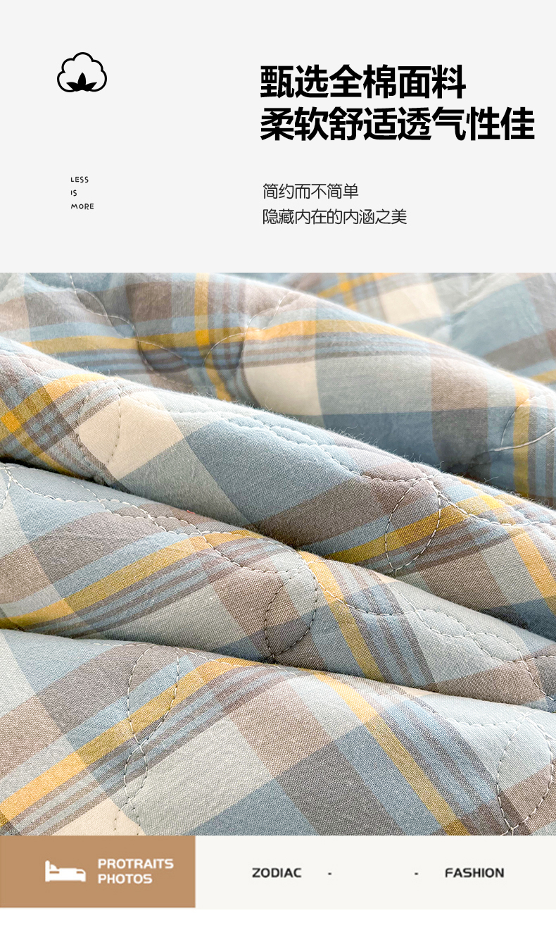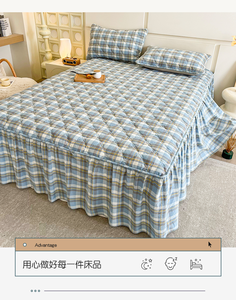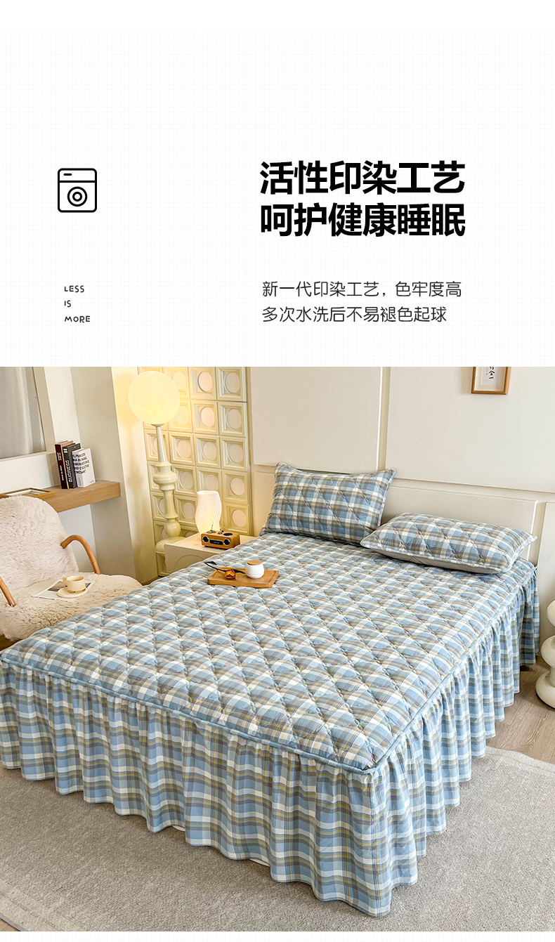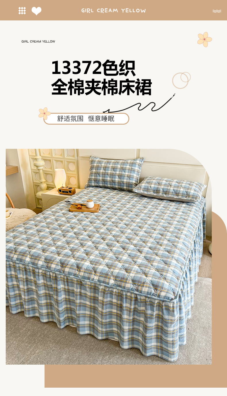 (总)糯米猪家纺 2025新款全棉色织水洗棉床裙,格纹 灰,简兮 兰,兰黄大格,晴空 灰,时尚 灰,雅致 兰