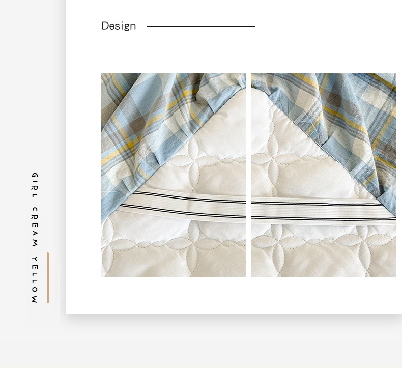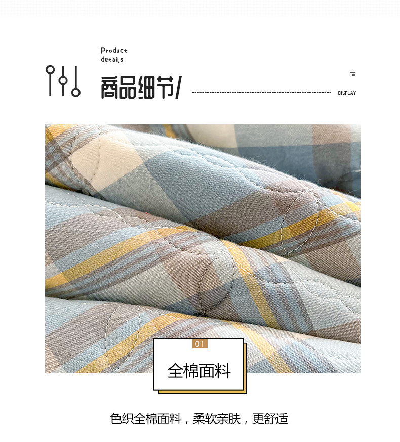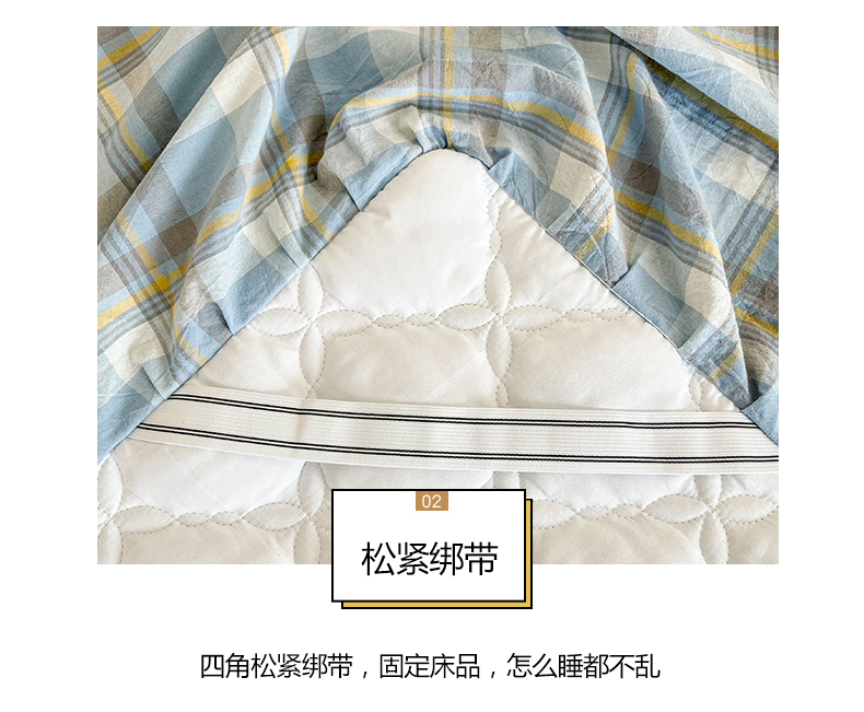 (总)糯米猪家纺 2023新款亲肤棉六面全包夹棉床笠--时尚格,水蓝,深蓝,灰色,白色,米色,粉玉