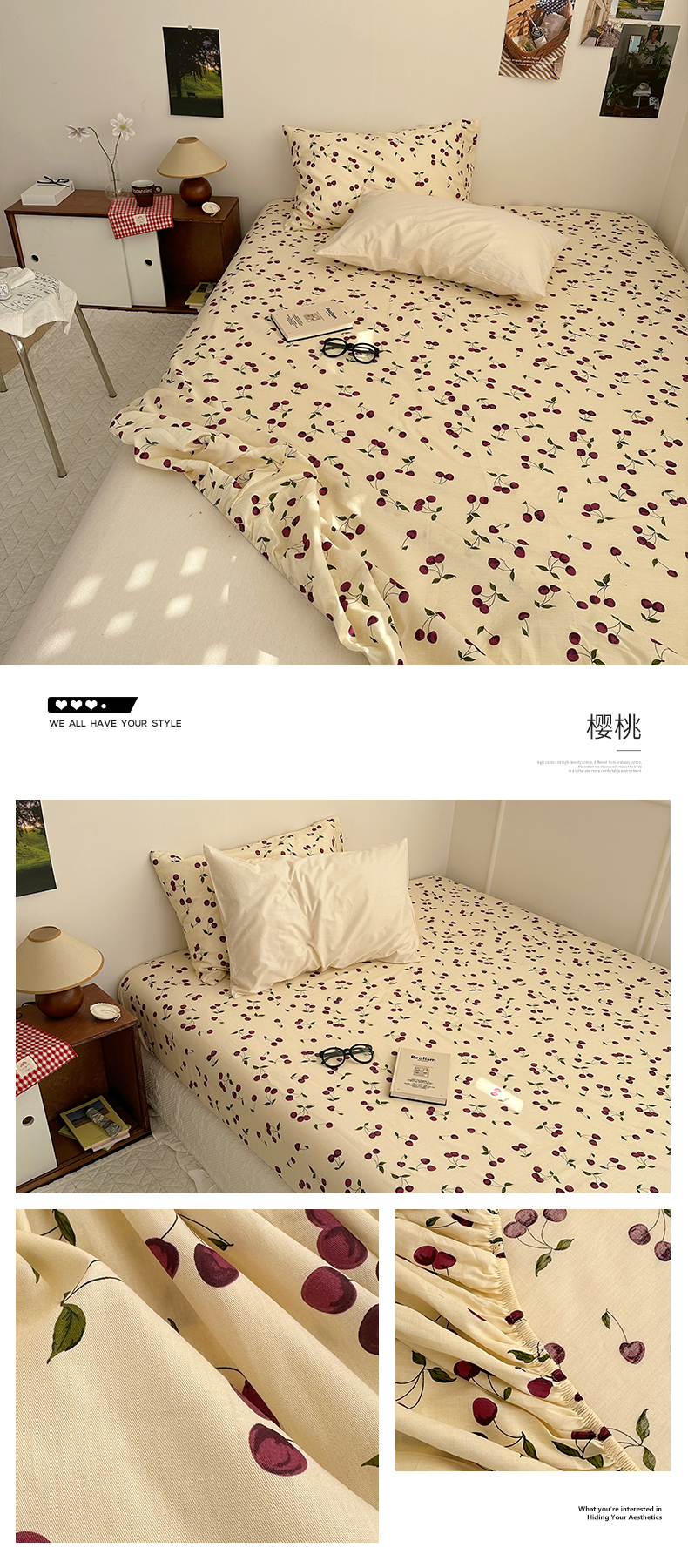 商品名称:尺素 2025新款ins风小红书系列单床笠 樱桃