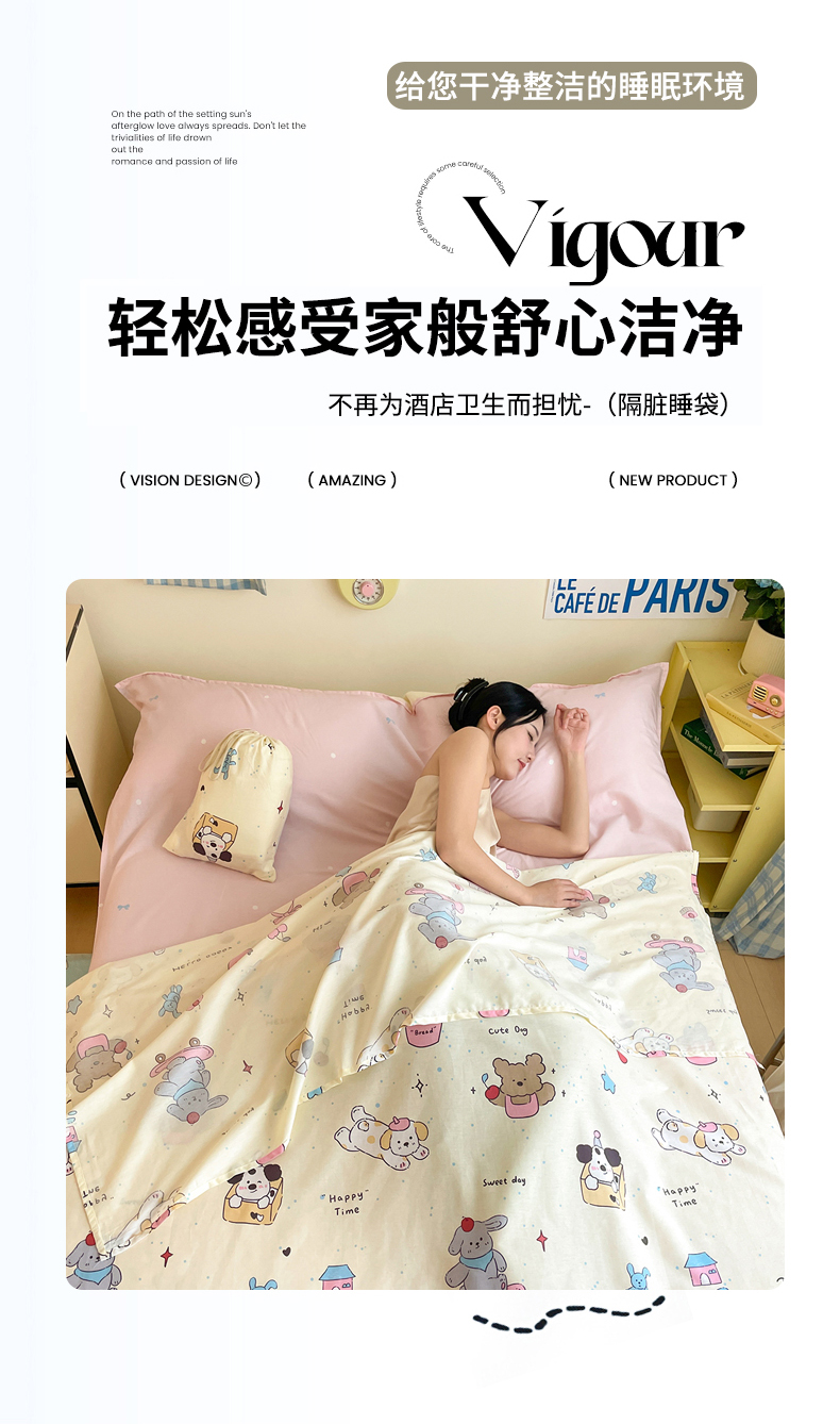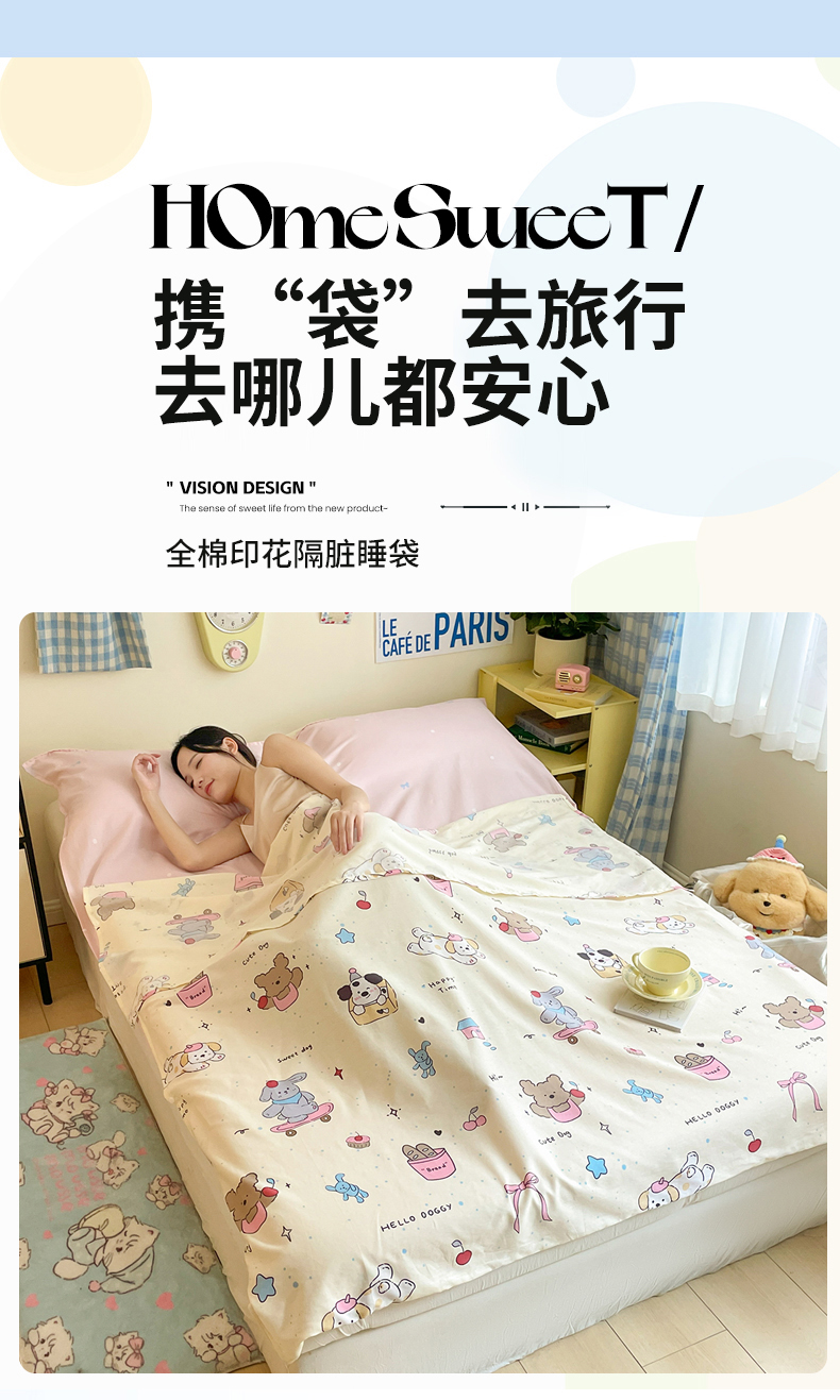 Sweet dreams甜梦 2025新款全棉小清新卡通一体式旅行酒店睡袋 动物派对
