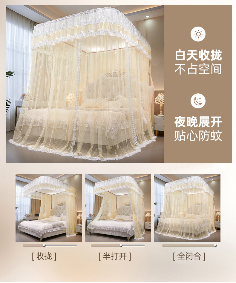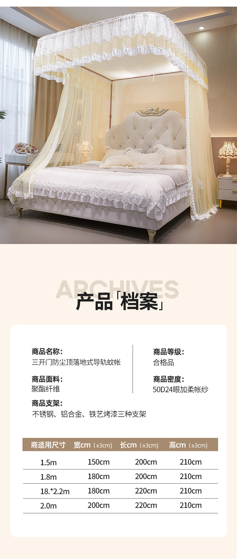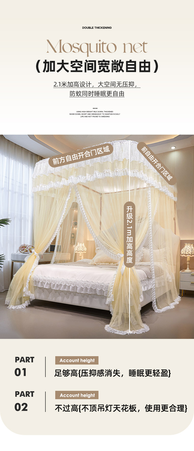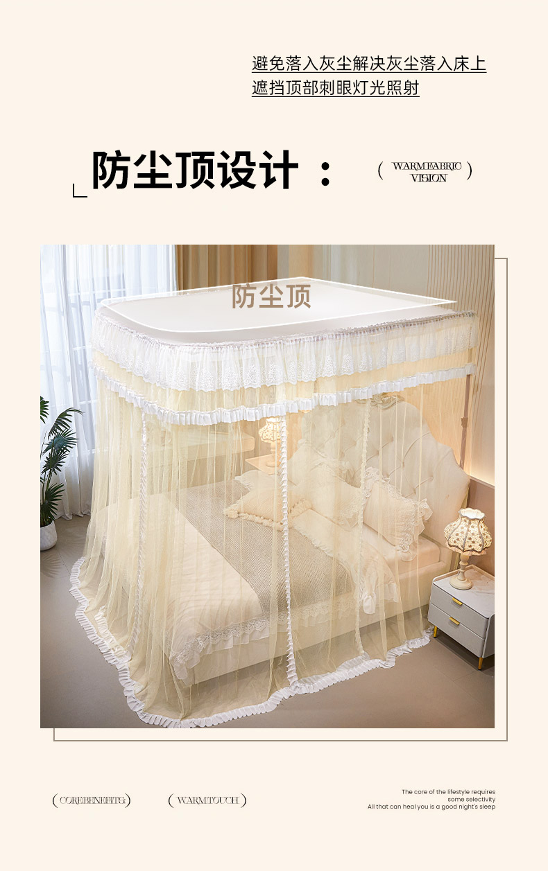 (总)海虹蚊帐 2025新款2503款一体防尘顶落地宫廷蚊帐,白色,米黄,浅蓝,玉色