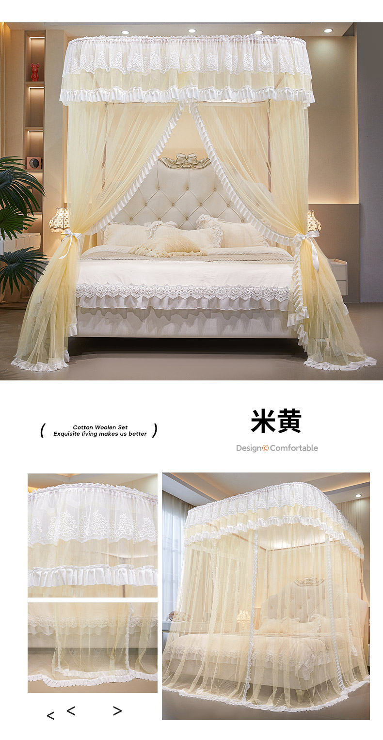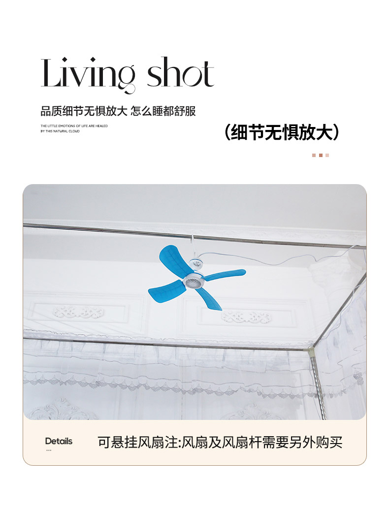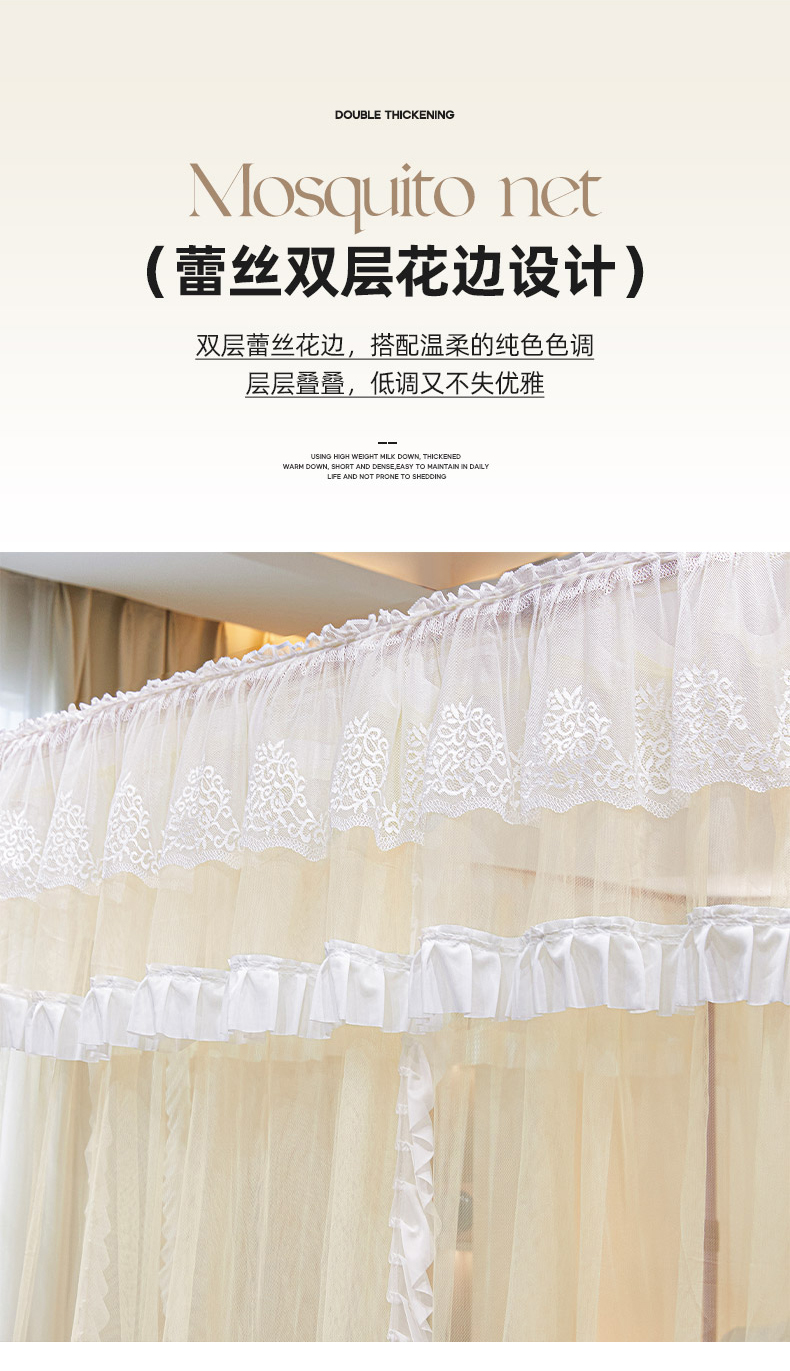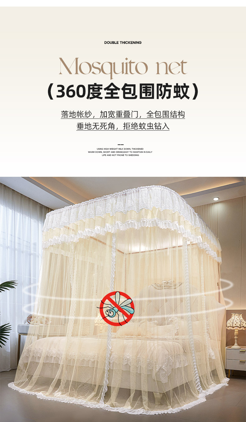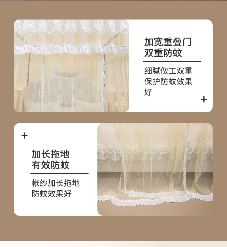 (总)海虹蚊帐 2025新款2503款一体防尘顶落地宫廷蚊帐,白色,米黄,浅蓝,玉色