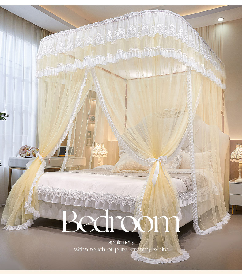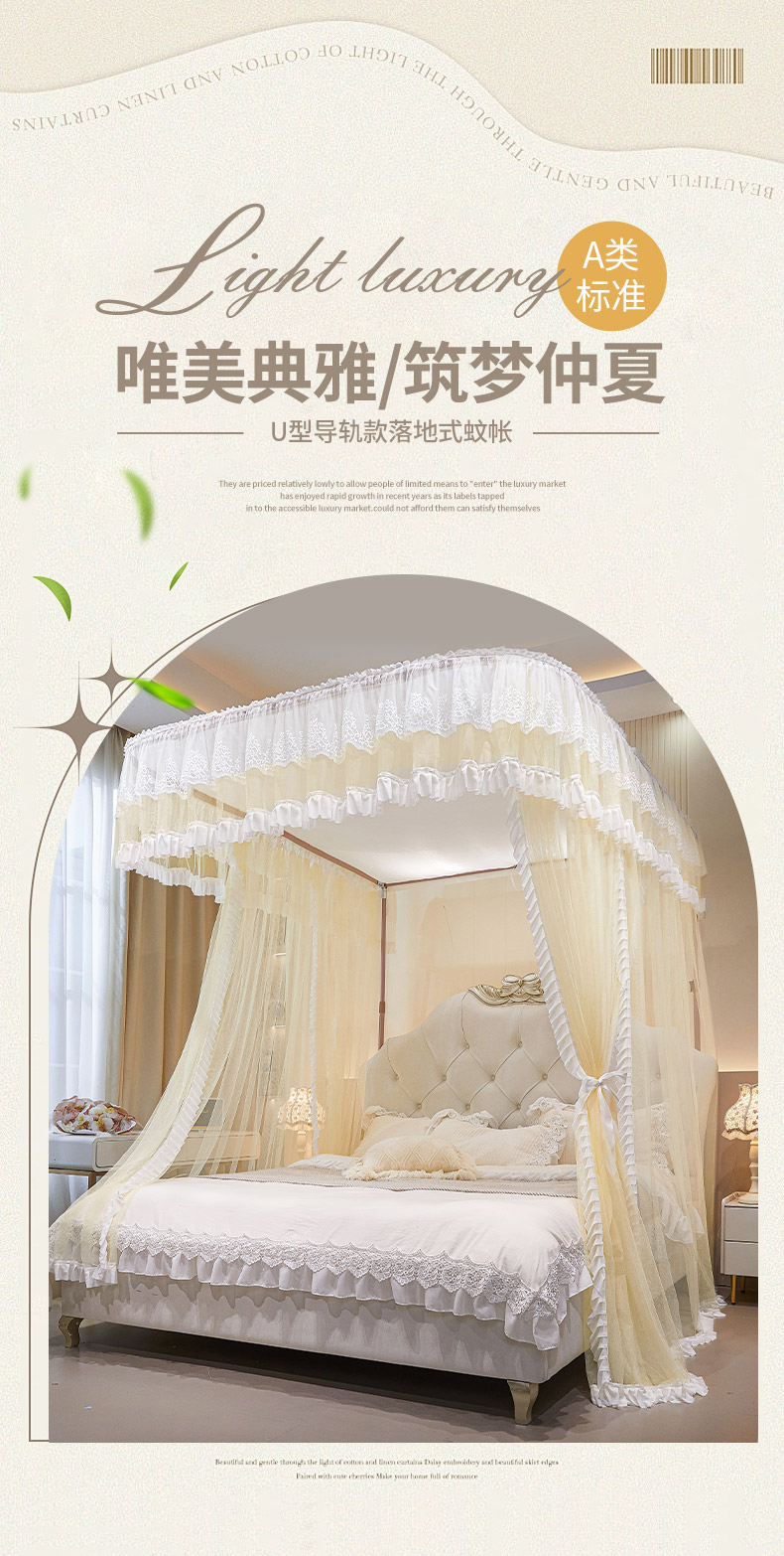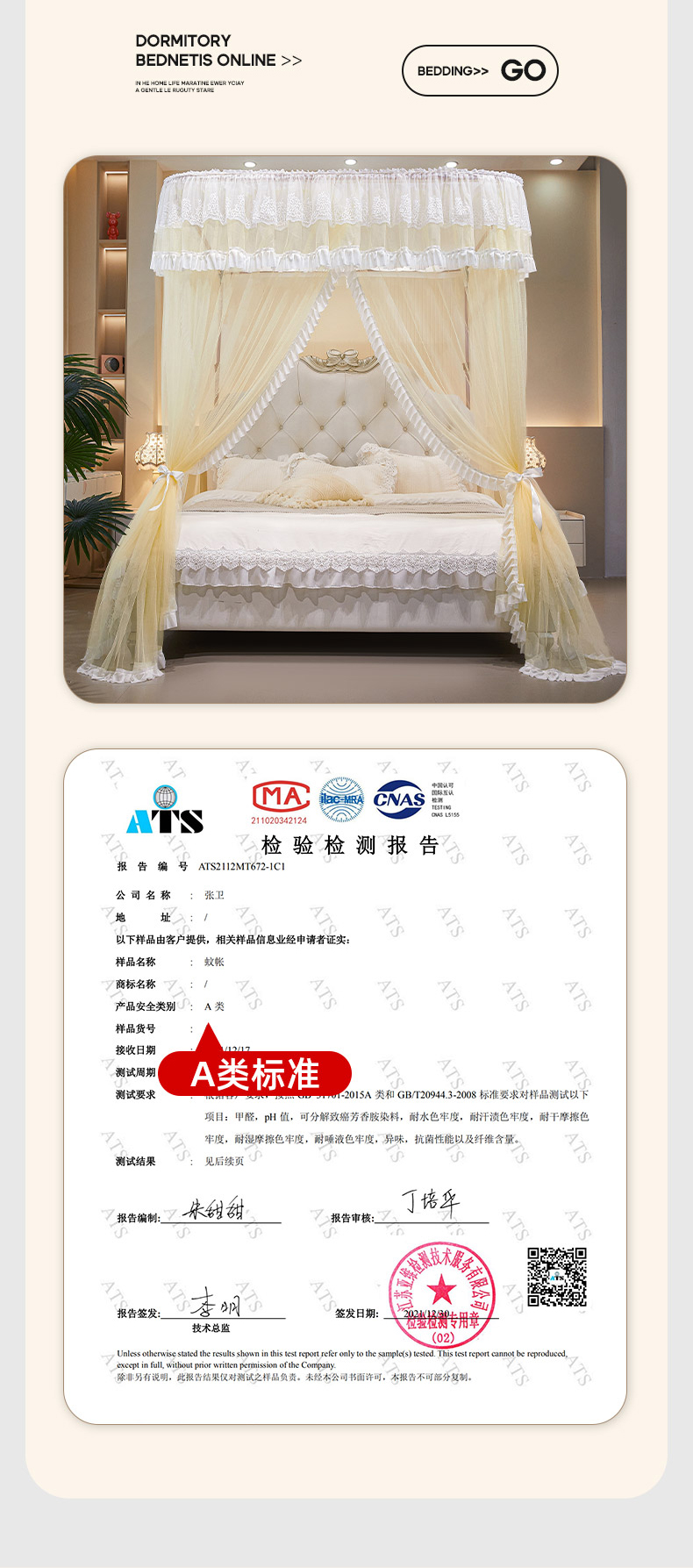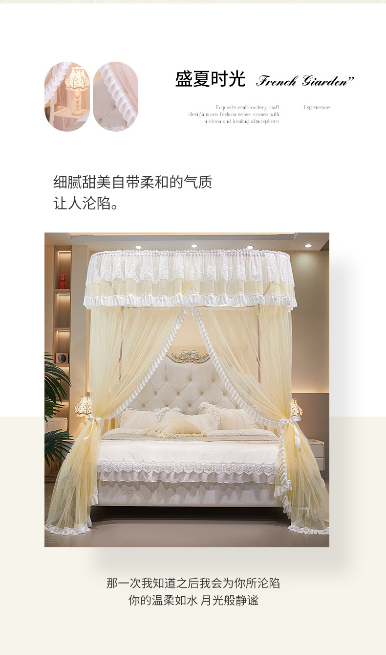 (总)海虹蚊帐 2025新款2503款一体防尘顶落地宫廷蚊帐,白色,米黄,浅蓝,玉色